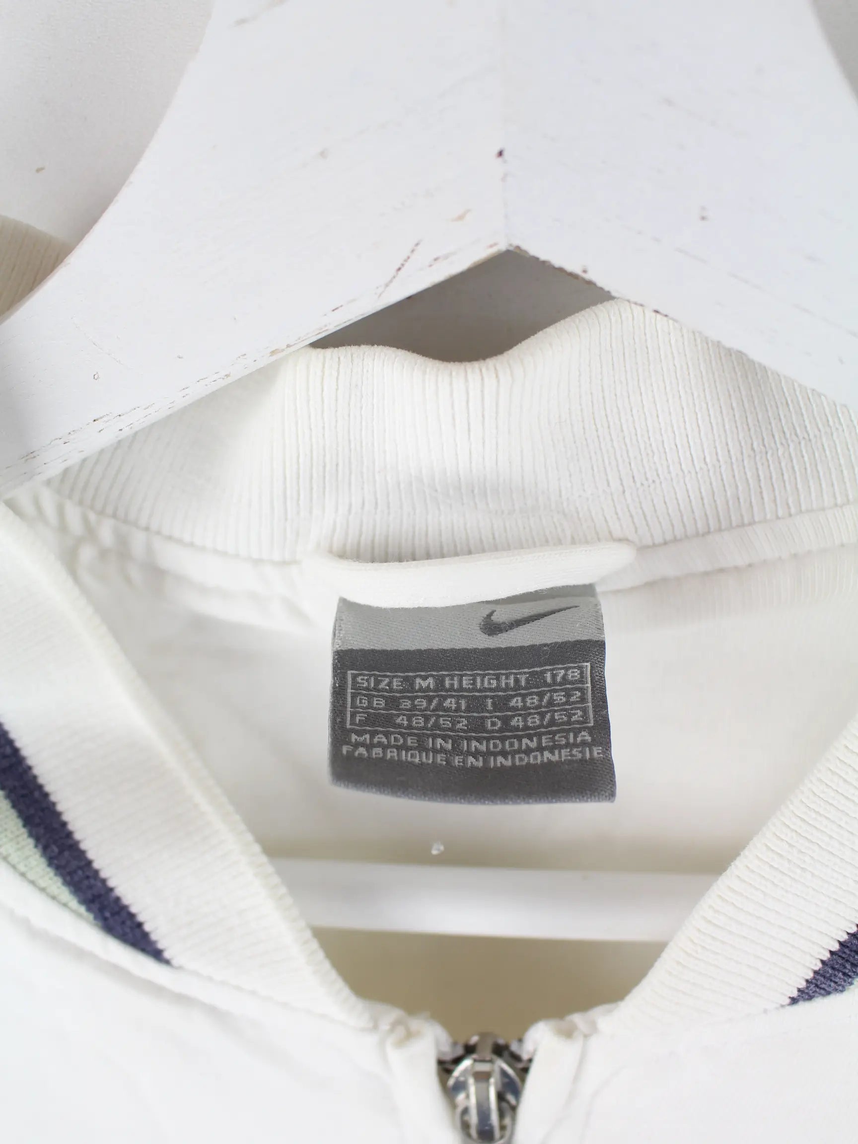 Weiße Trainingsjacke vom Brand Nike in Größe M. Sie ist aus einer Baumwollmischung angefertigt und in sehr gutem Zustand bei uns zu bekommen.