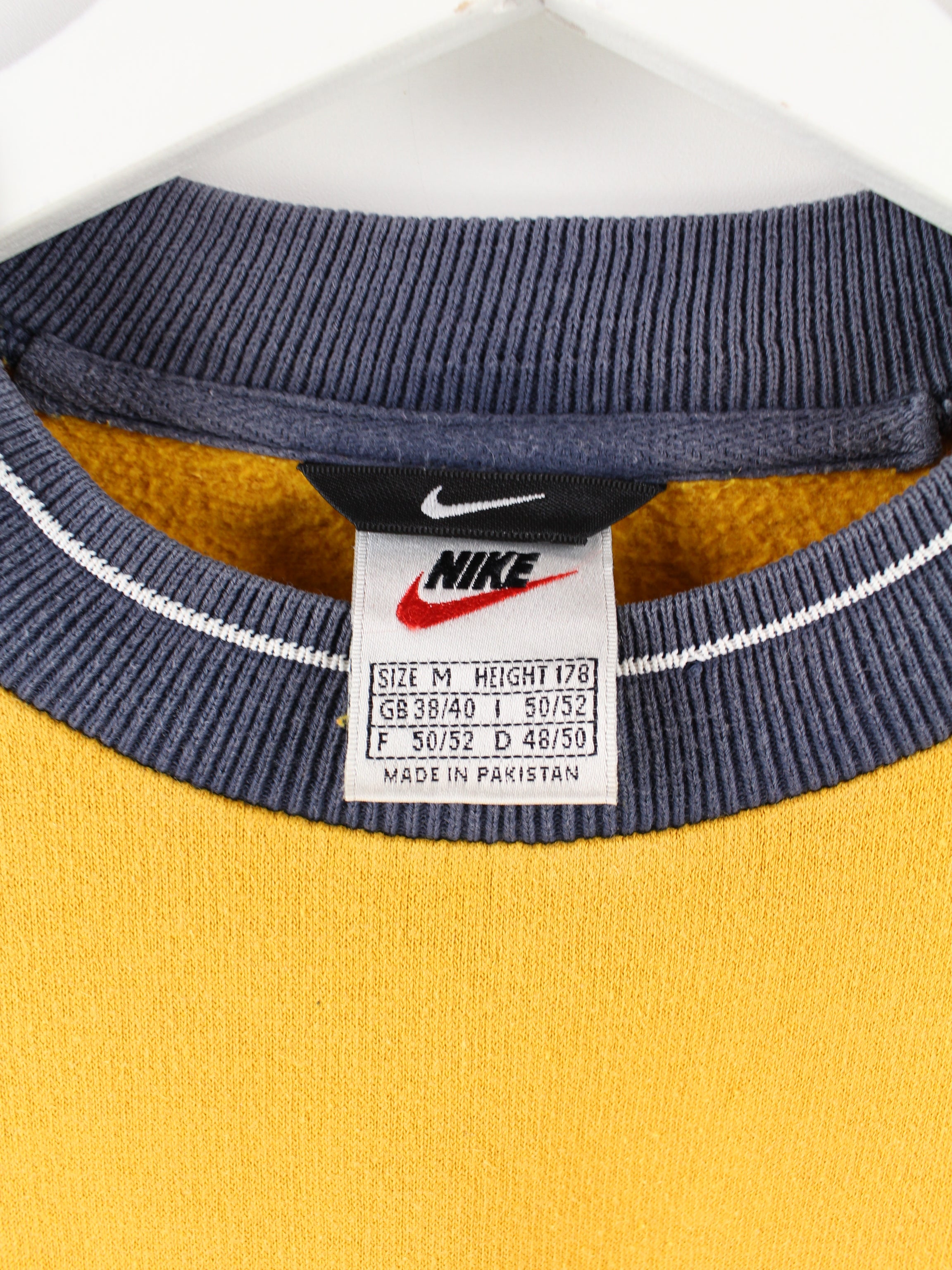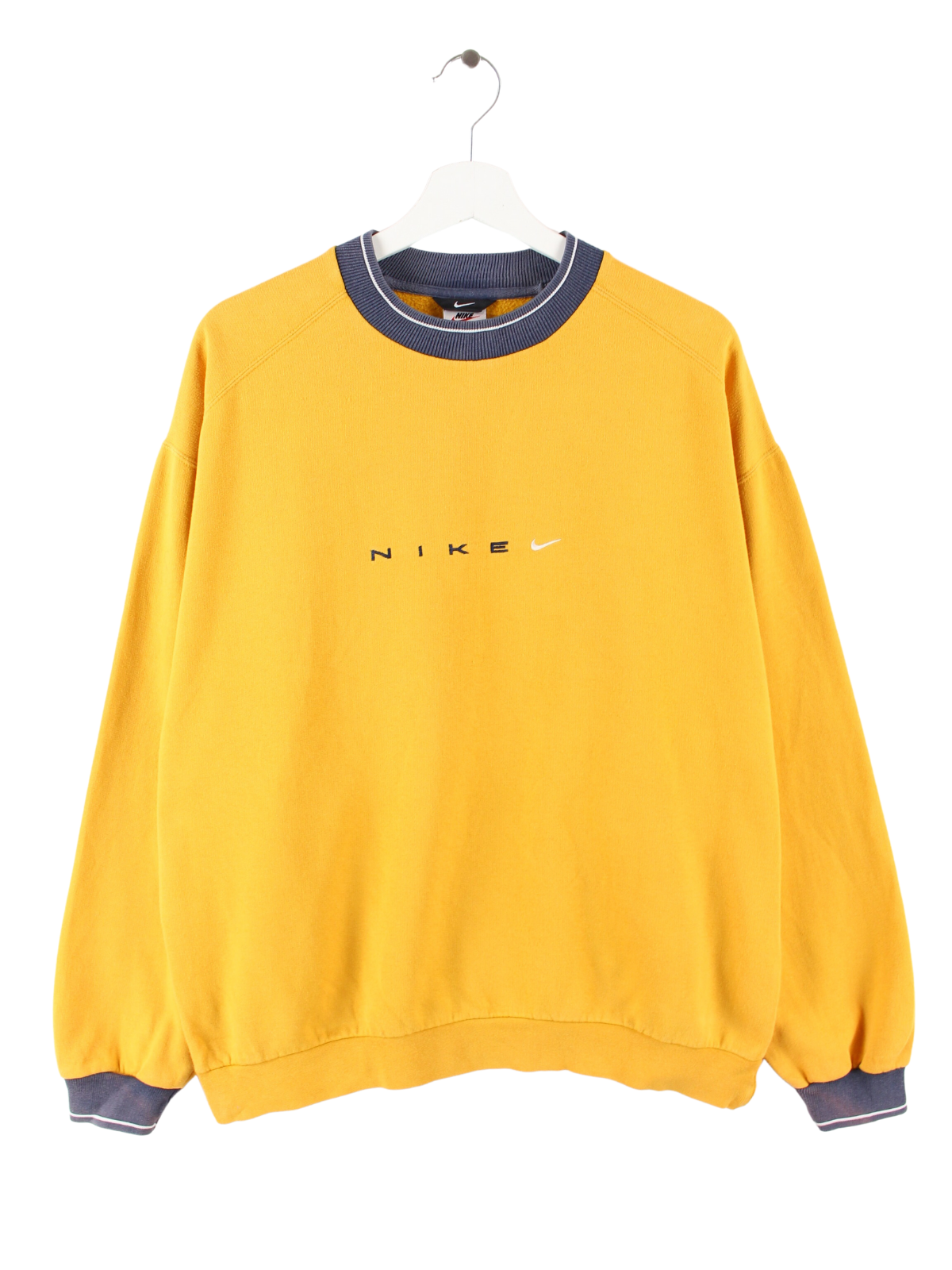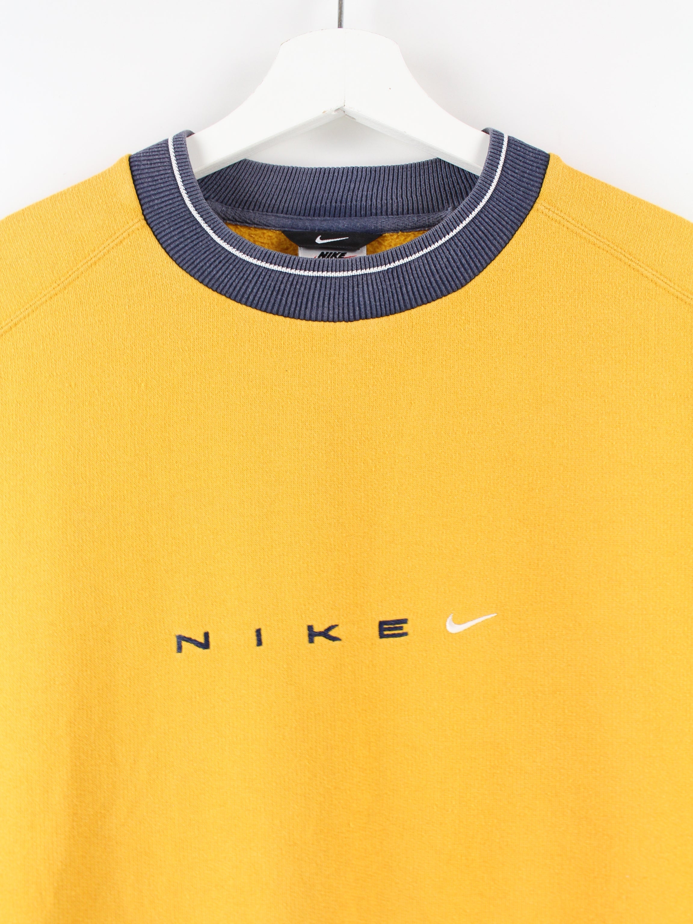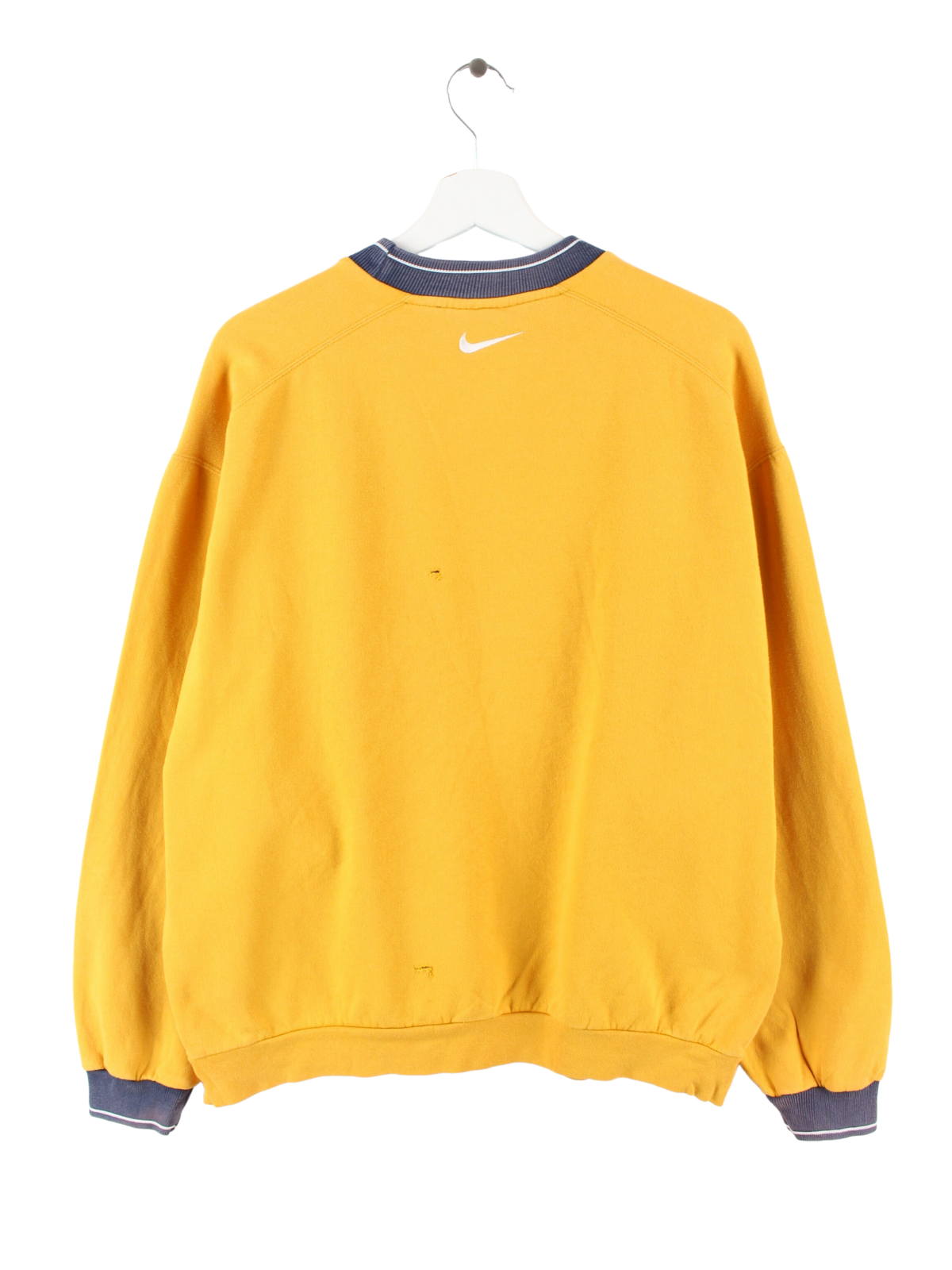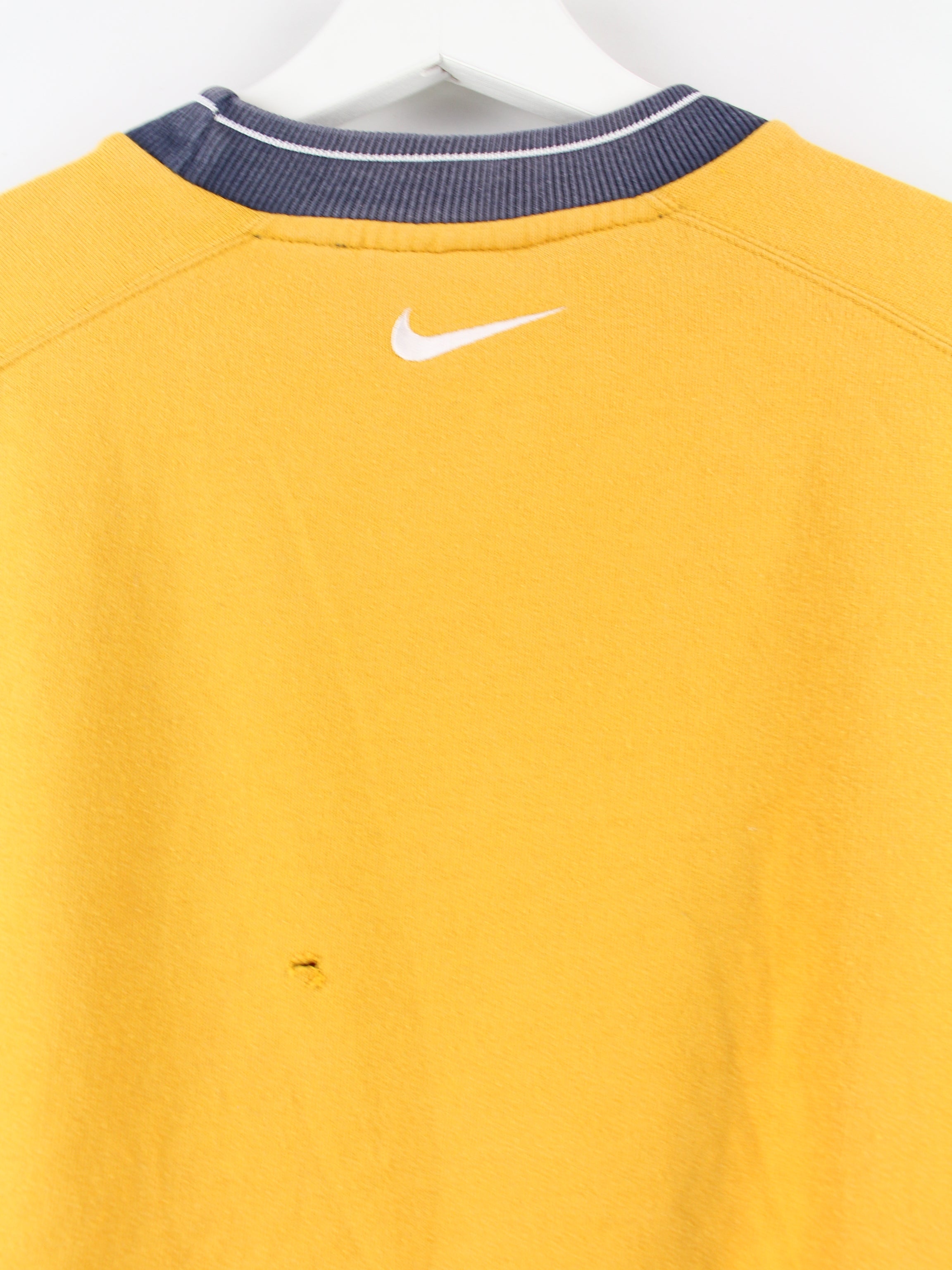 Pull Nike vintage jaune des années 90 avec logo brodé.