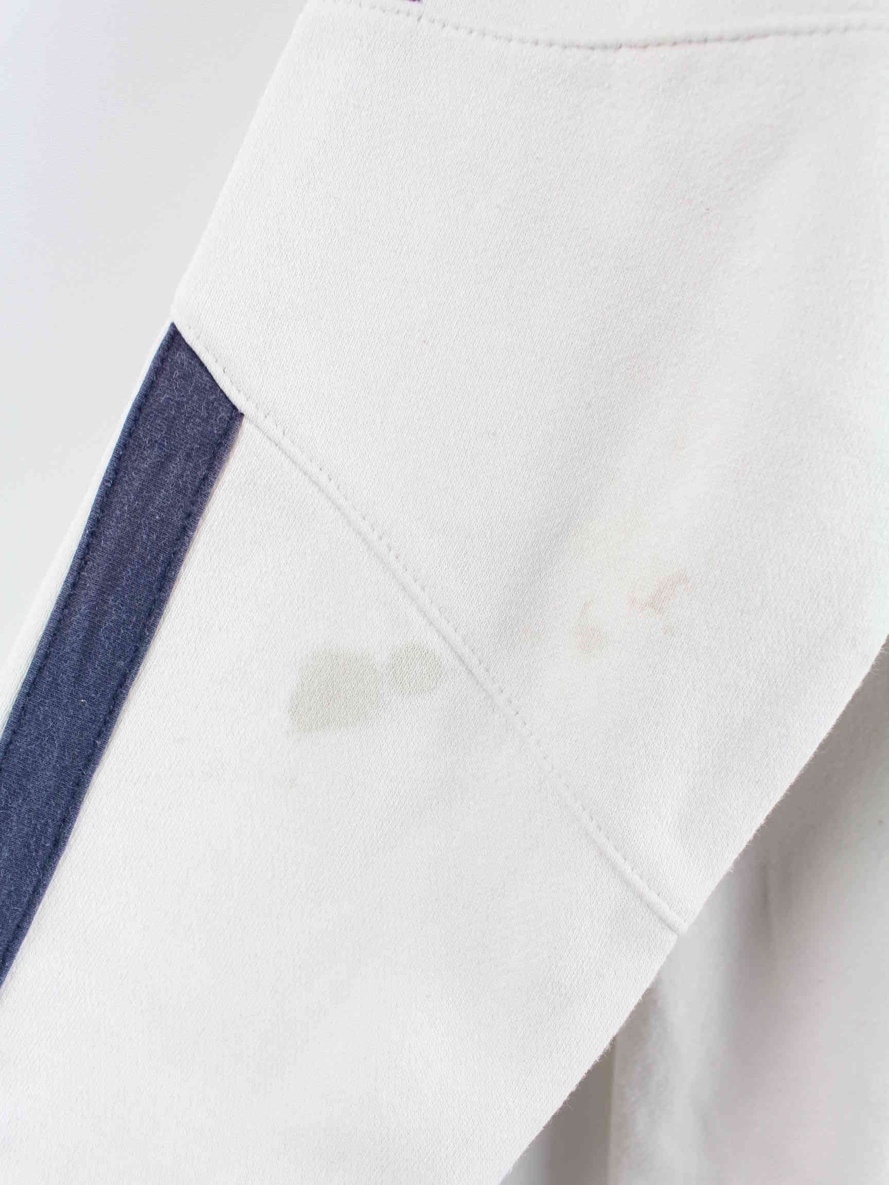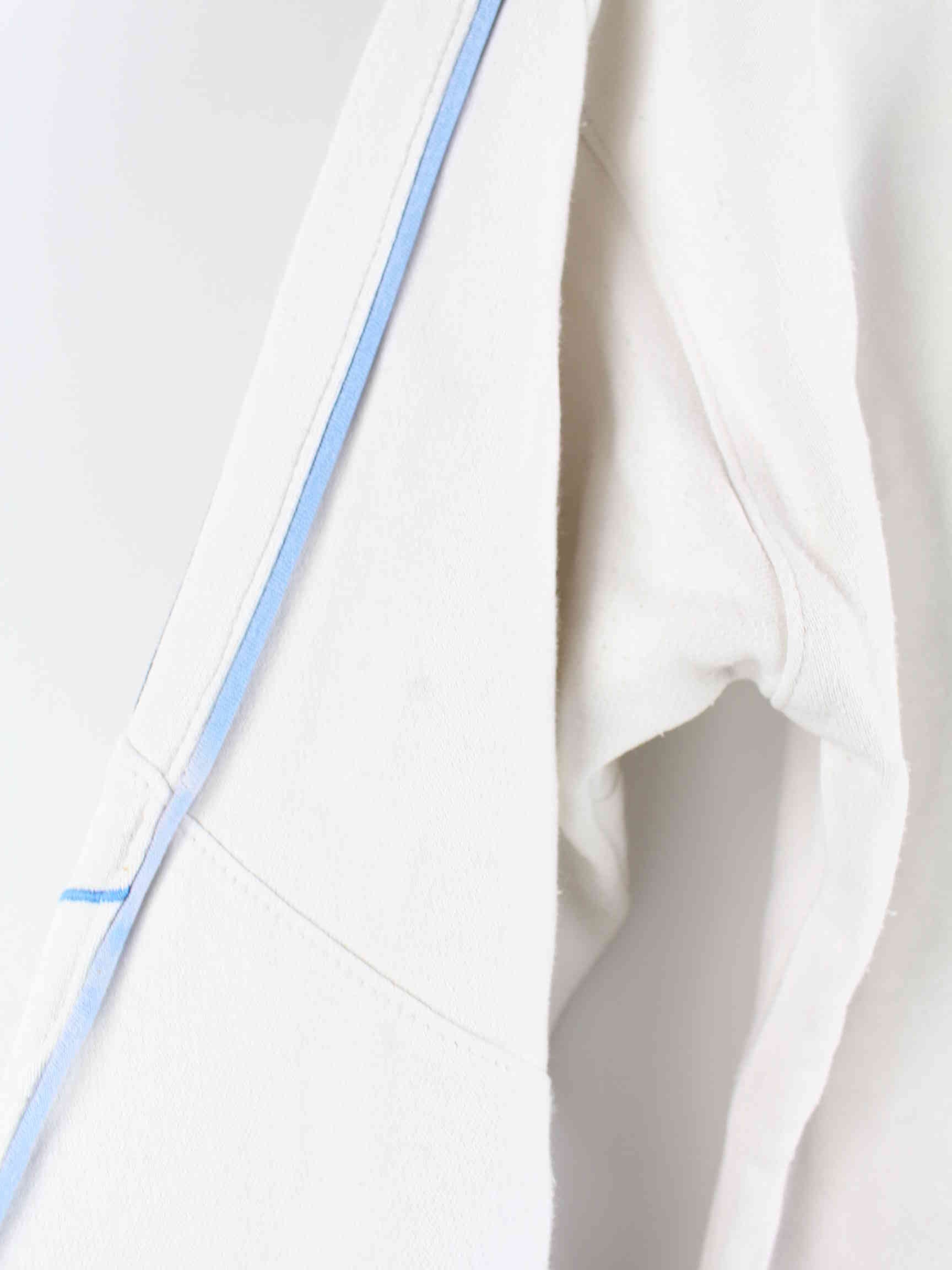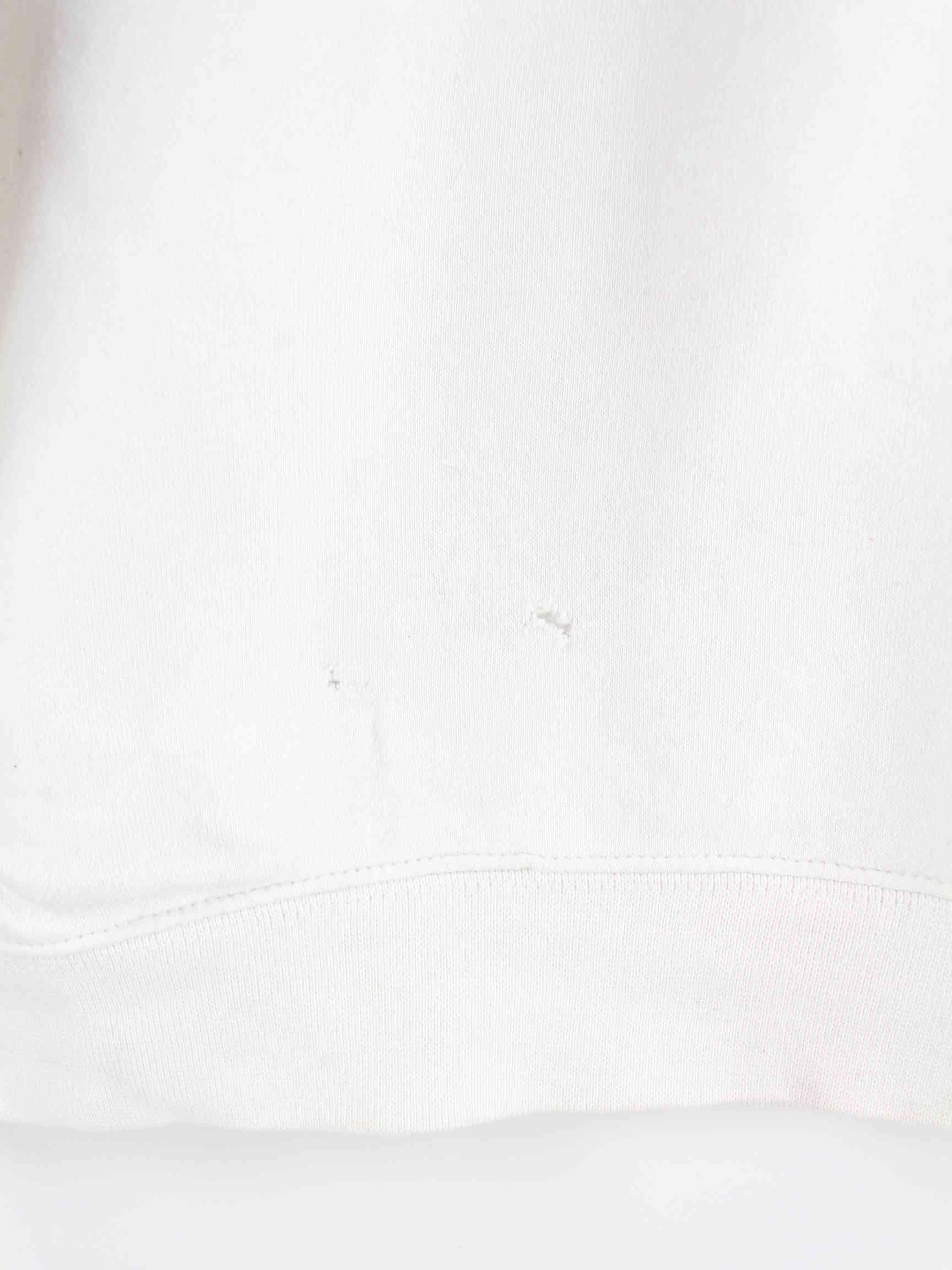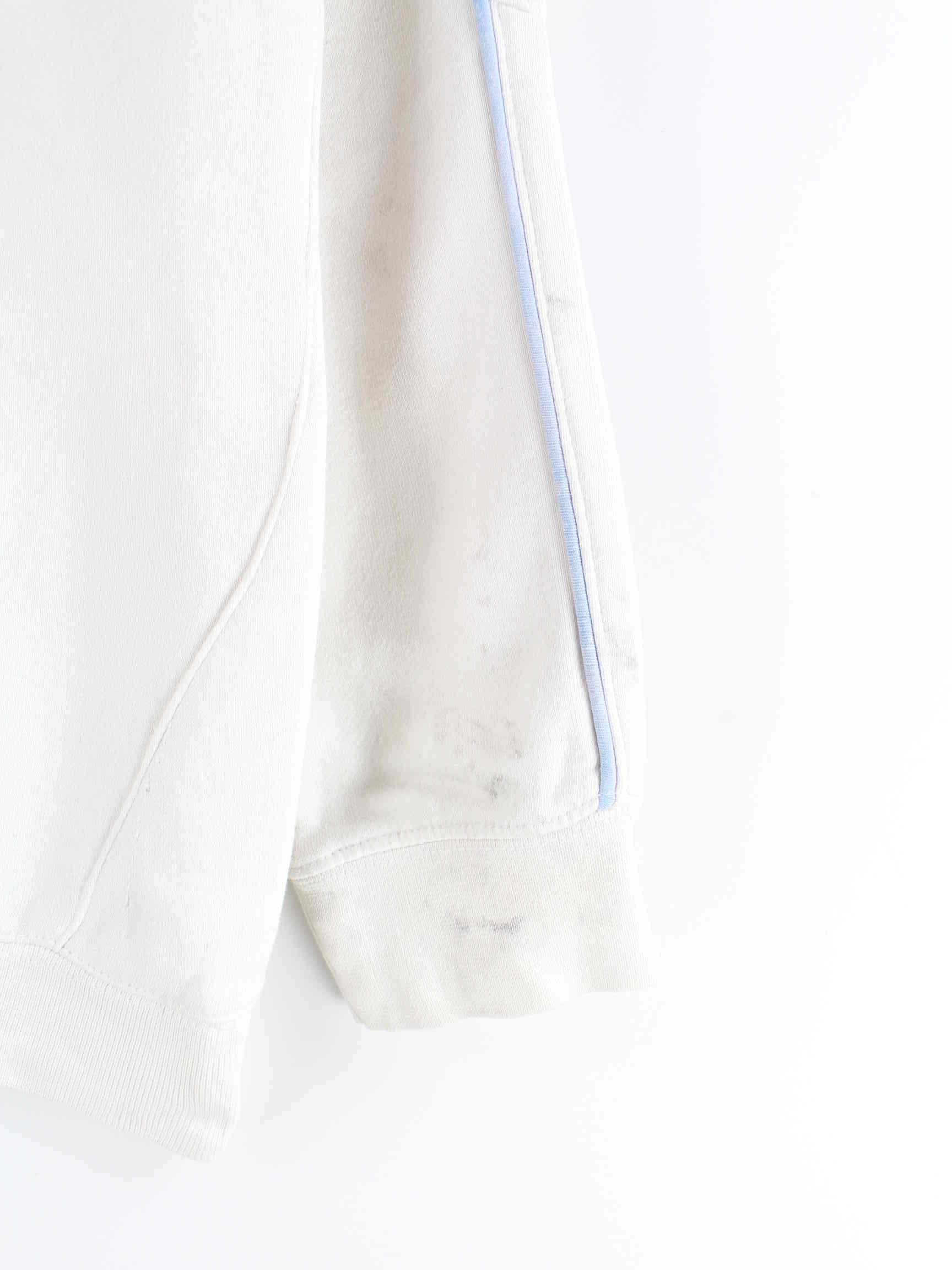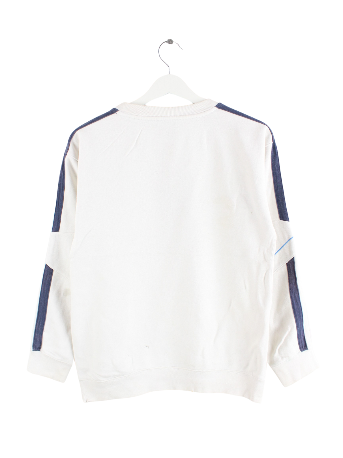 Weißer Sweater mit Stickereien aus dem Hause Nike aus Anfang der 2000'er in Größe S. Er ist aus einer Baumwollmischung . Den Zustand würden wir als 'In Ordnung' bezeichnen (vergl. Bilder).