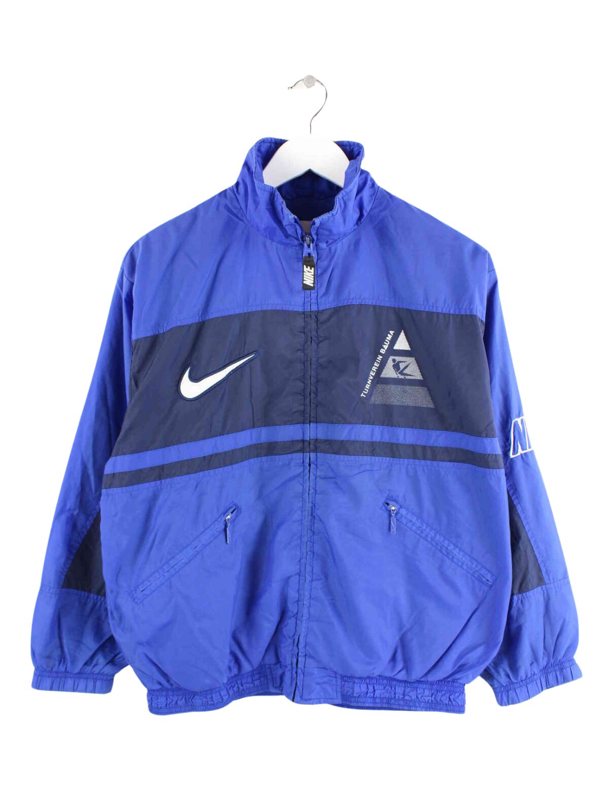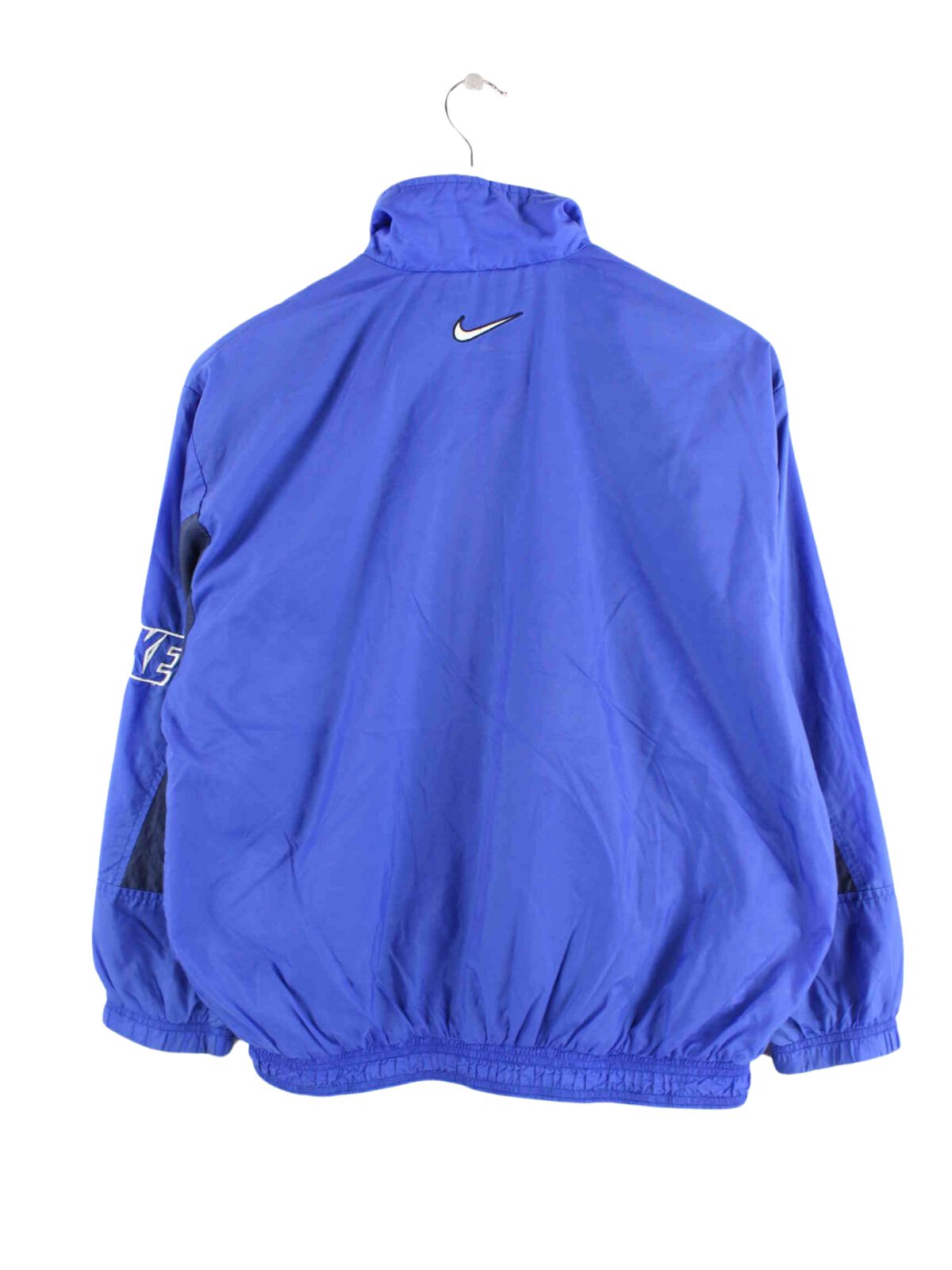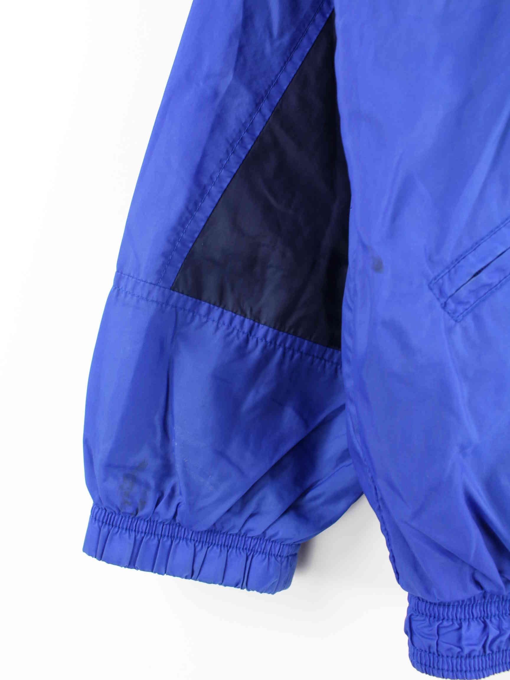 Blaue Trainingsjacke vom Brand Nike aus den 90'ern in Größe XS. Sie ist aus Synthetik produziert und in gutem Zustand bei uns zu bekommen.