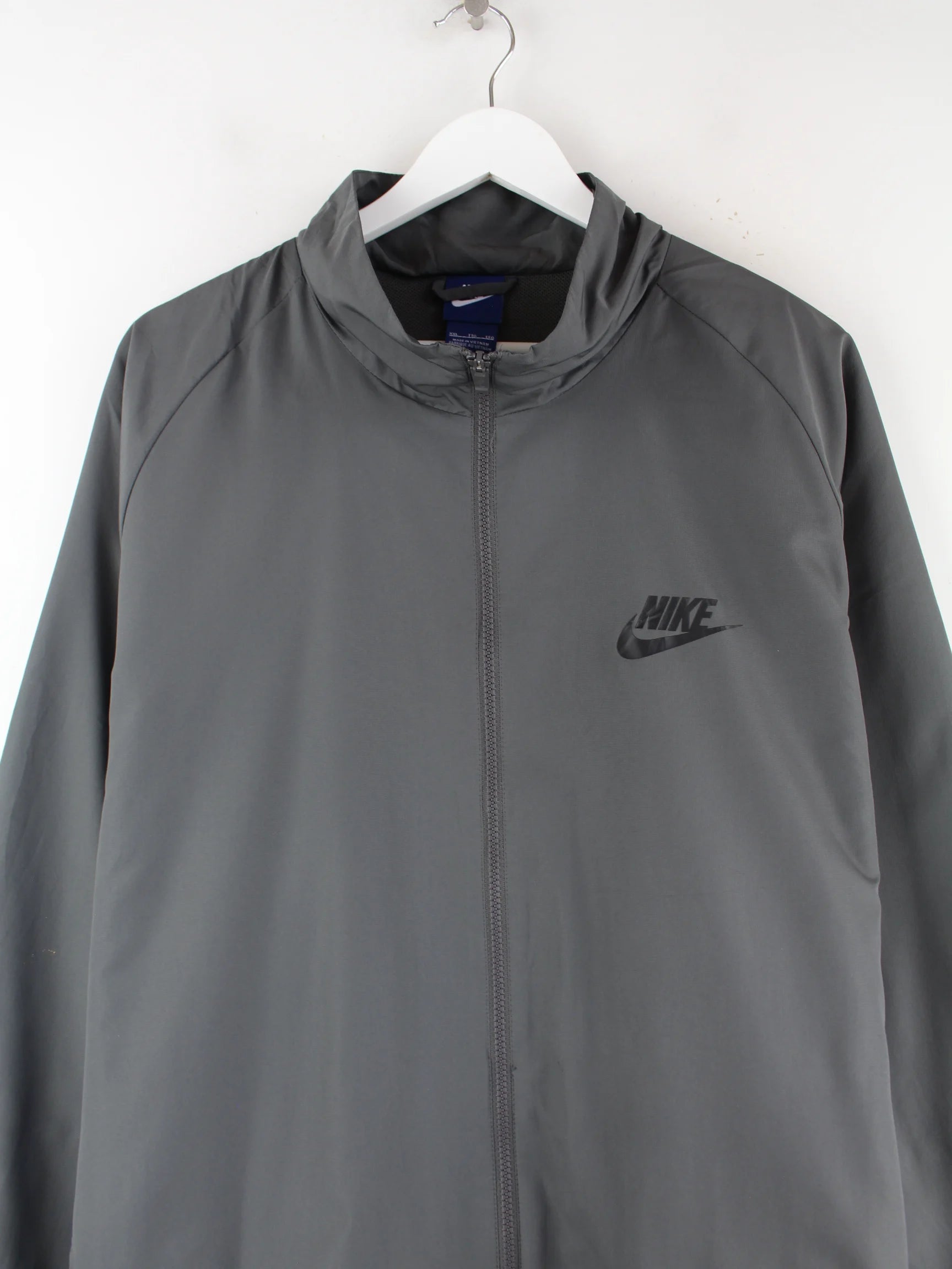 Graue Trainingsjacke des Labels Nike in Größe XXL. Sie ist aus Synthetik und in sehr gutem Zustand zu bekommen. Mit tollem Print.