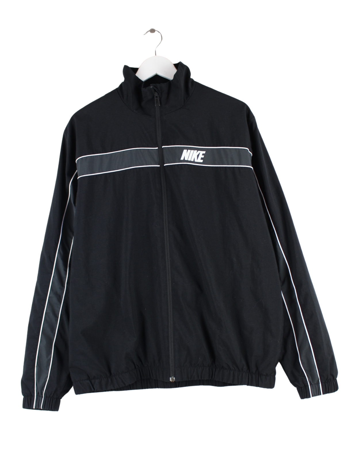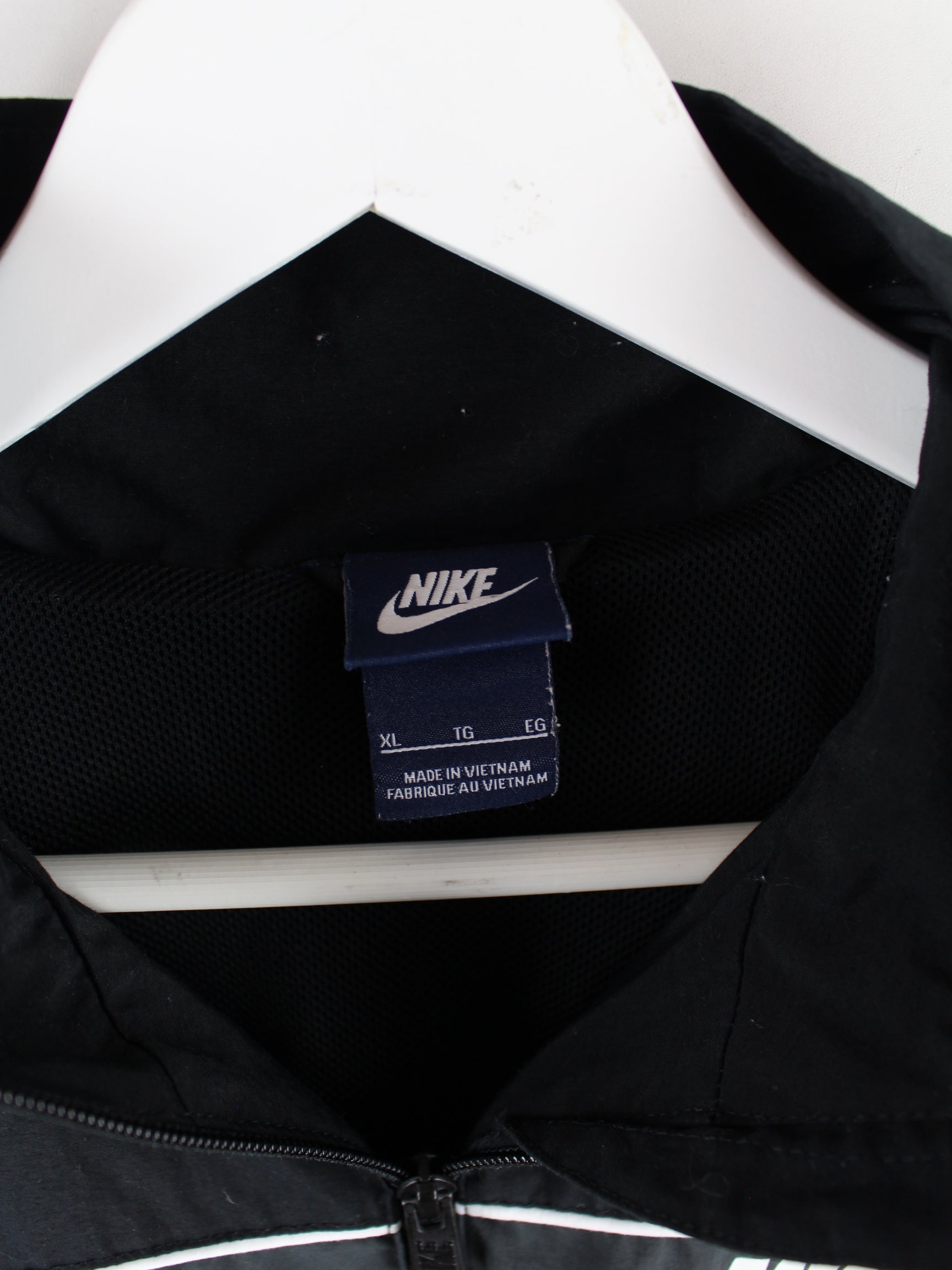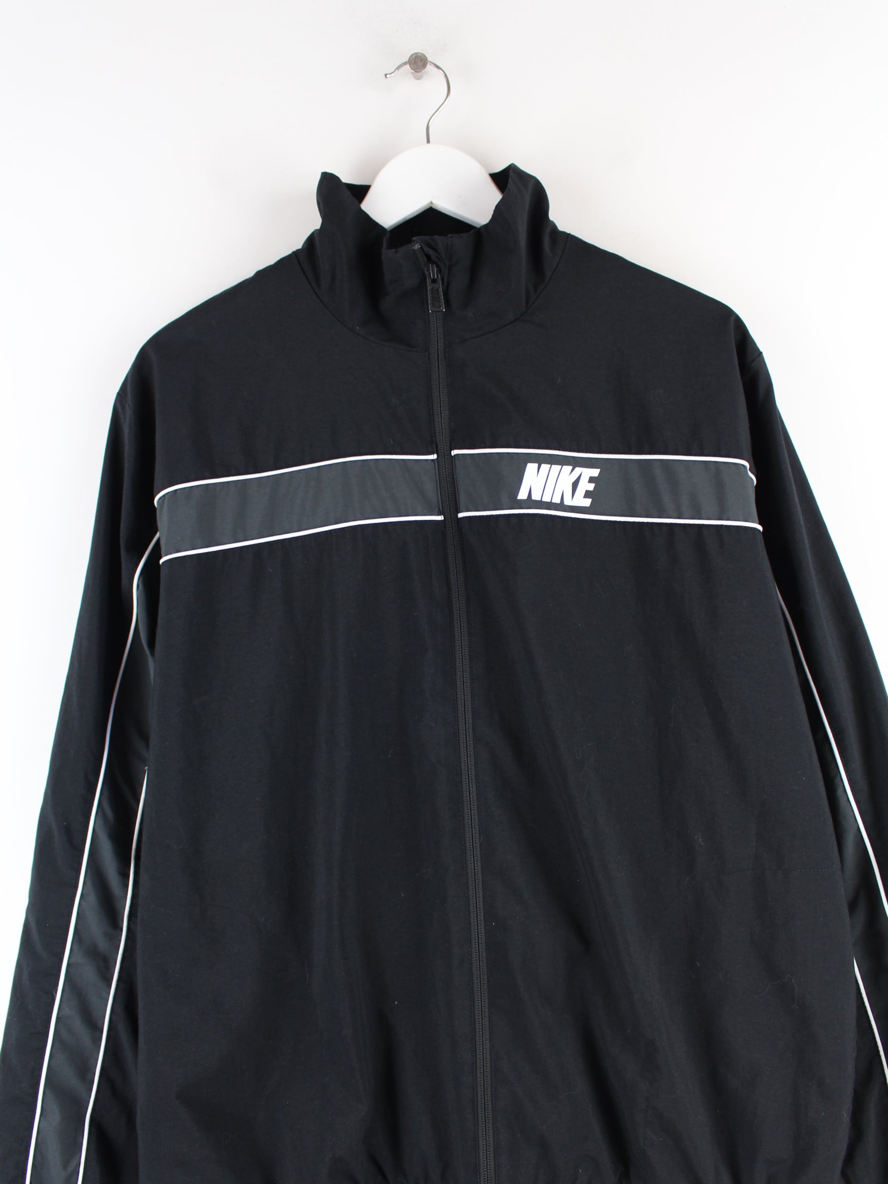 Trainingsjacke der Marke Nike in Größe XL. Sie ist aus Synthetik gefertigt und in Schwarz zu haben. Mit schickem Print.