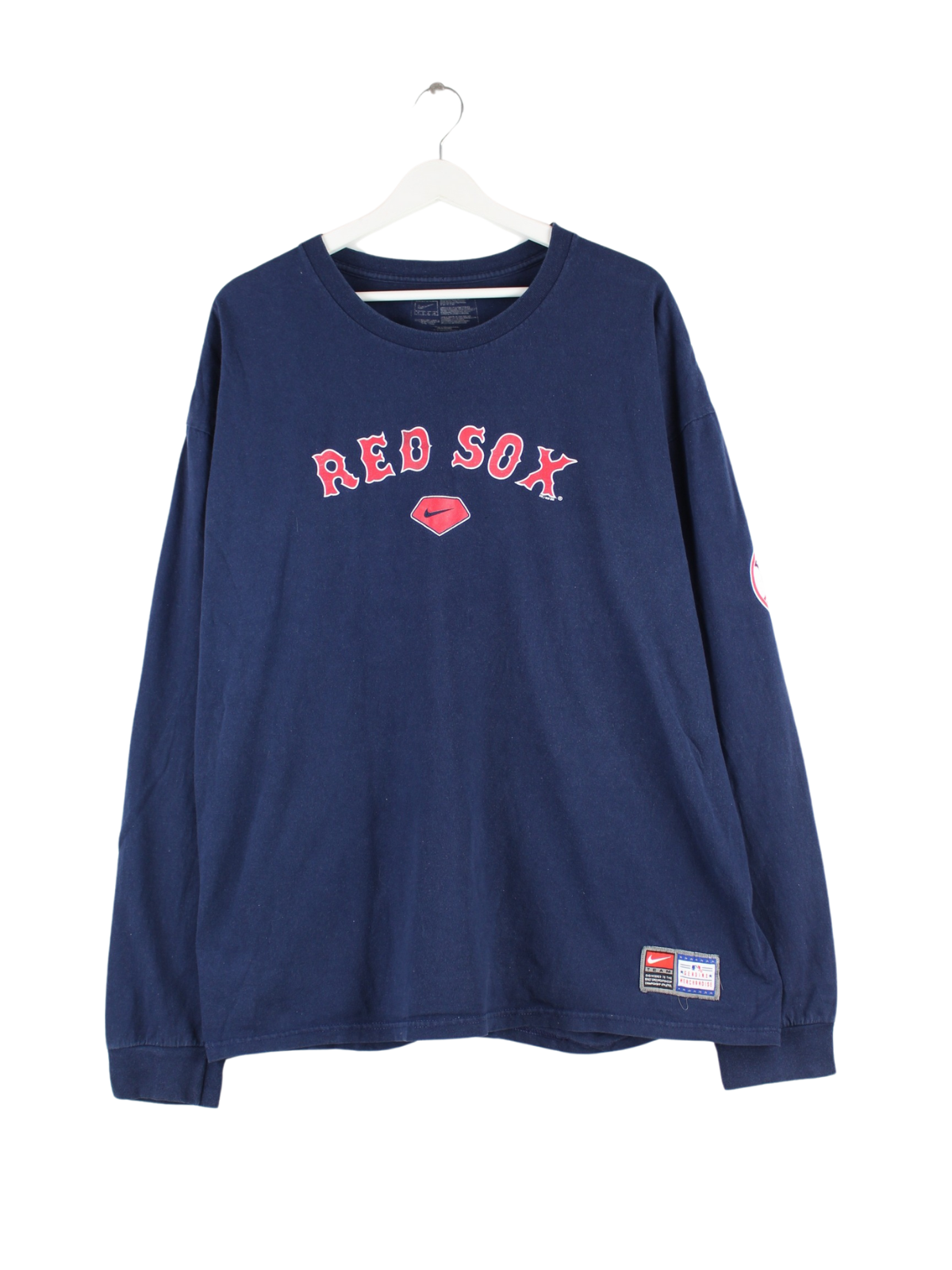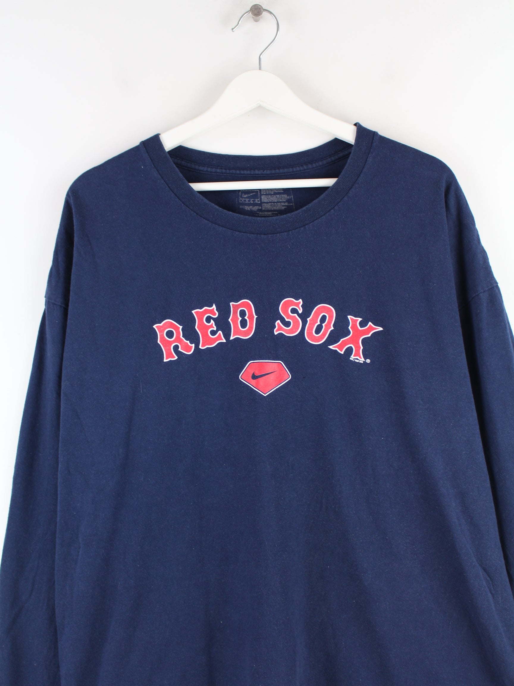 Blaues Sweatshirt vom Label Nike in Größe M. Es ist aus Baumwolle und in sehr gutem Zustand im Bestand. Mit schickem Redsox Print.