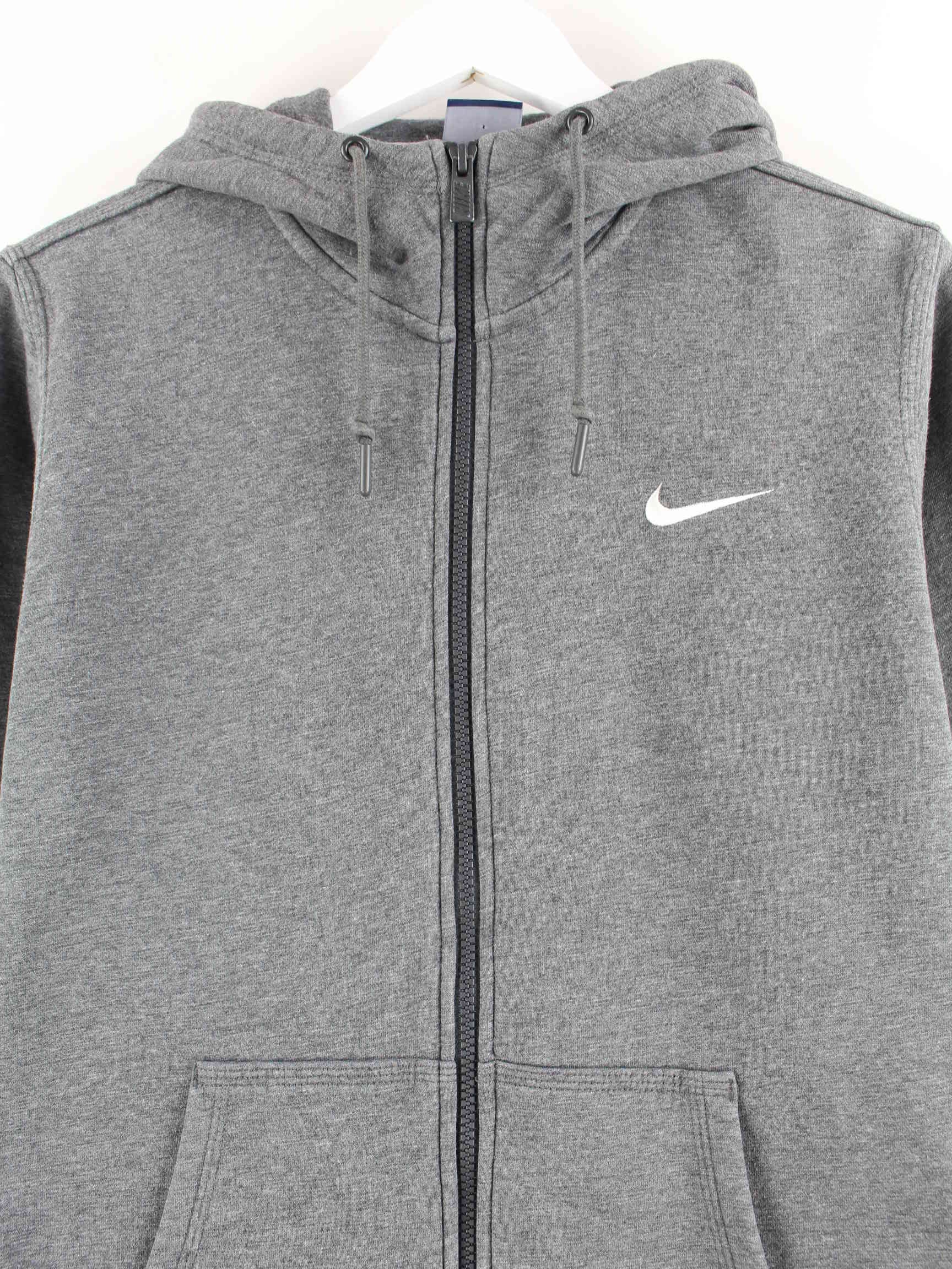 Grauer Hoodie mit Zip des Labels Nike in Größe M. Er ist aus einer Baumwollmischung und in sehr gutem Zustand auf Lager.