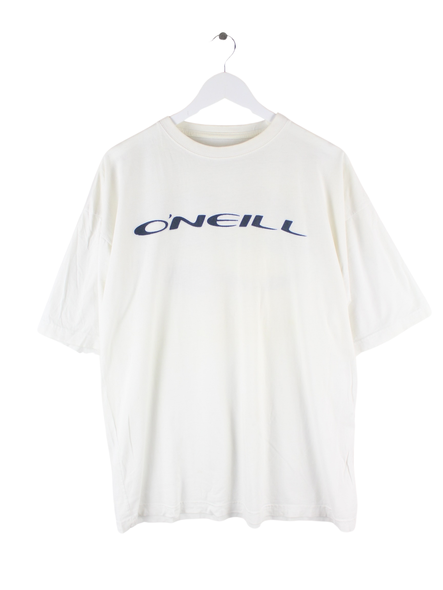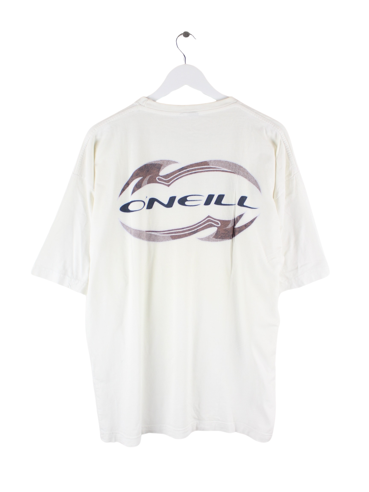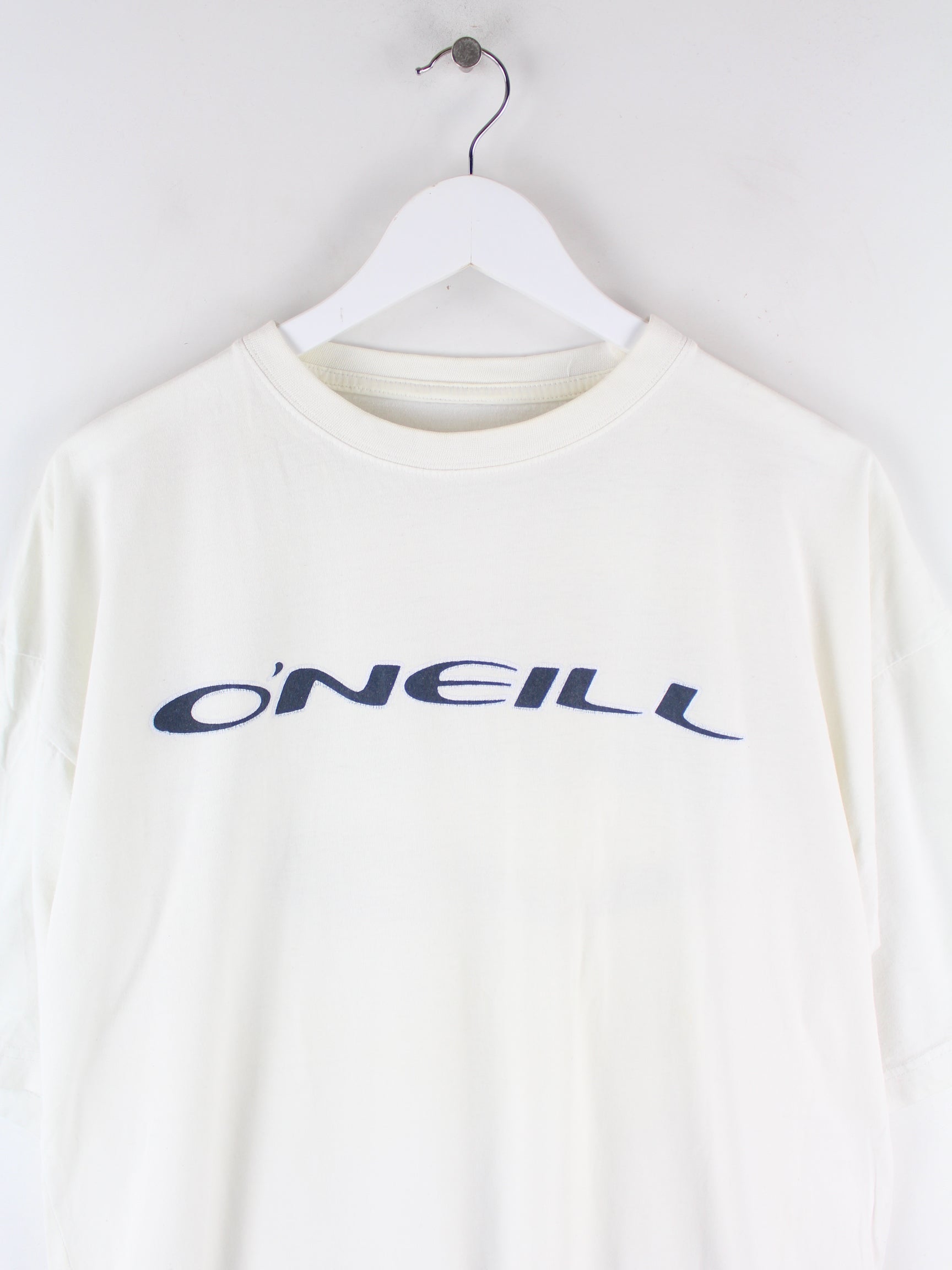 T-Shirt der Brand O'Neill in Größe XXL. Es ist aus Baumwolle gefertigt und in Weiß in Stock. Mit schickem 00s Print.