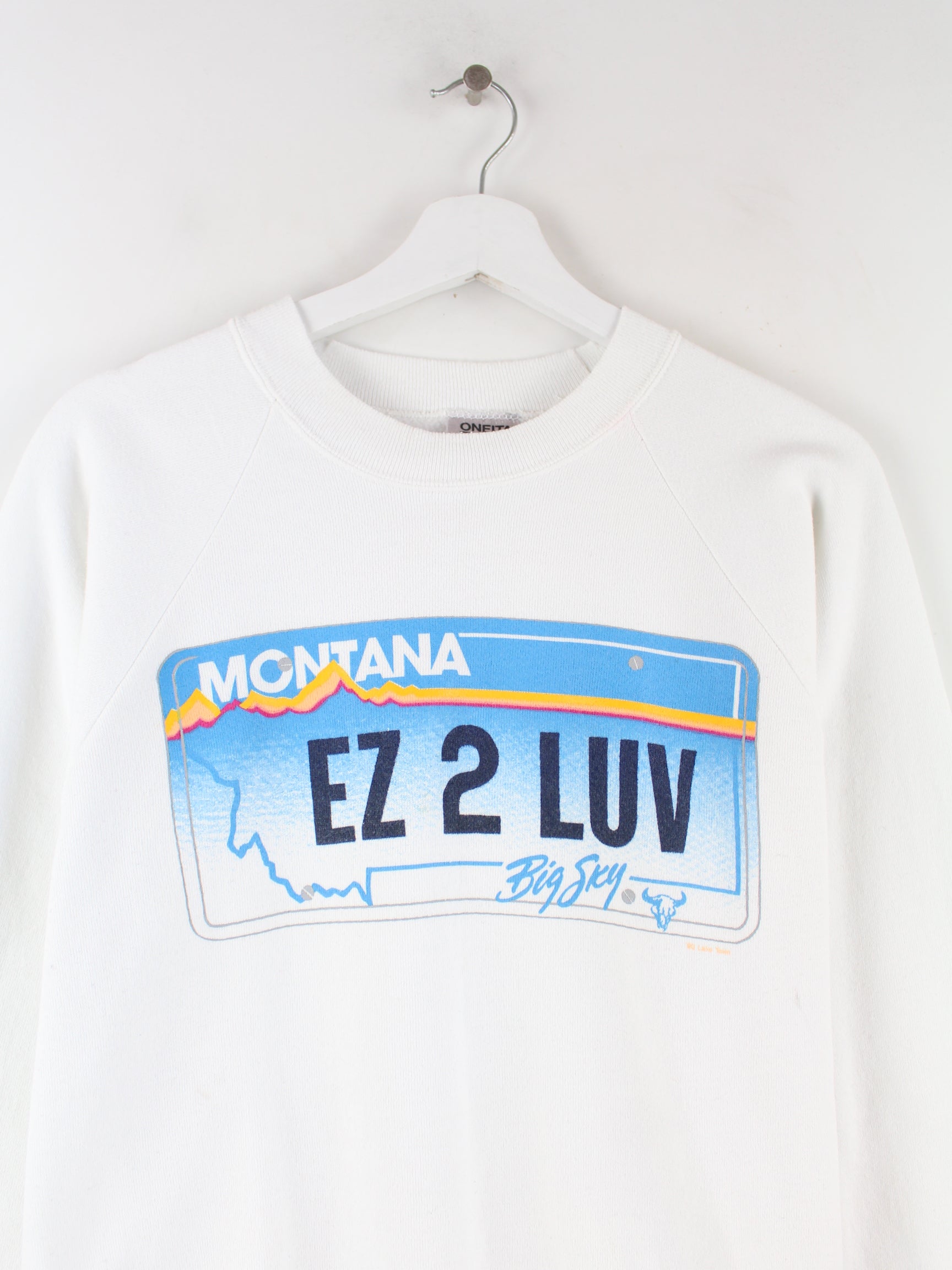 Oneita 1990 Vintage Montana Print Sweater Weiß M