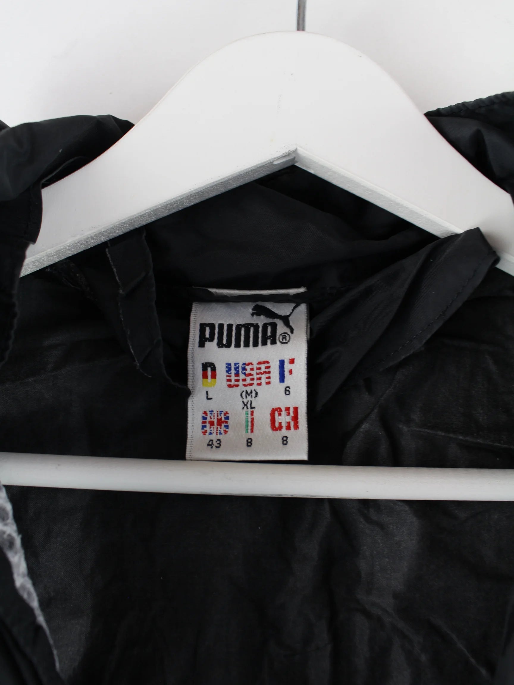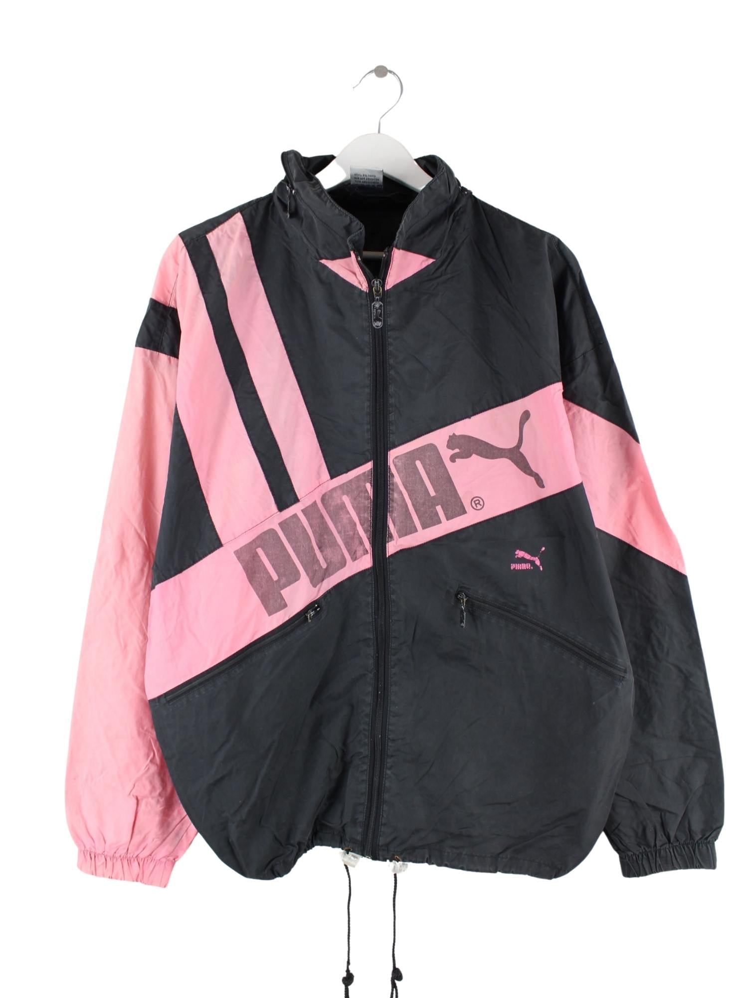 Schwarze Leichte Jacke von Puma aus den 80'ern in Größe L. Sie ist aus Synthetik gemacht. Den Zustand würden wir als 'In Ordnung' bezeichnen (vergl. Bilder).Mit tollem Vintage Print.