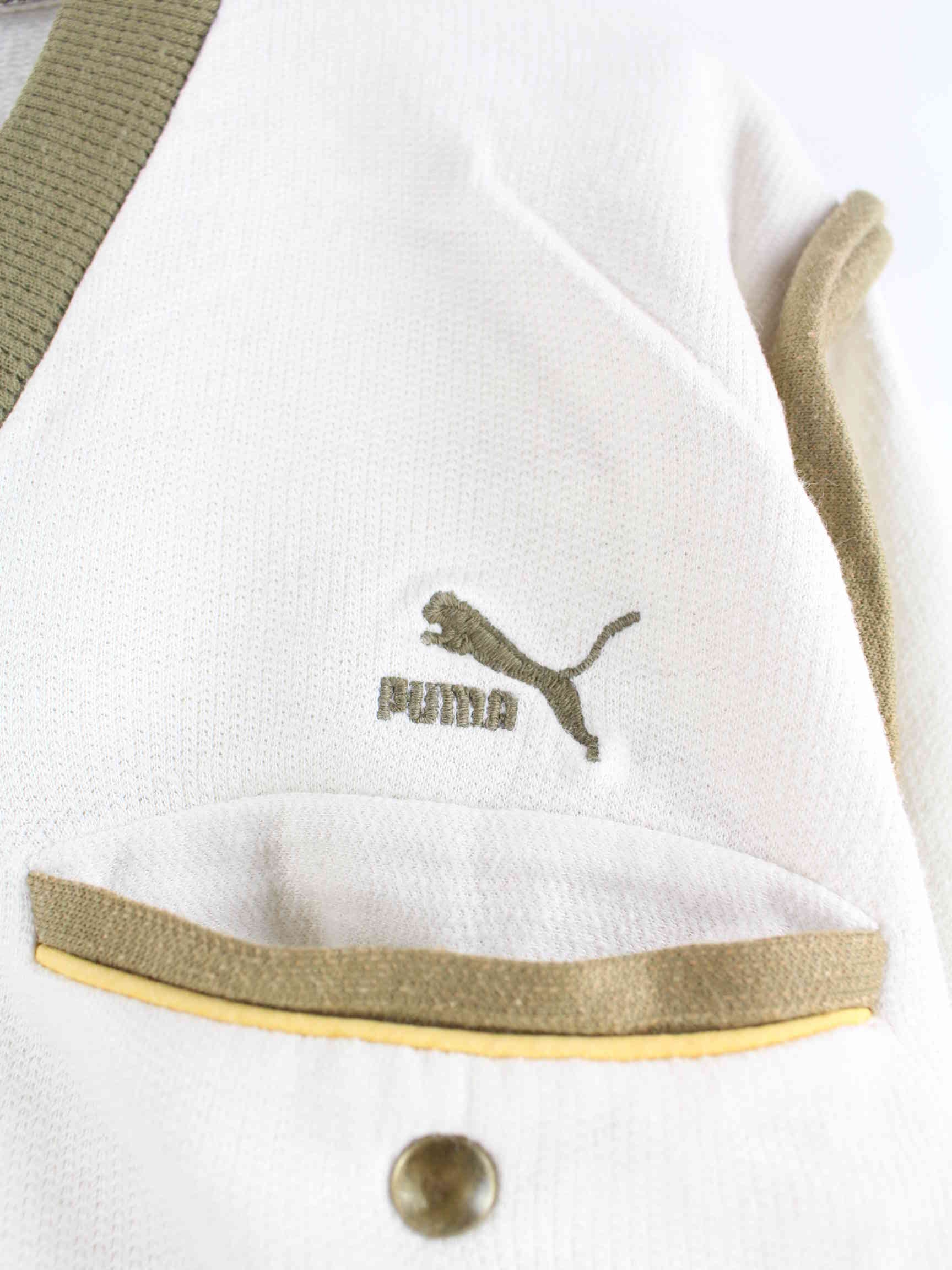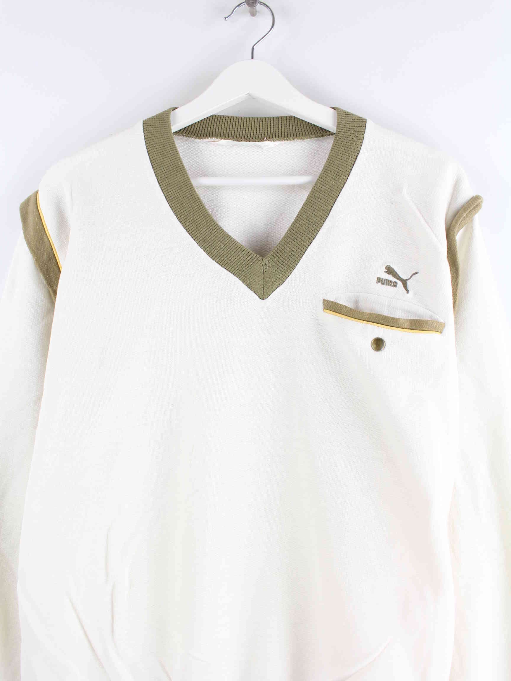 Sweater der Marke Puma in Größe M aus den 90'ern. Er ist aus einer Baumwollmischung angefertigt und in Weiß lieferbar.