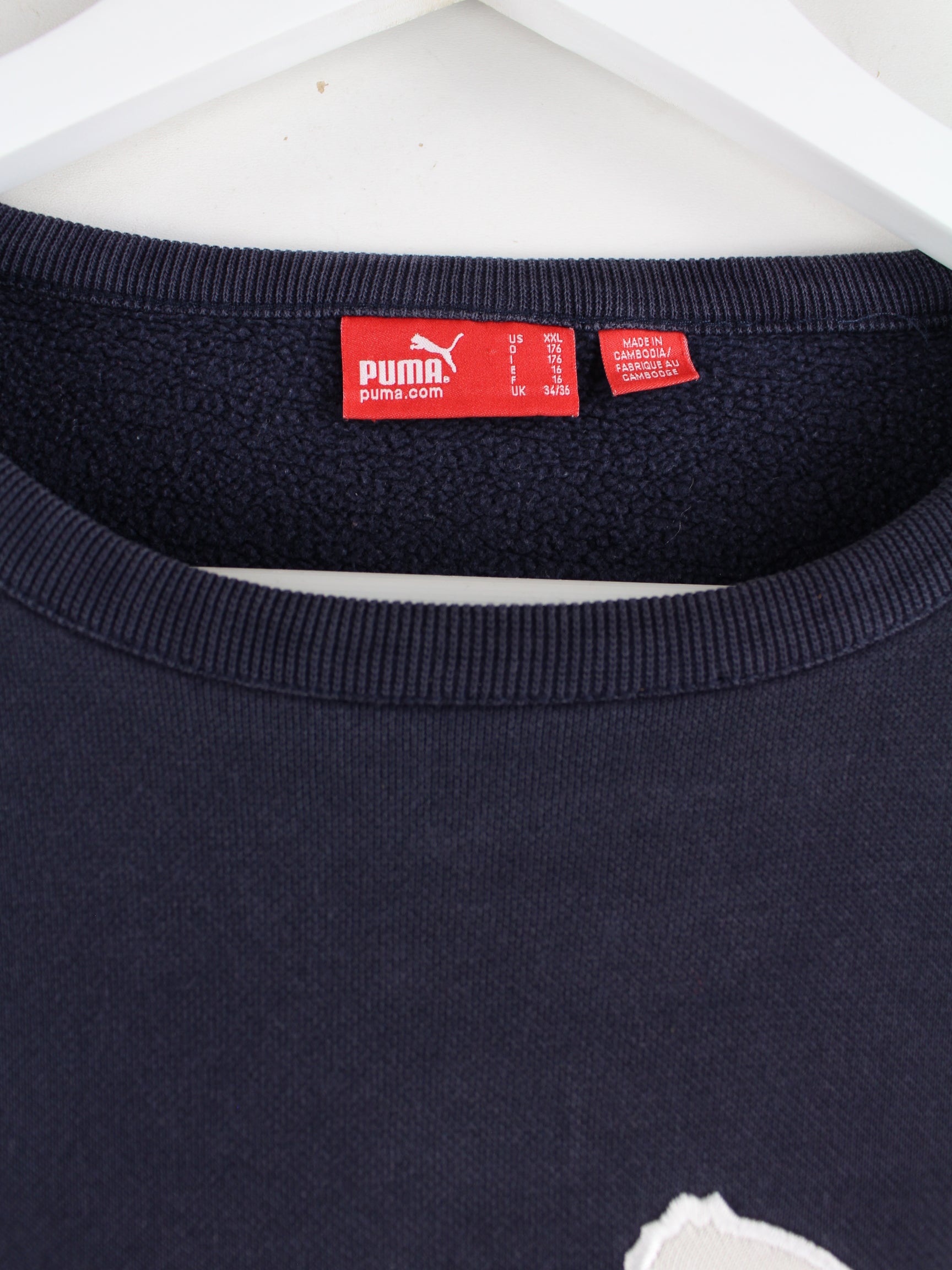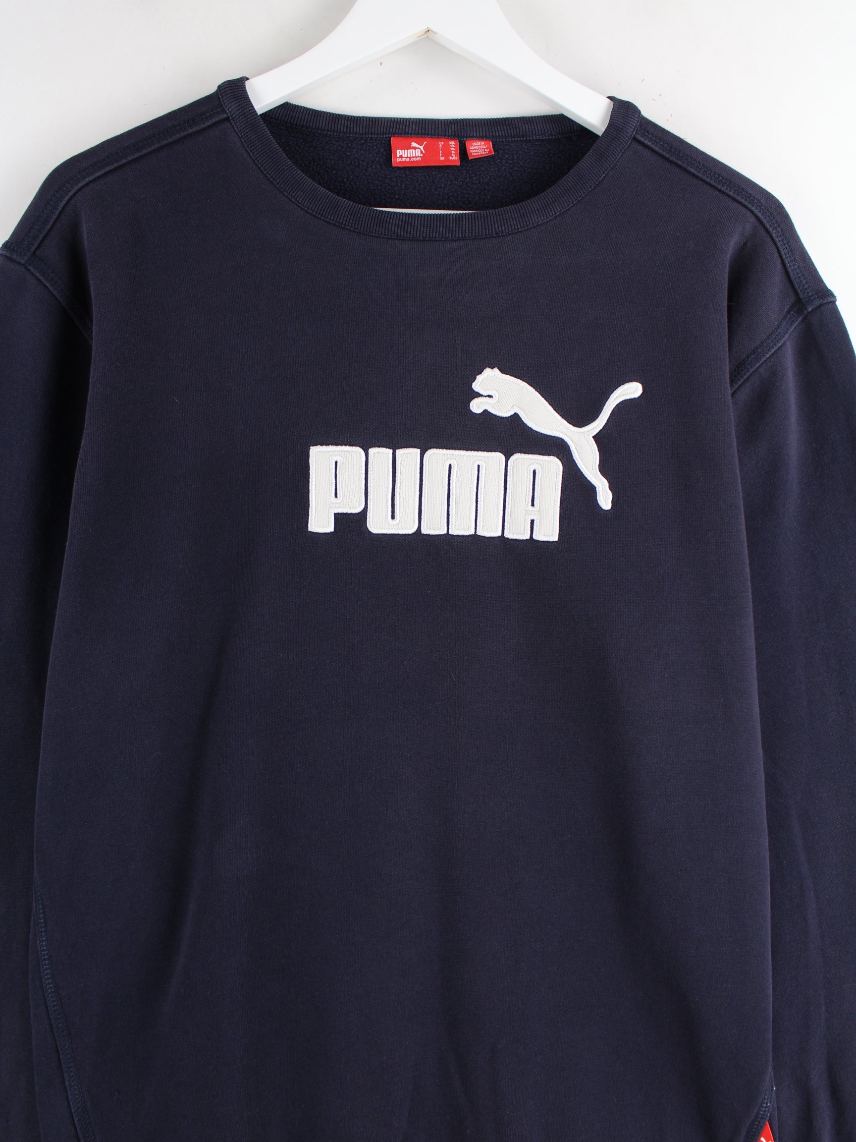 Sweater vom Label Puma mit Stick in Größe XXL. Er ist aus einer Baumwollmischung angefertigt und in Blau bei uns zu bekommen.