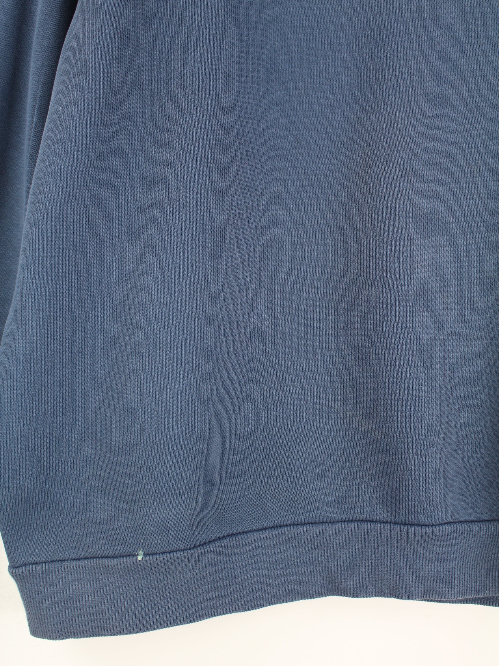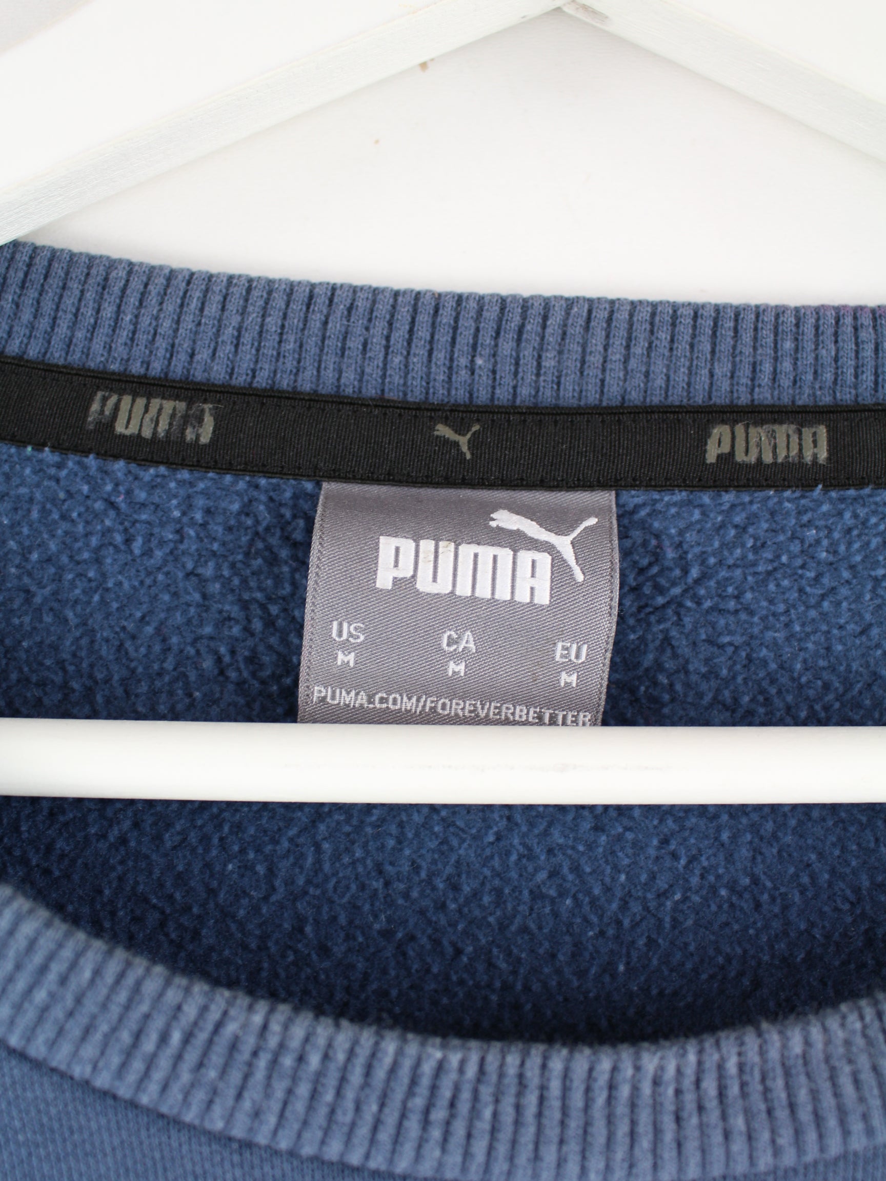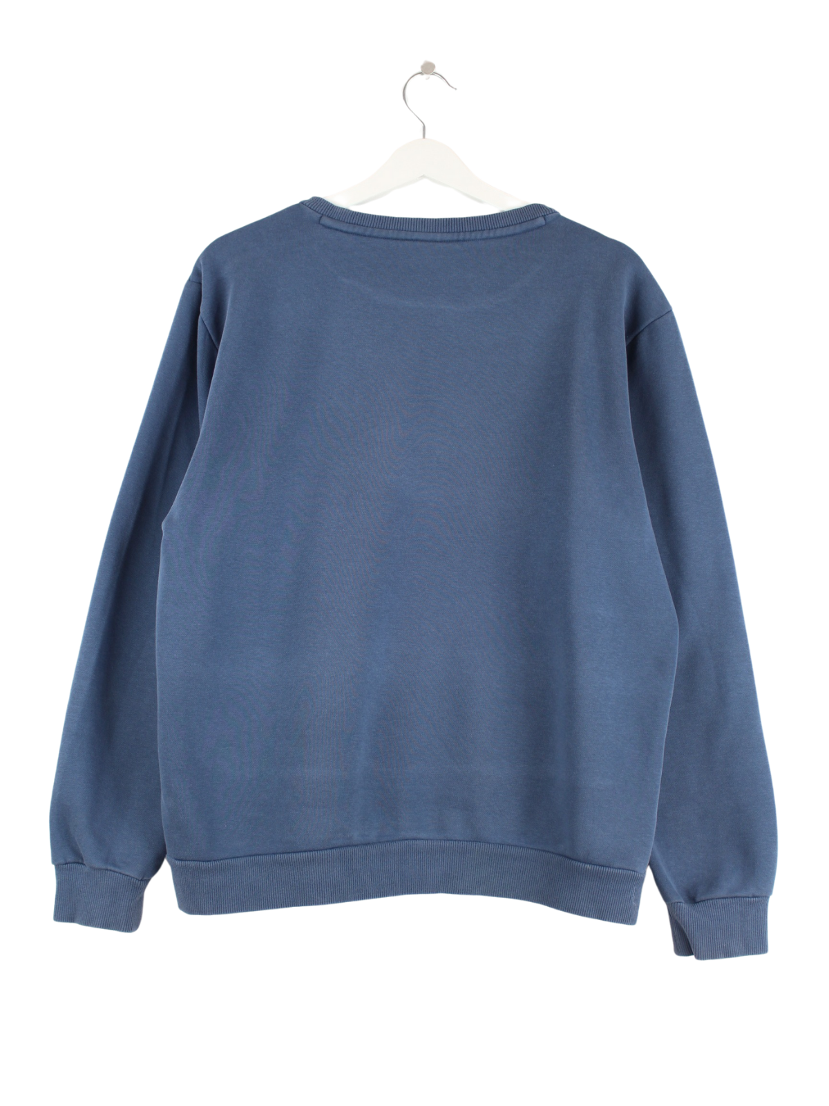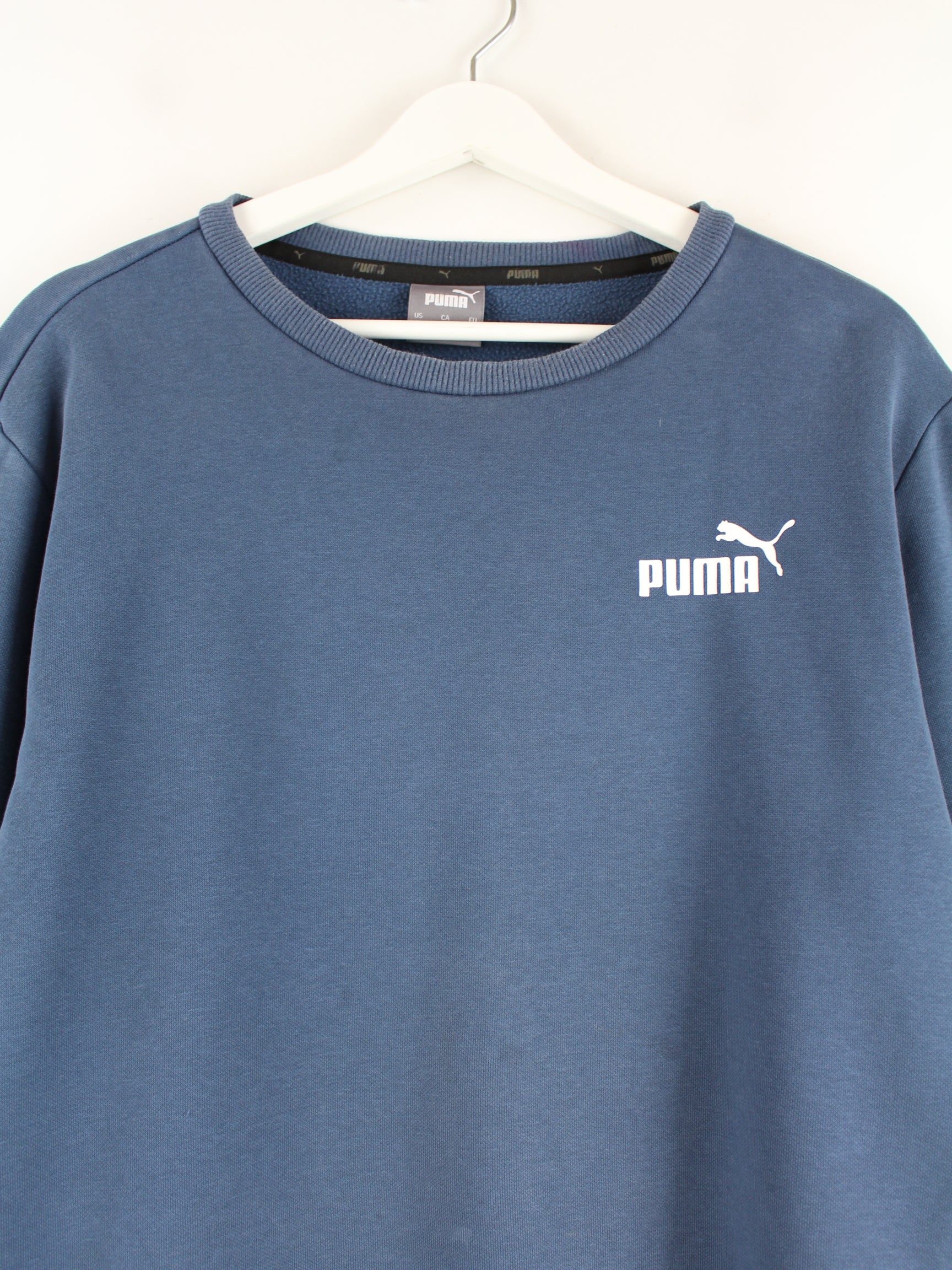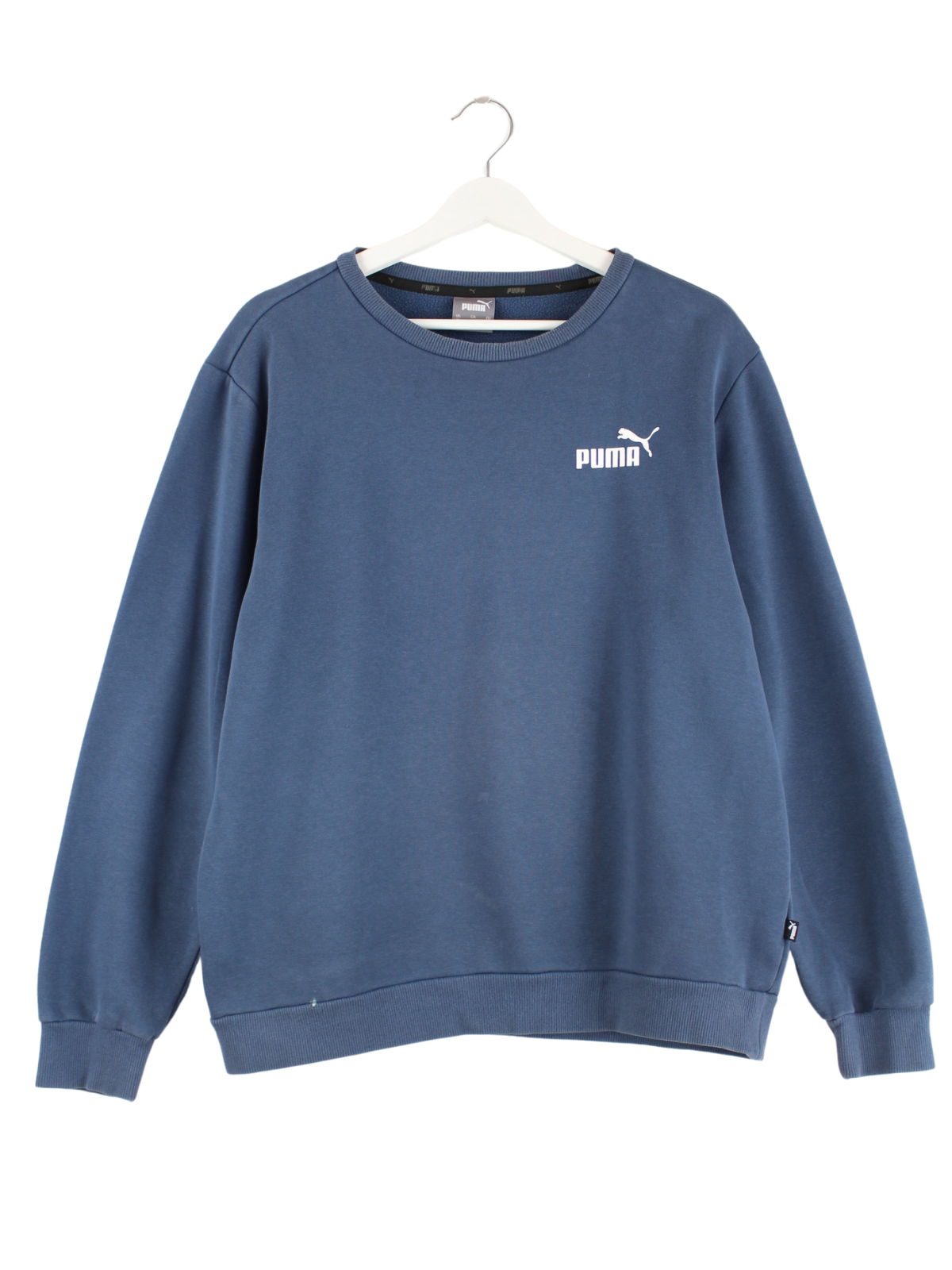 Blauer Sweater aus dem Hause Puma in Größe M. Er ist aus einer Baumwollmischung angefertigt und in gutem Zustand bei uns zu bekommen. Mit schönem Print.