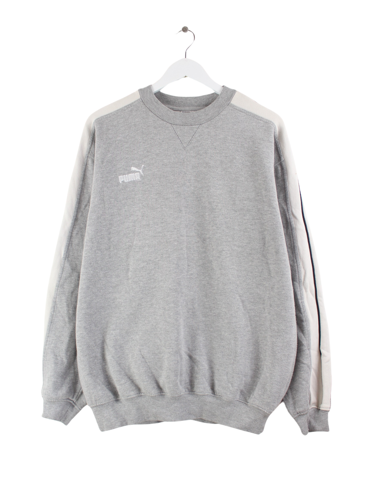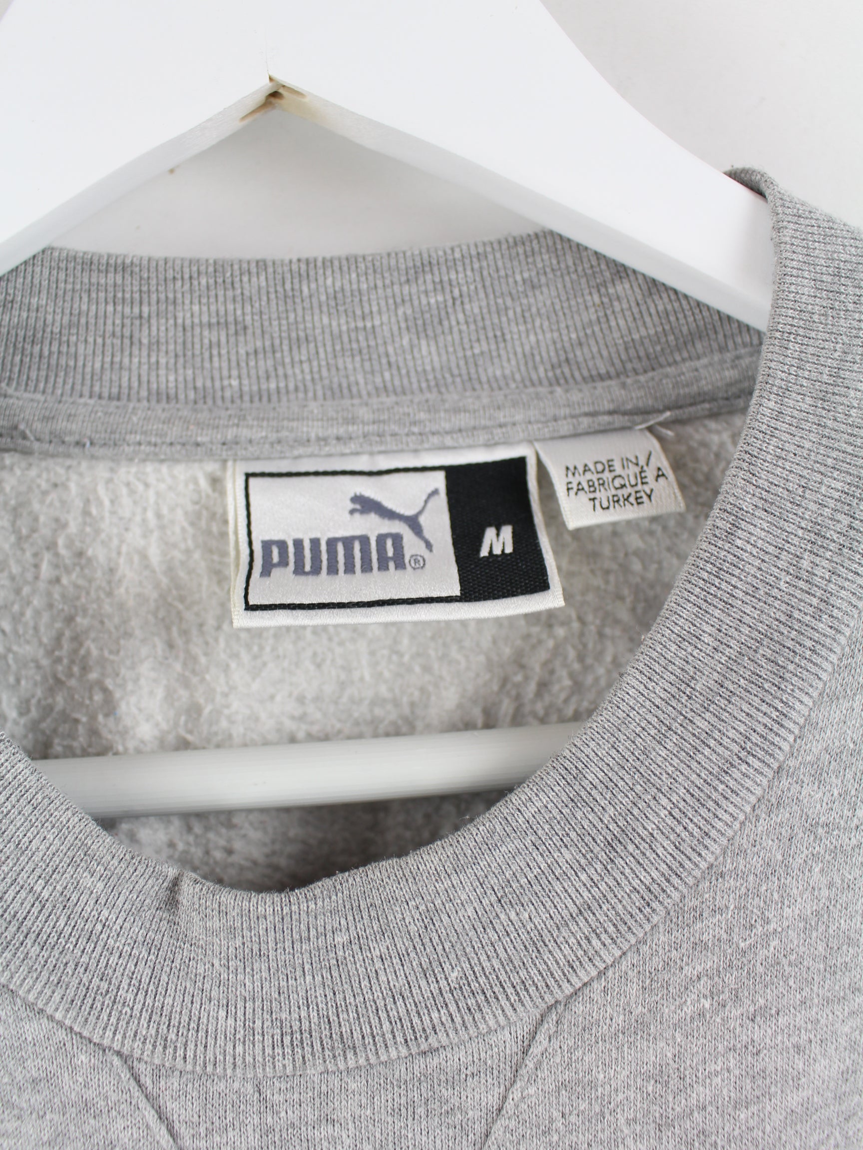 Sweater vom Brand Puma mit Stickereien in Größe M aus Anfang der 2000'er. Er ist aus einer Baumwollmischung hergestellt und in Grau bei uns vorrätig.
