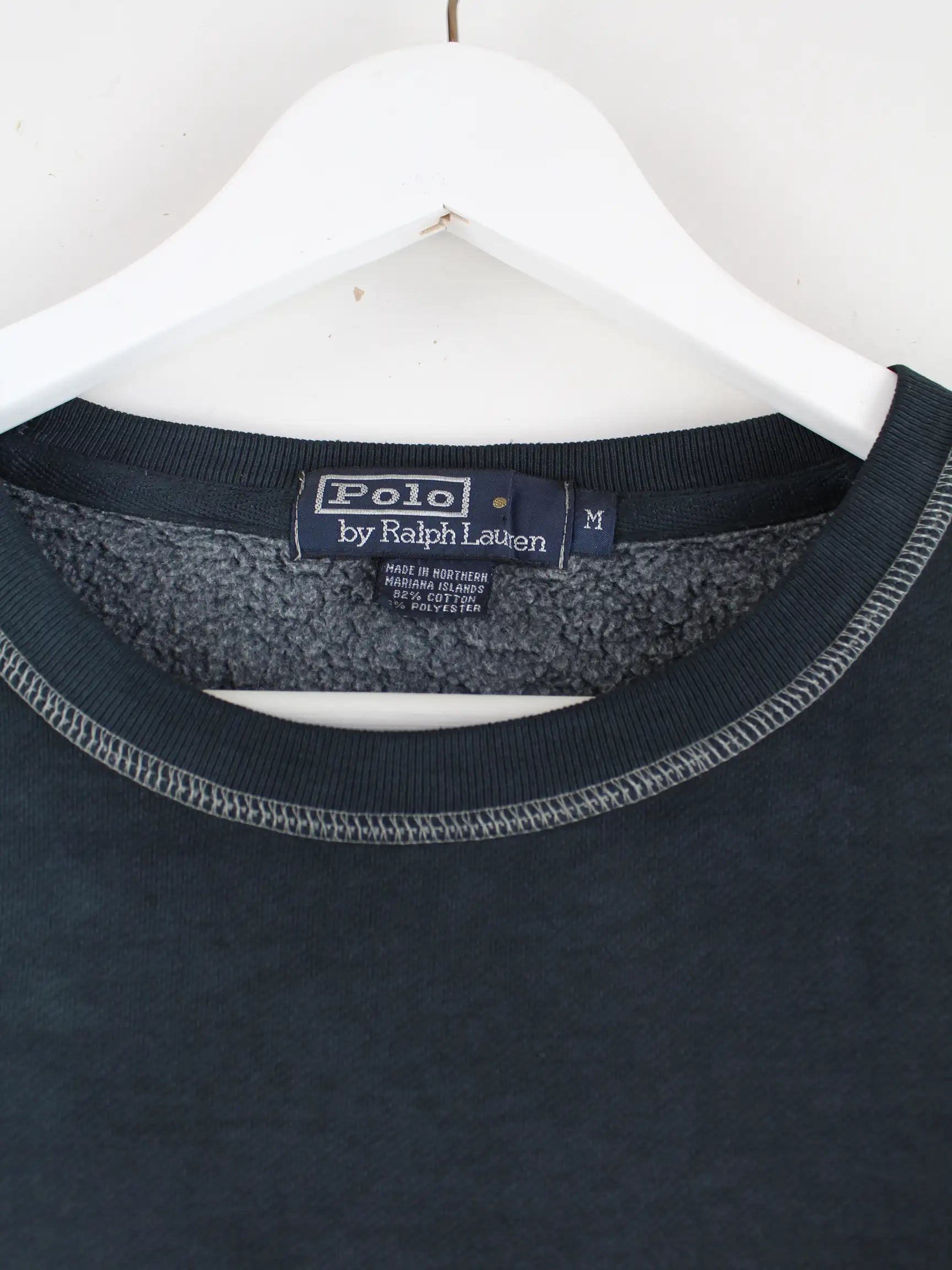 Schwarzer Sweater von Ralph Lauren aus den 90'ern in Größe M. Er ist aus einer Baumwollmischung . Den Zustand würden wir als 'In Ordnung' bezeichnen (vergl. Bilder).