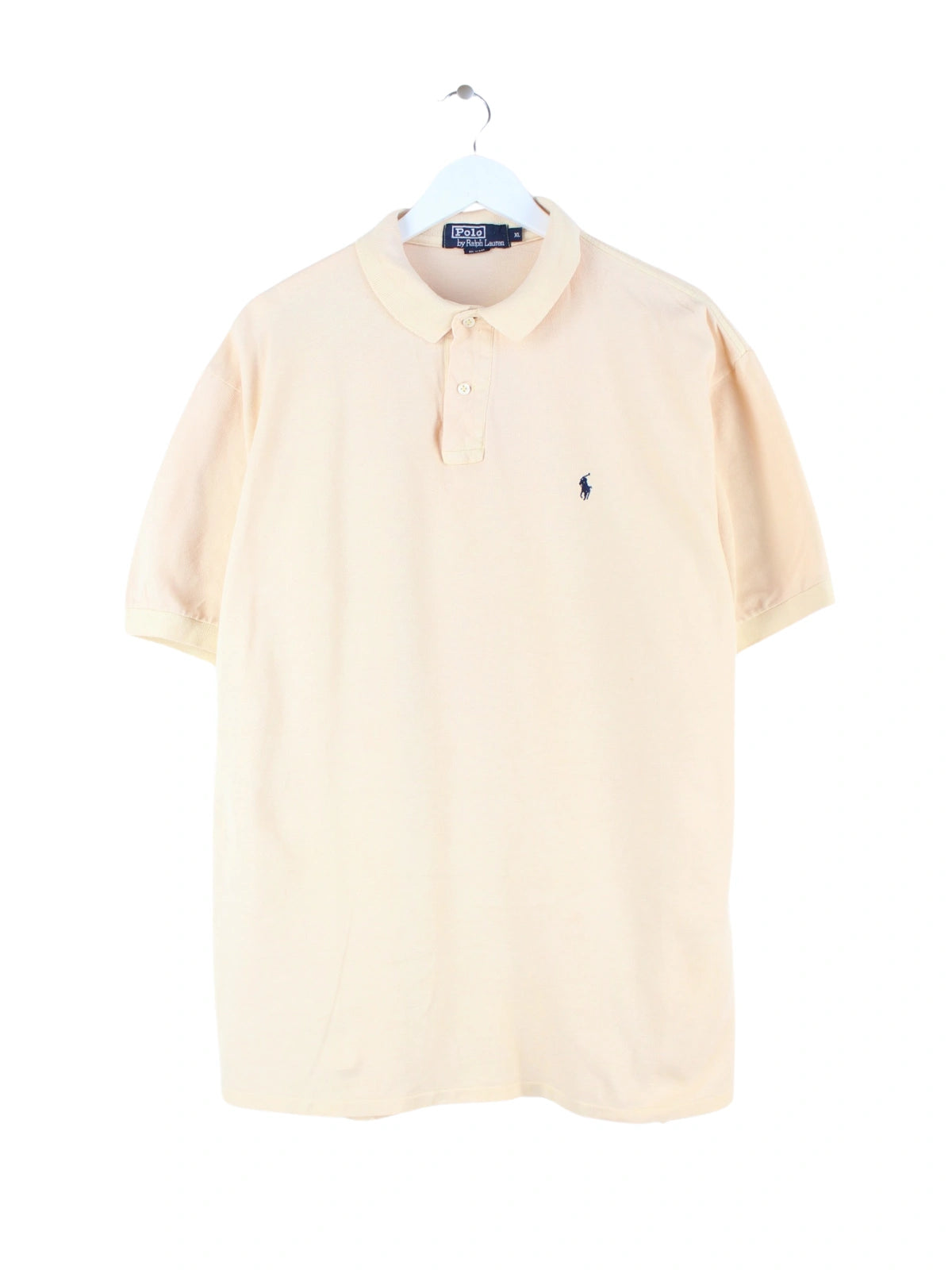 Beigefarbenes Poloshirt von Ralph Lauren aus den 90'ern in Größe XL. Es ist aus Baumwolle produziert und in gutem Zustand im Angebot.