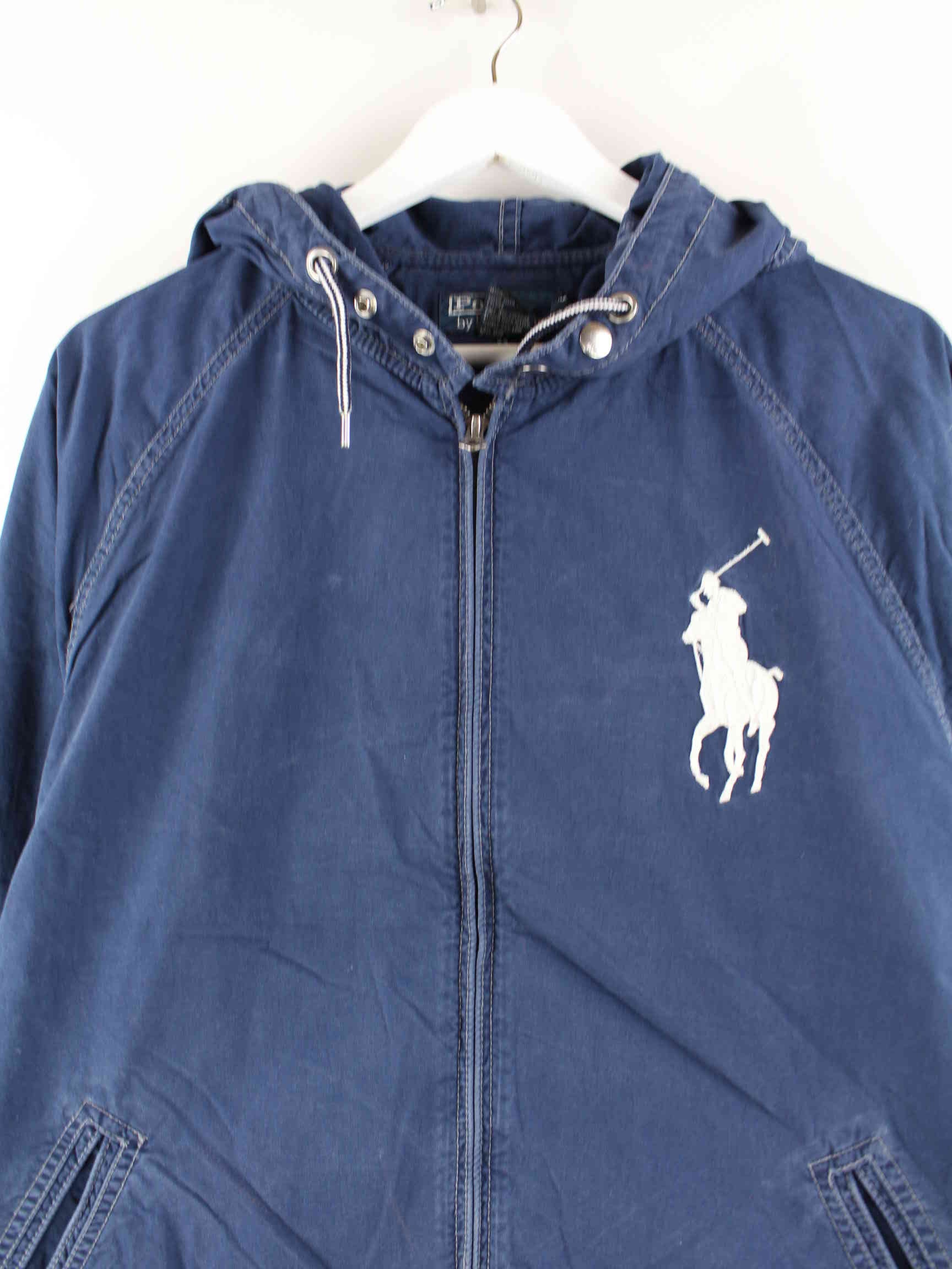 Leichte Jacke vom Label Ralph Lauren mit gesticktem Logo in Größe XL. Sie ist aus einer Baumwollmischung produziert und in Blau lieferbar.