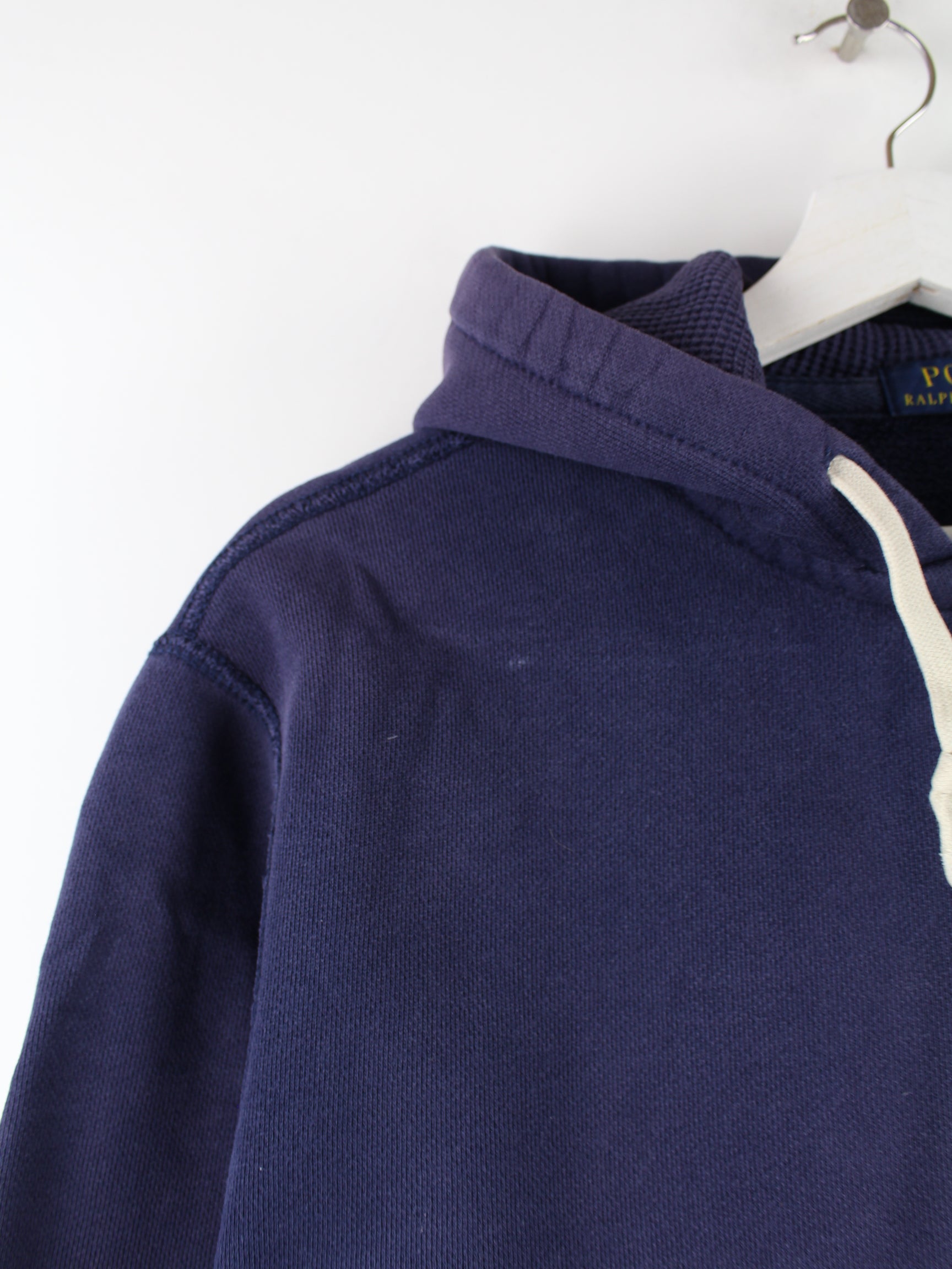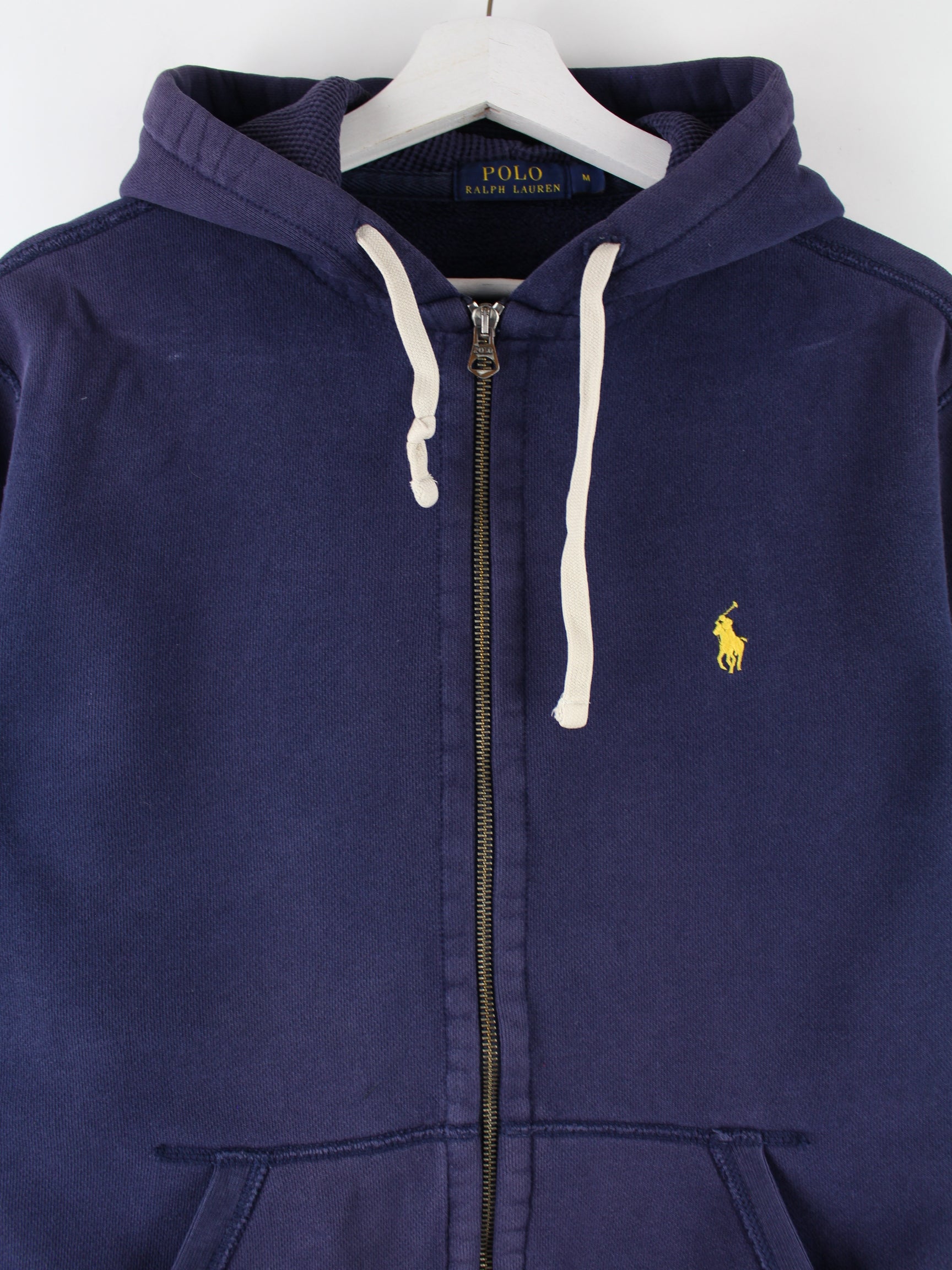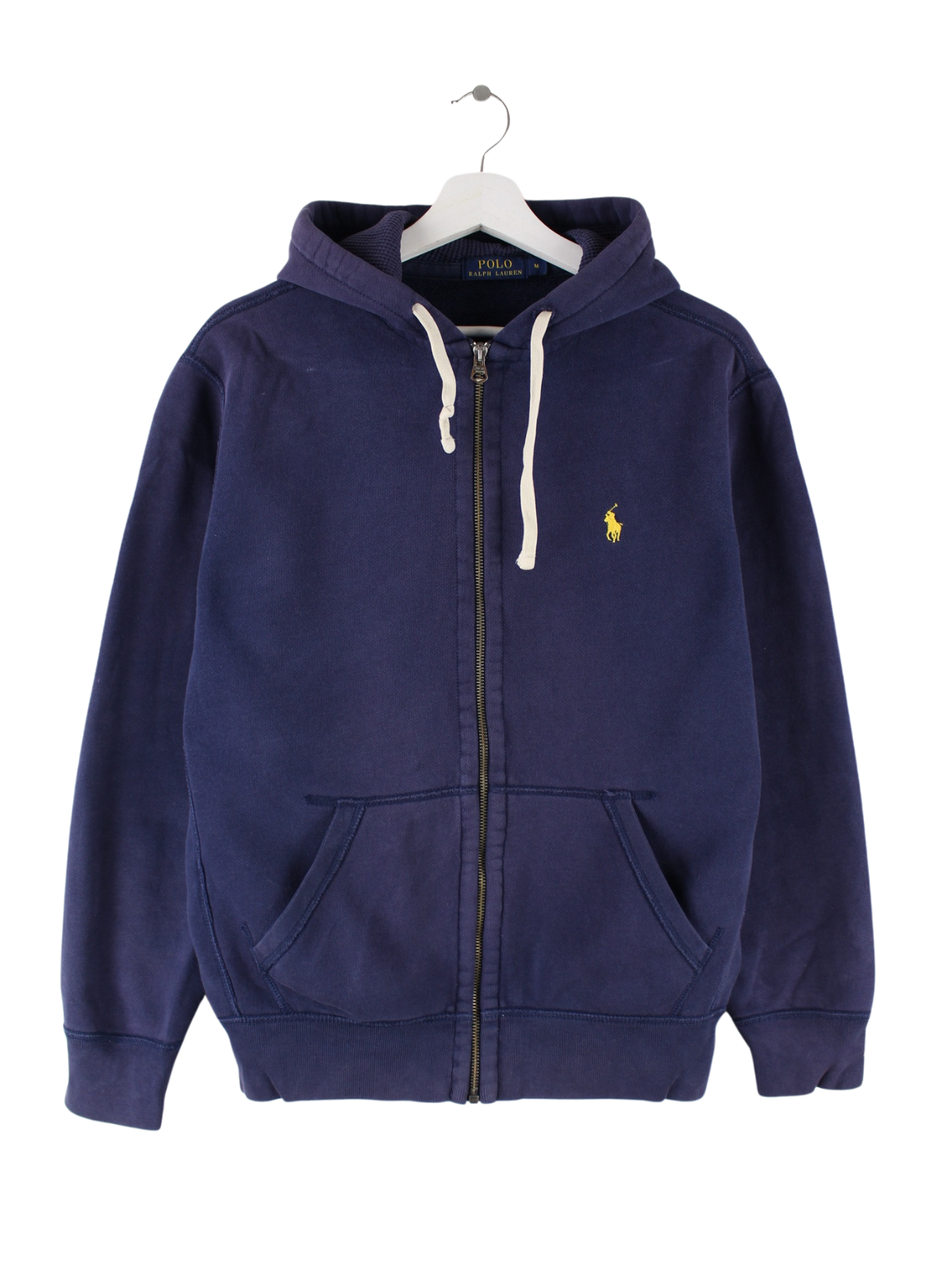Blauer Hoodie mit durchgehendem Reißverschluß der Brand Ralph Lauren in Größe M. Er ist aus einer Baumwollmischung angefertigt und in gutem Zustand im Bestand.