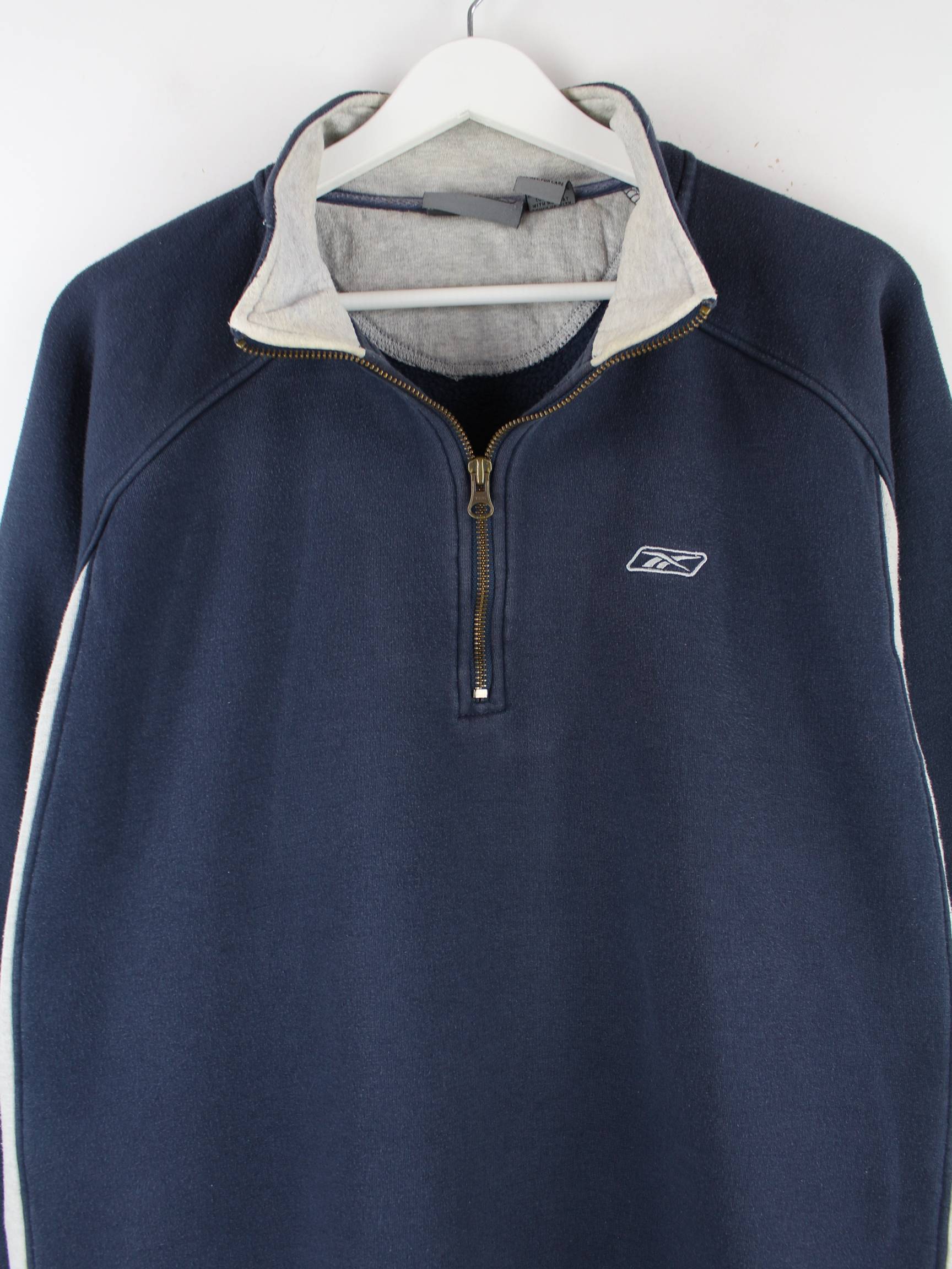 Blauer Sweater mit half Zip der Brand Reebok in Größe XL. Er ist aus einer Baumwollmischung gefertigt und in sehr gutem Zustand im Angebot.