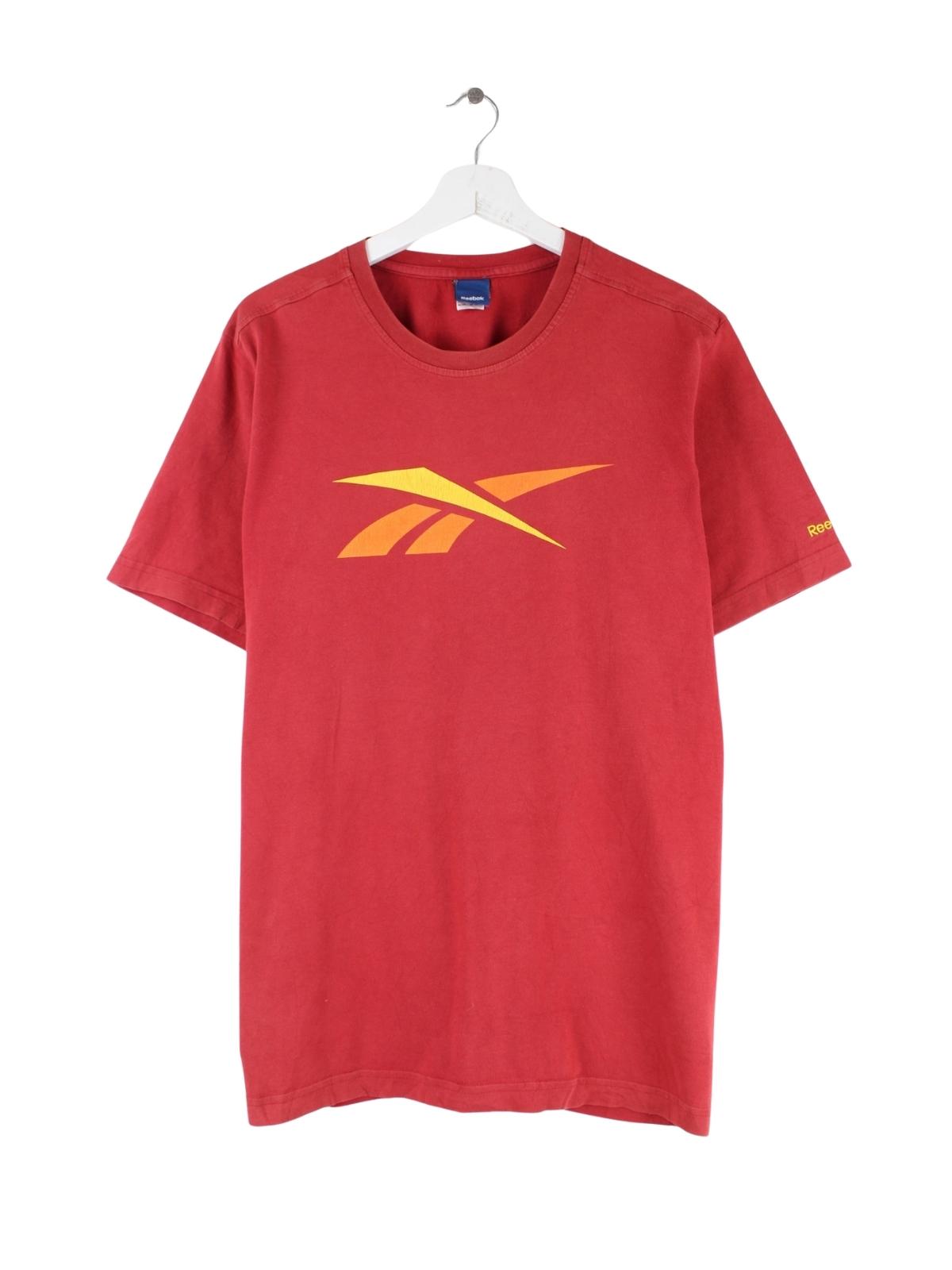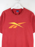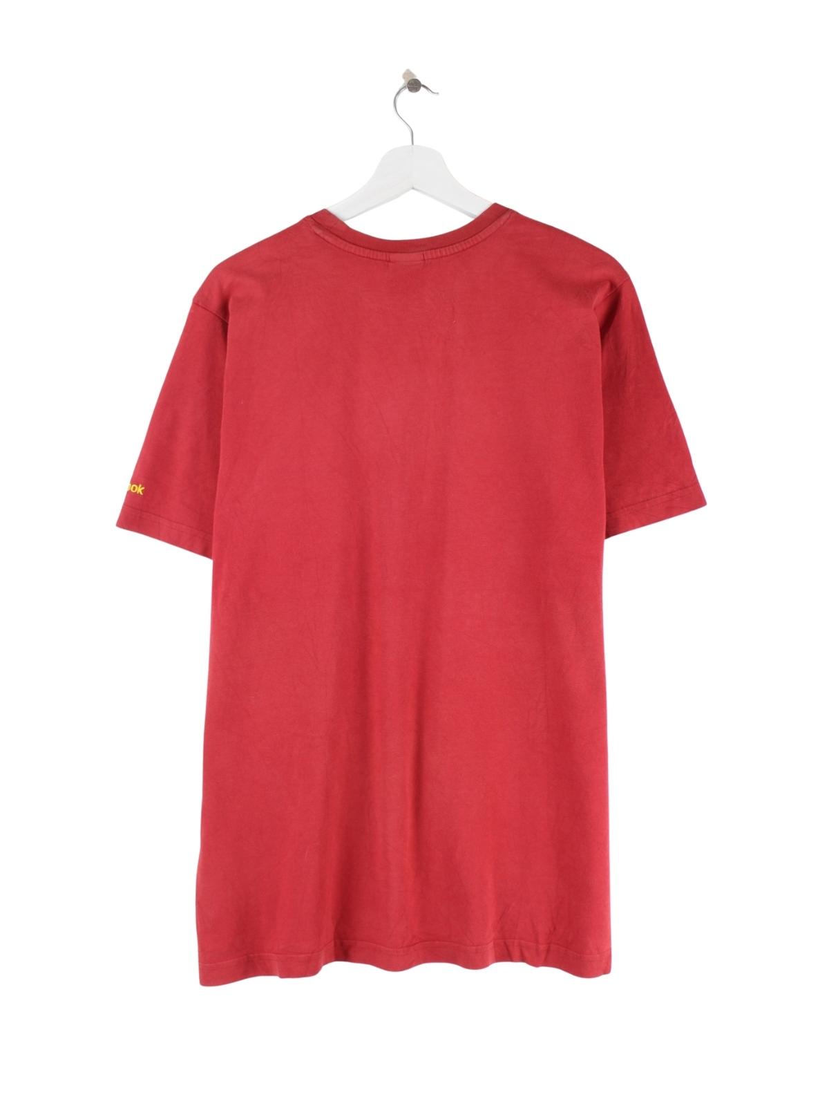 T-Shirt der Marke Reebok in Größe L. Es ist aus Baumwolle gemacht und in Rot bei uns vorrätig. Mit schönem Print.