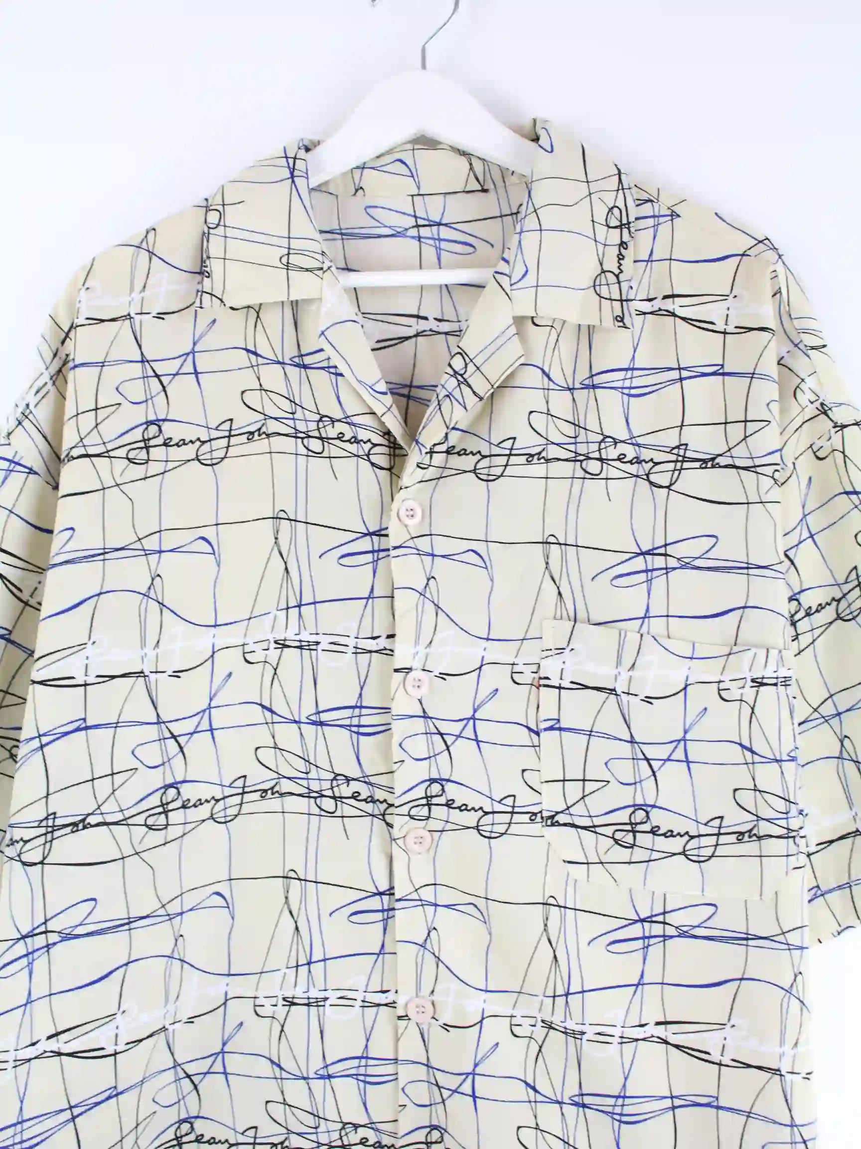 Beigefarbenes Kurzarmhemd der Marke Sean John aus Anfang der 2000'er in Größe XL. Es ist aus Baumwolle produziert und in sehr gutem Zustand vorrätig.