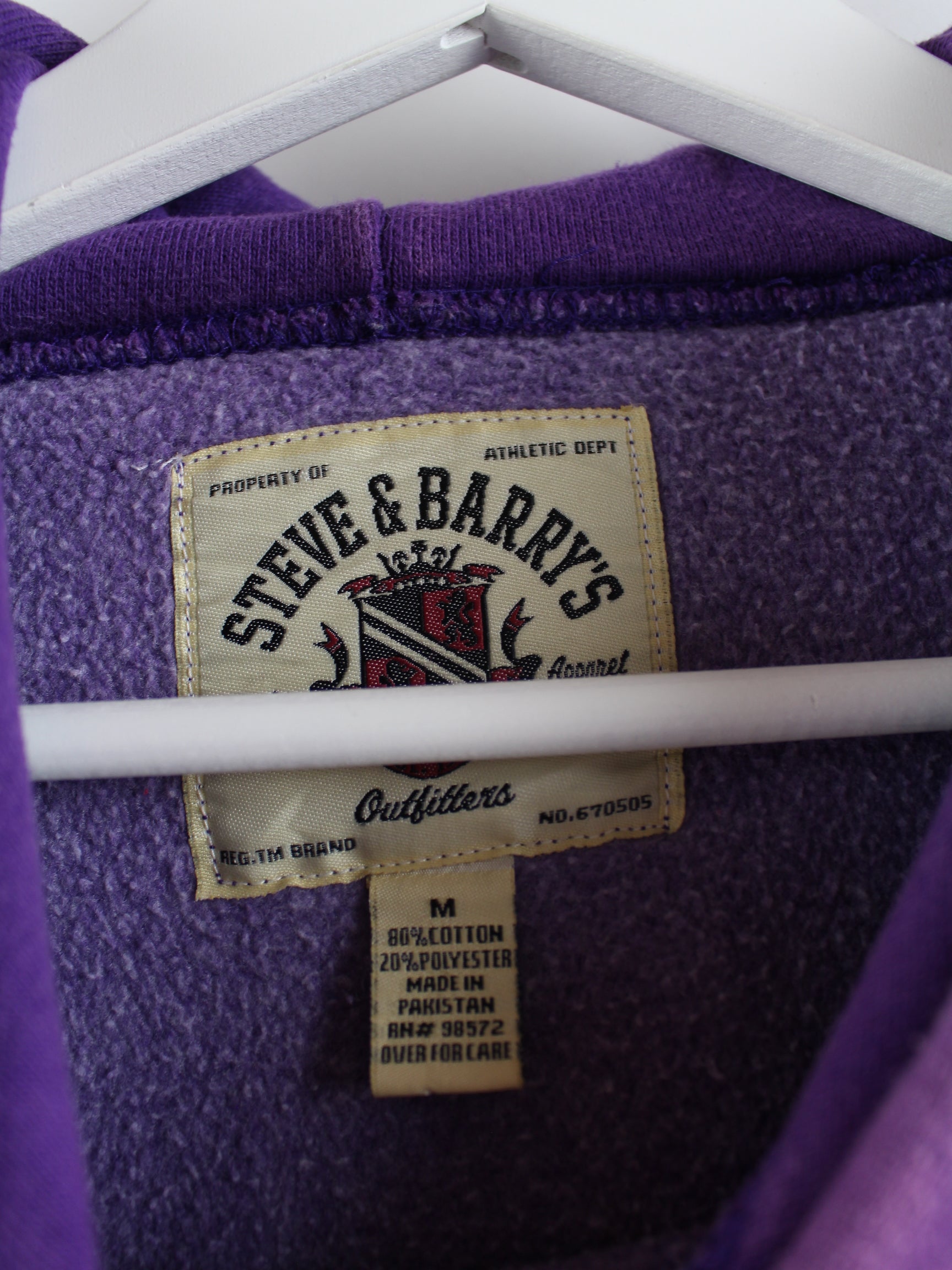 Lilafarbener Hoodie mit gesticktem Logo der Brand Steve & Barry's aus den 90'ern in Größe XXL. Er ist aus einer Baumwollmischung und in sehr gutem Zustand bei uns zu bekommen.