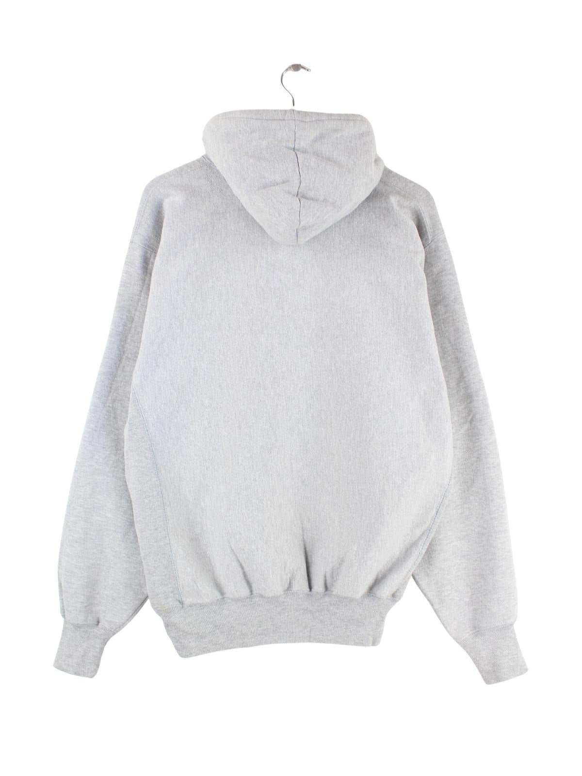 Hoodie vom Brand Steve & Barry's mit gestickten Motiven in Größe L. Er ist aus einer Baumwollmischung hergestellt und in Grau bei uns vorrätig.