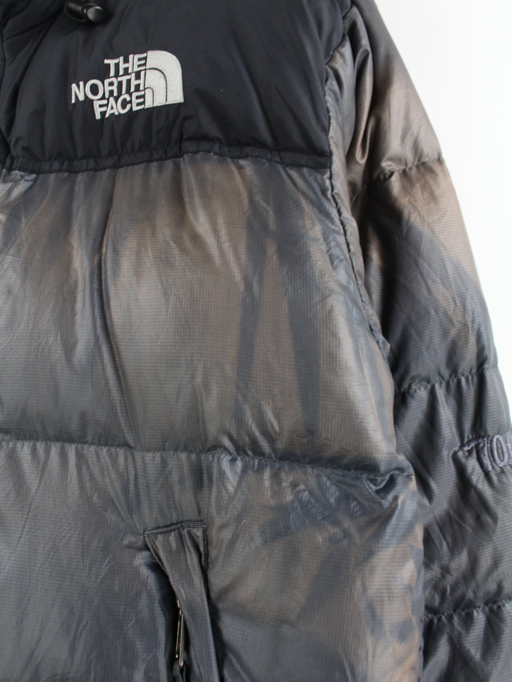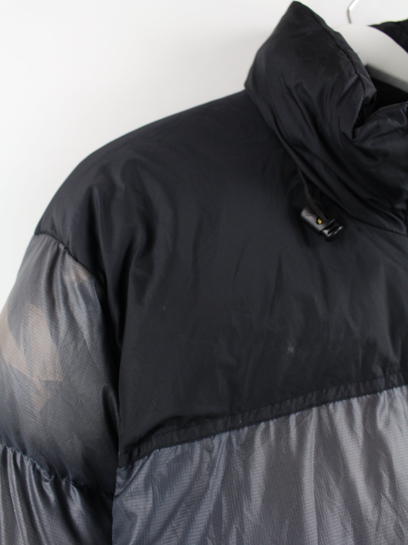 Graue Jacke der Marke The North Face in Größe M. Sie ist aus Synthetik hergestellt. Den Zustand würden wir als 'In Ordnung' bezeichnen (vergl. Bilder).