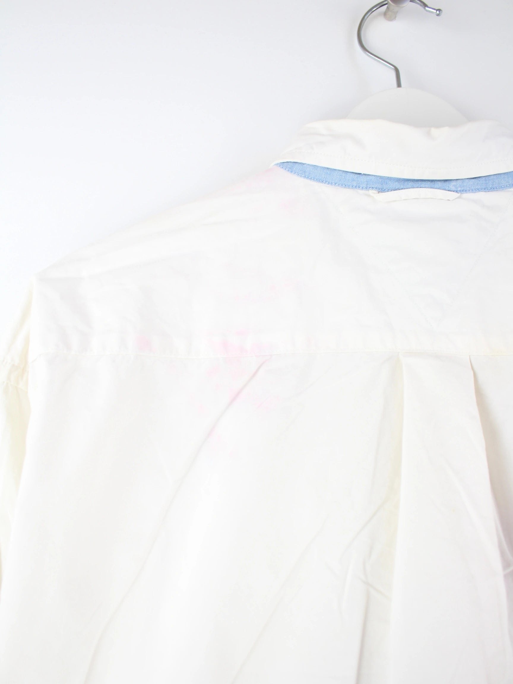 Weißes Freizeit Hemd der Brand Tommy Hilfiger in Größe L. Es ist aus Baumwolle hergestellt. Den Zustand würden wir als 'In Ordnung' bezeichnen (vergl. Bilder).