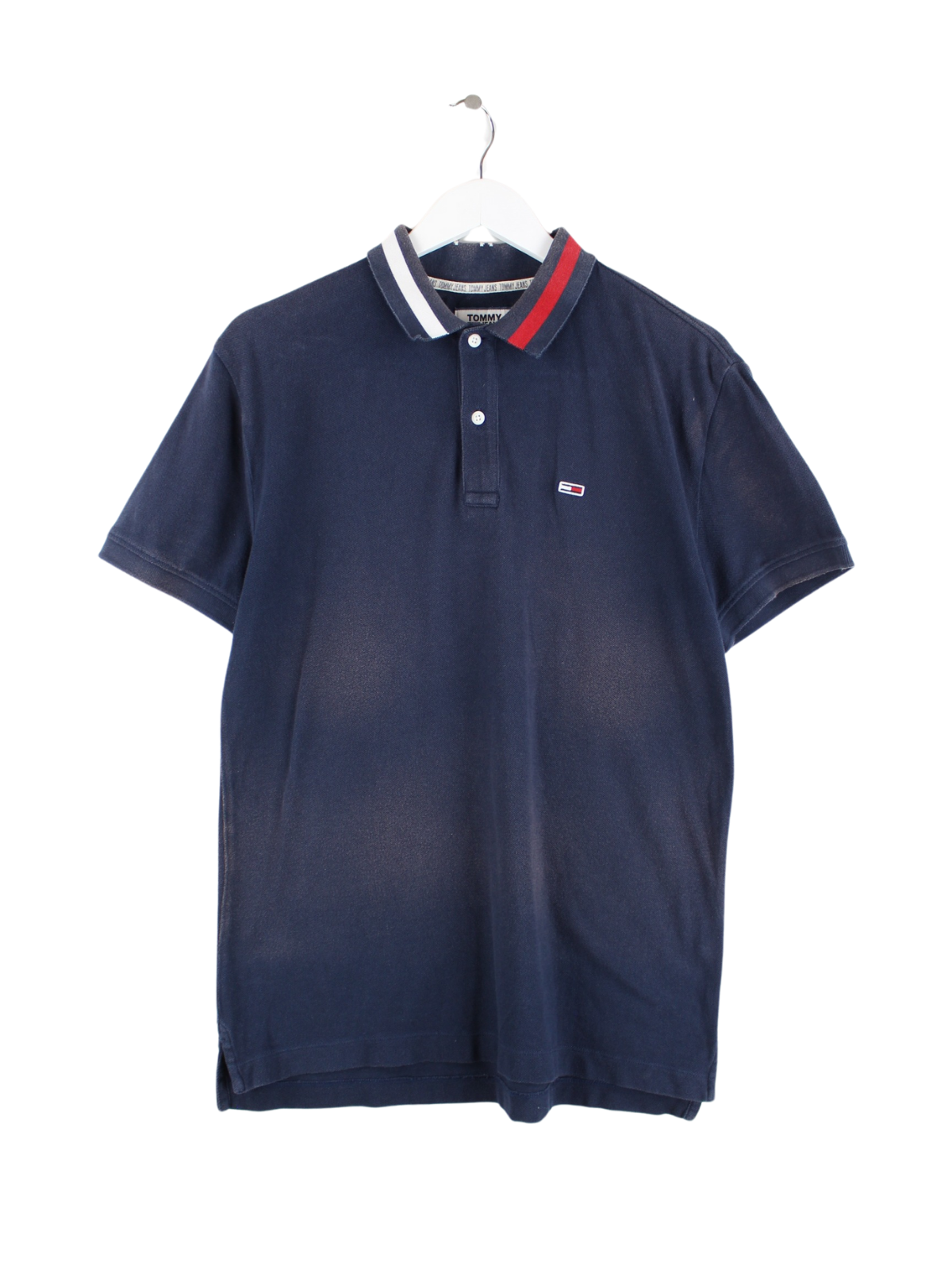 Poloshirt vom Label Tommy Hilfiger in Größe S. Es ist aus Baumwolle angefertigt und in Blau lieferbar.