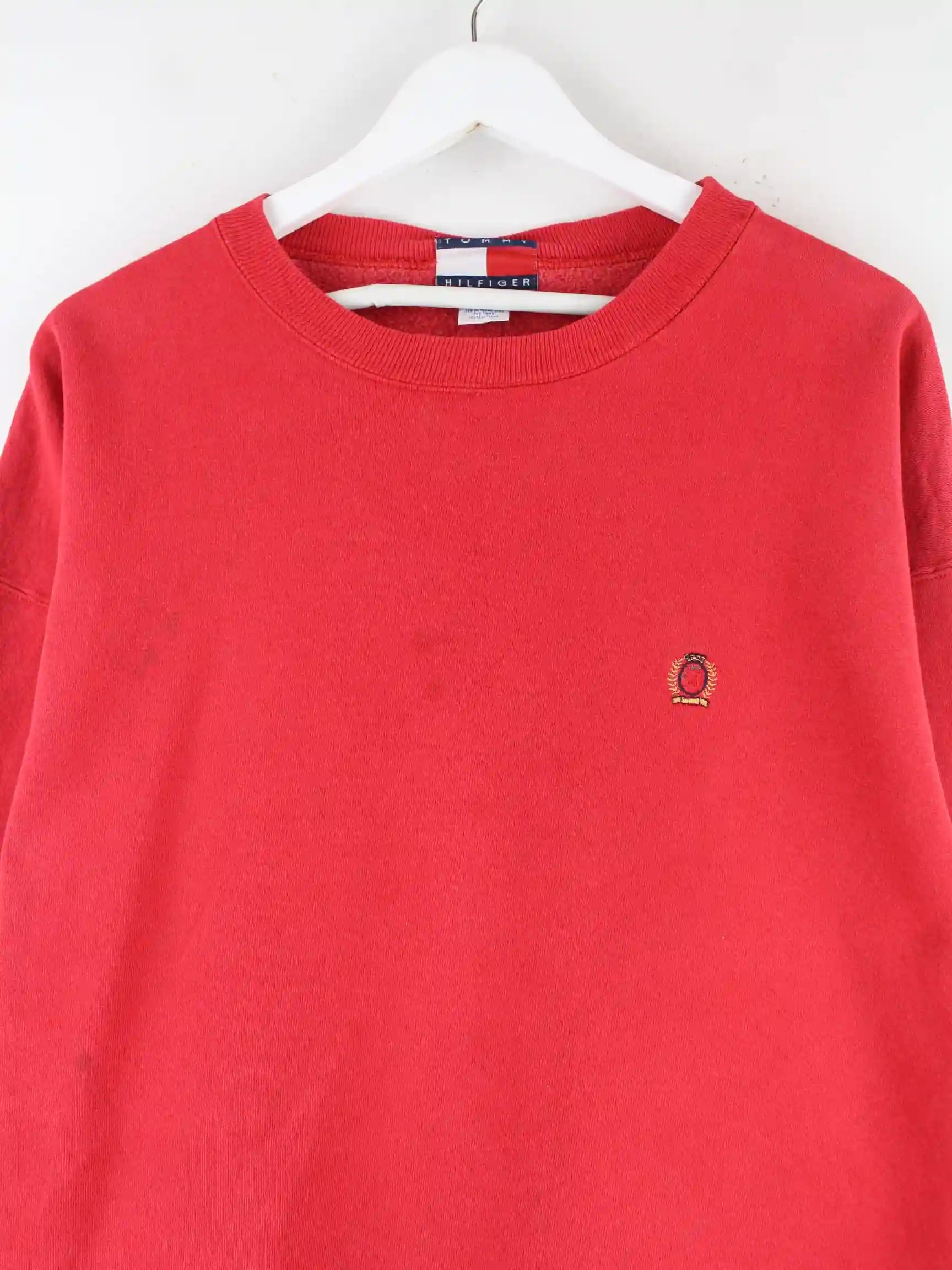 Roter Sweater der Marke Tommy Hilfiger aus den 90'ern in Größe XXL. Er ist aus einer Baumwollmischung produziert. Den Zustand würden wir als 'In Ordnung' bezeichnen (vergl. Bilder).