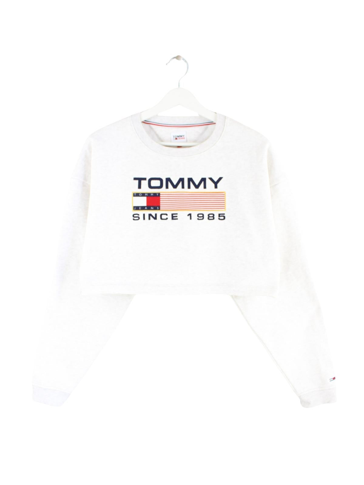 Tommy Hilfiger Damen Embroidered Crop Sweater Grau M