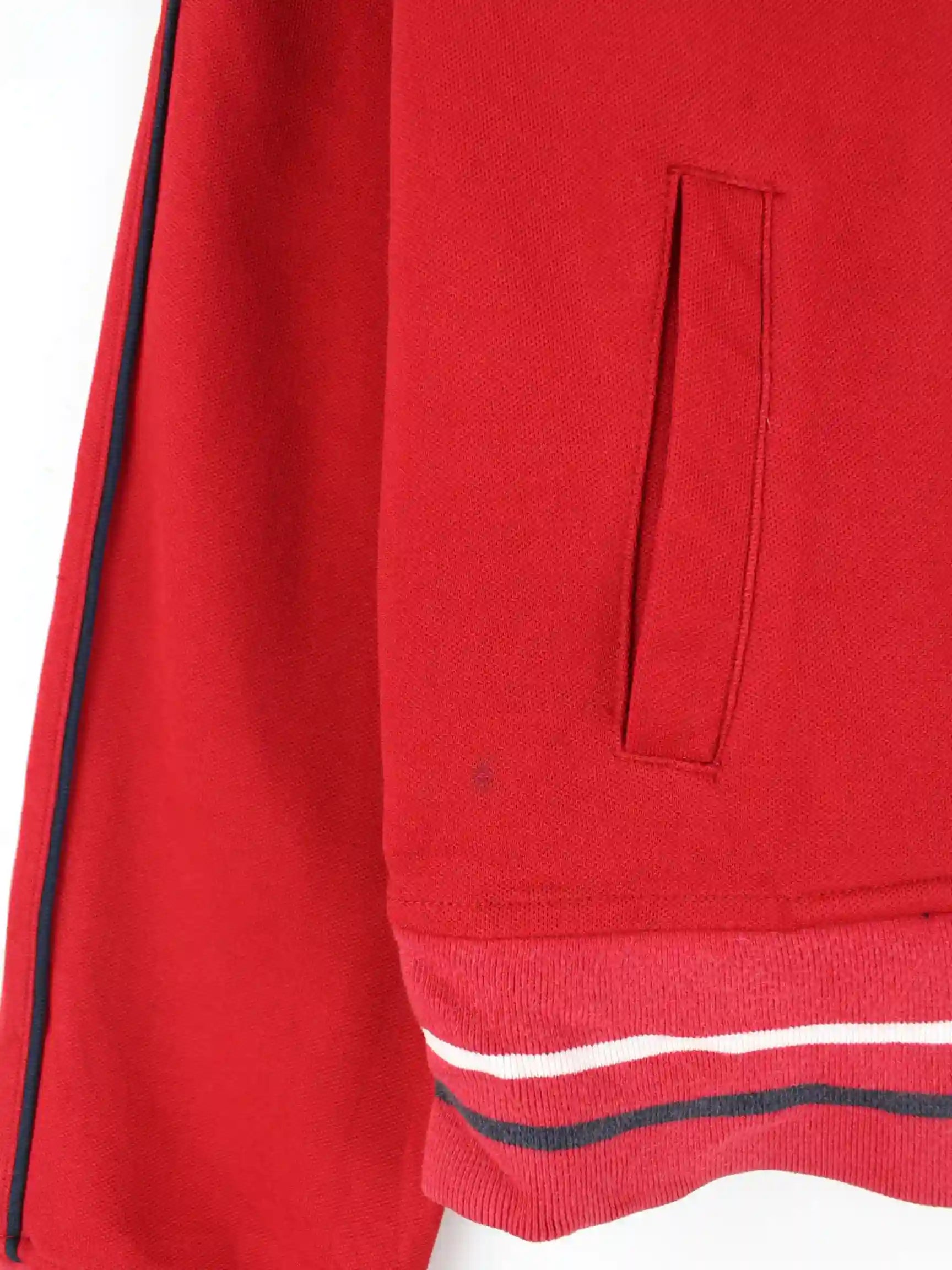 Rote Trainingsjacke mit gesticktem Logo der Brand Tommy Hilfiger in Größe M. Sie ist aus Synthetik angefertigt. Den Zustand würden wir als 'In Ordnung' bezeichnen (vergl. Bilder).