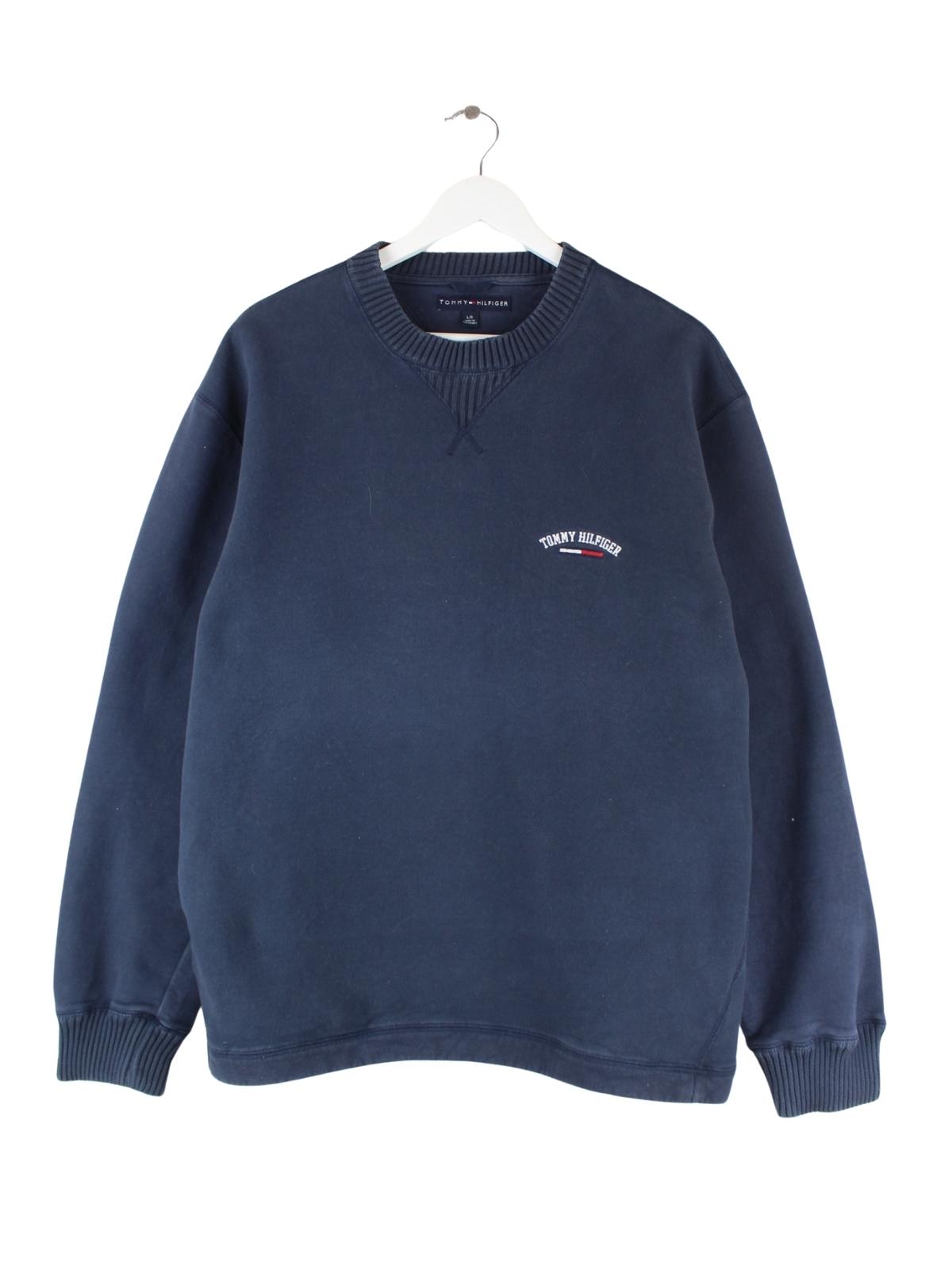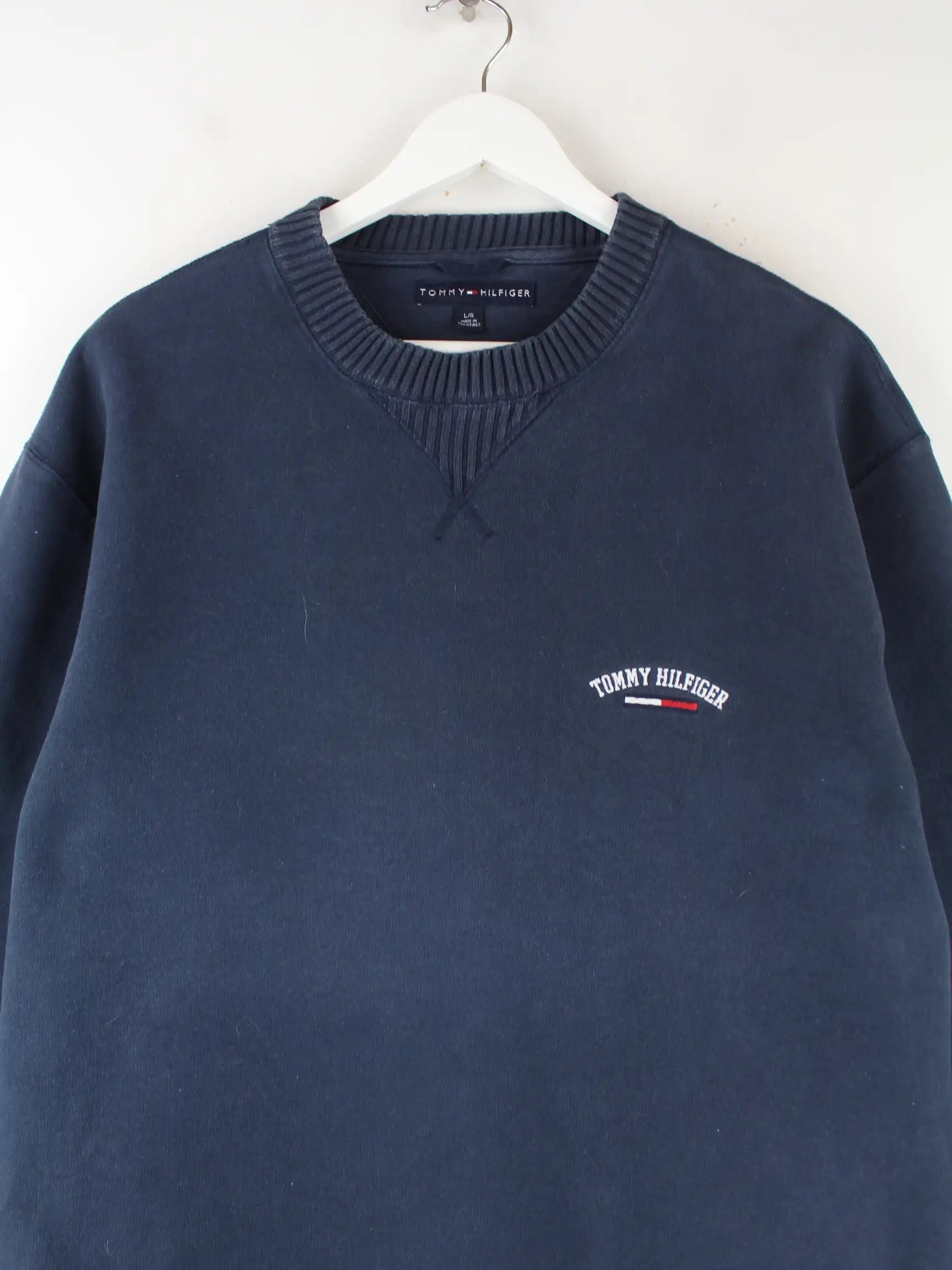 Blauer Sweater der Brand Tommy Hilfiger in Größe L. Er ist aus einer Baumwollmischung gemacht und in gutem Zustand in Stock.