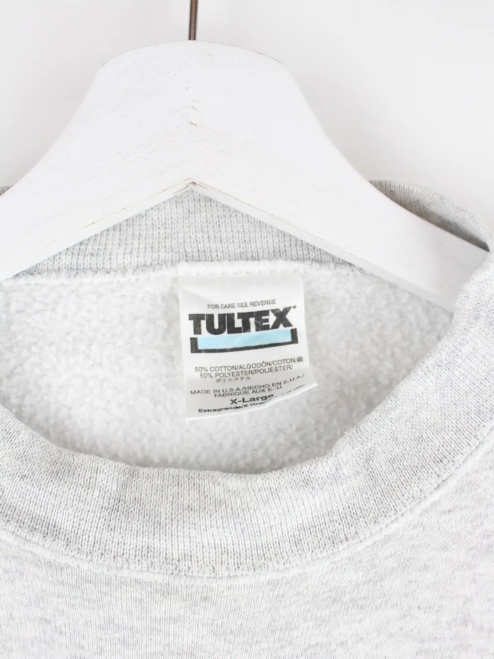 Sweater der Marke Tultex in Größe XL aus den 90'ern. Er ist aus einer Baumwollmischung hergestellt und in Grau vorrätig.