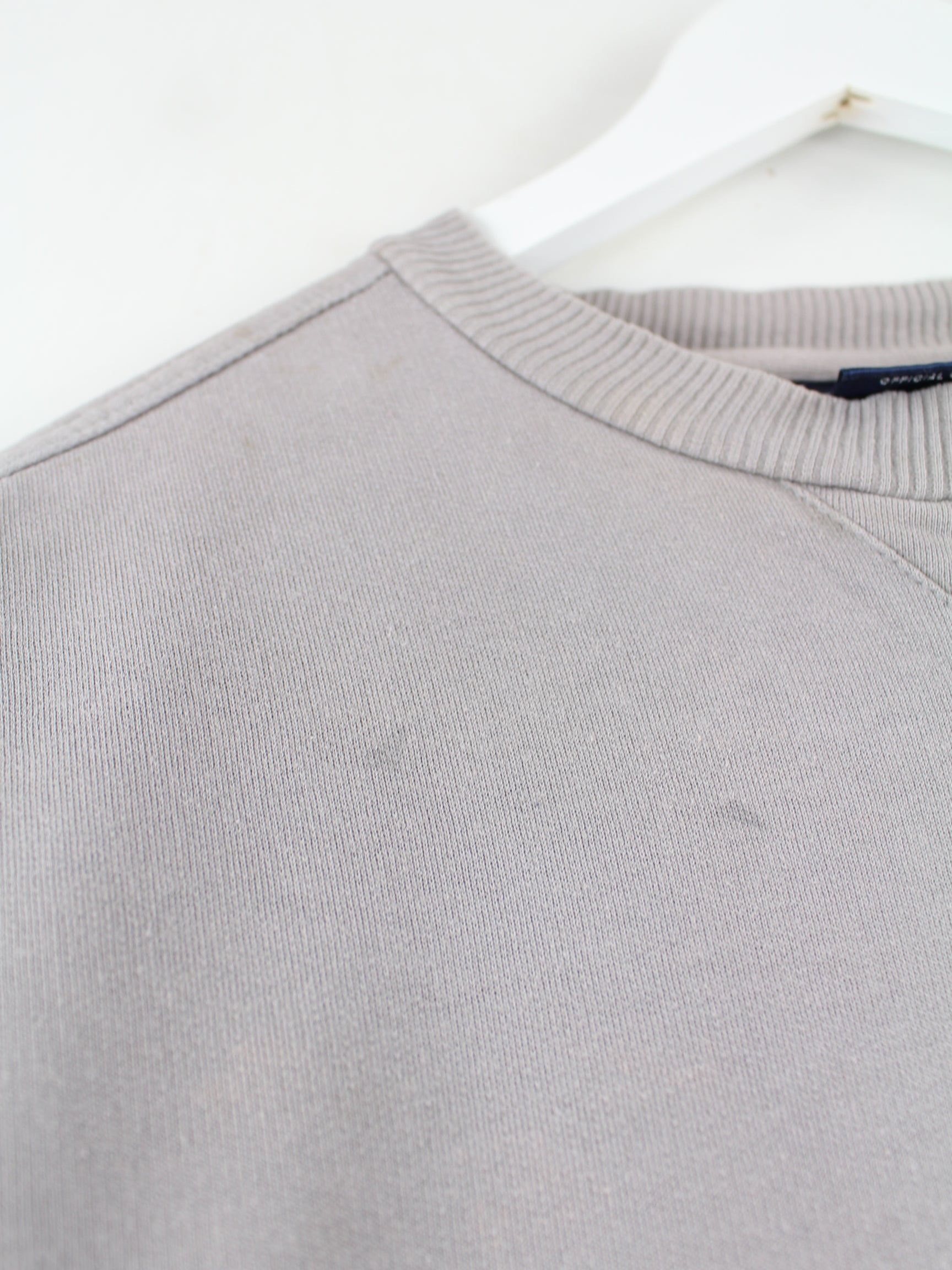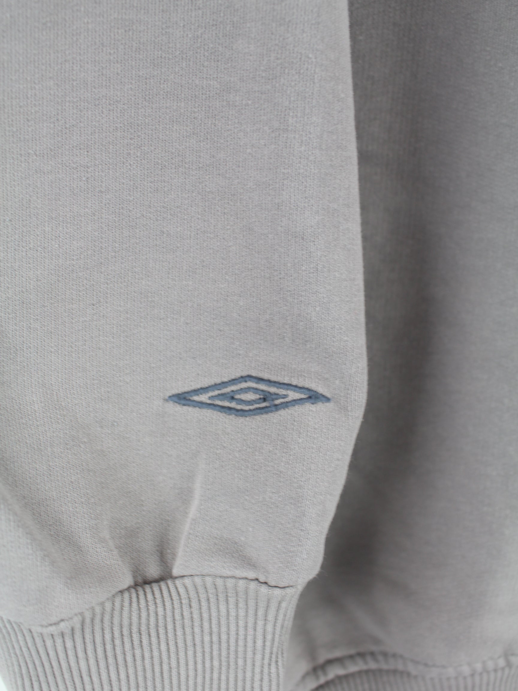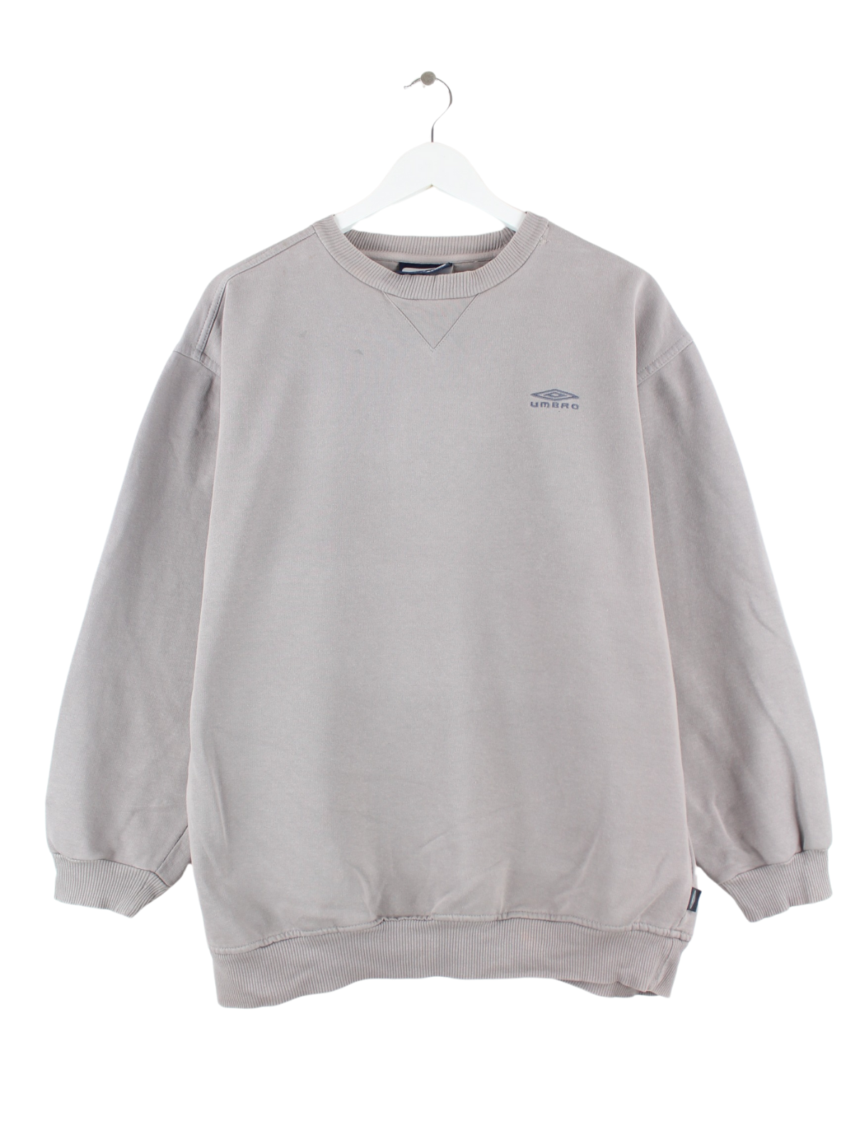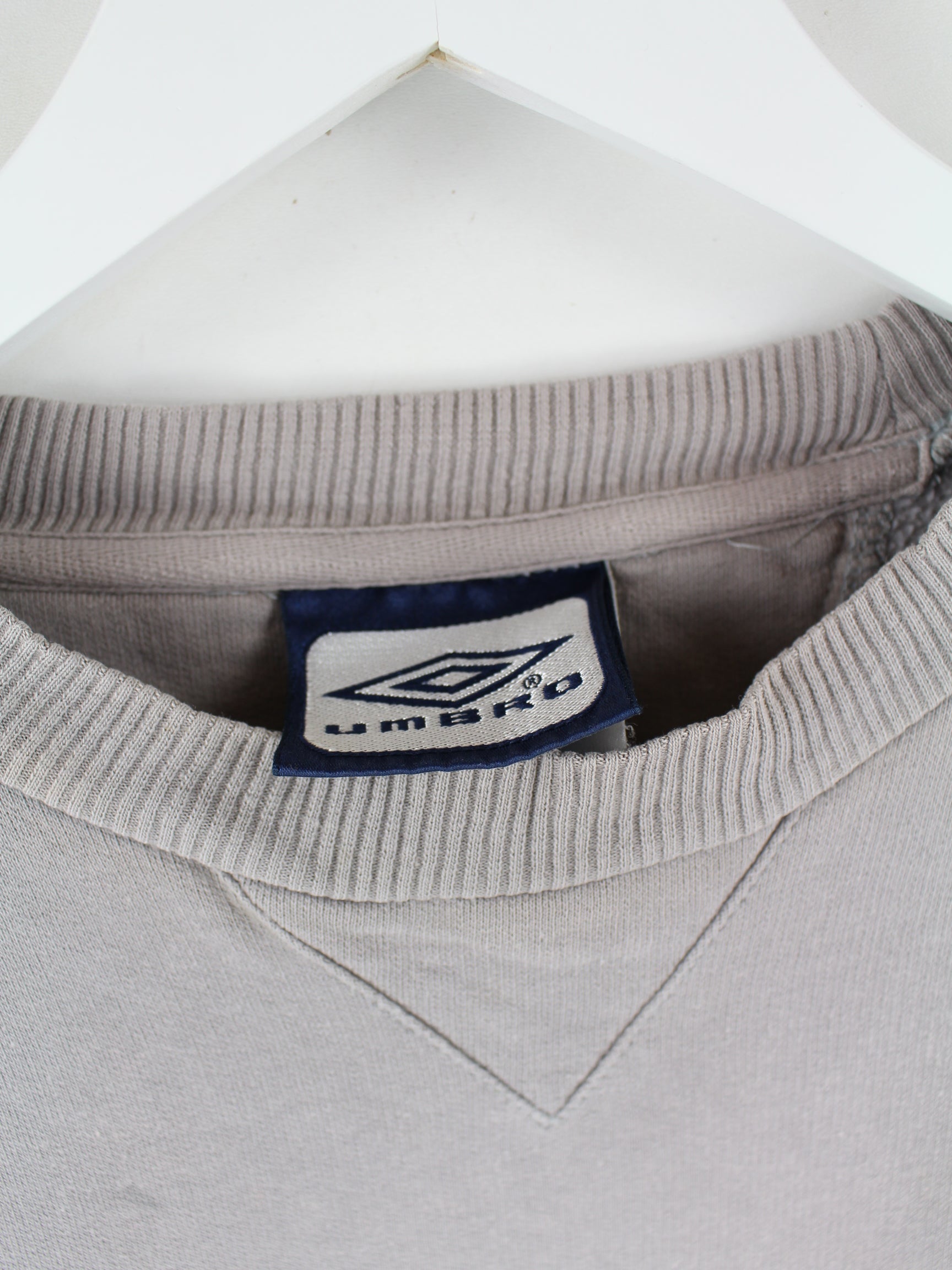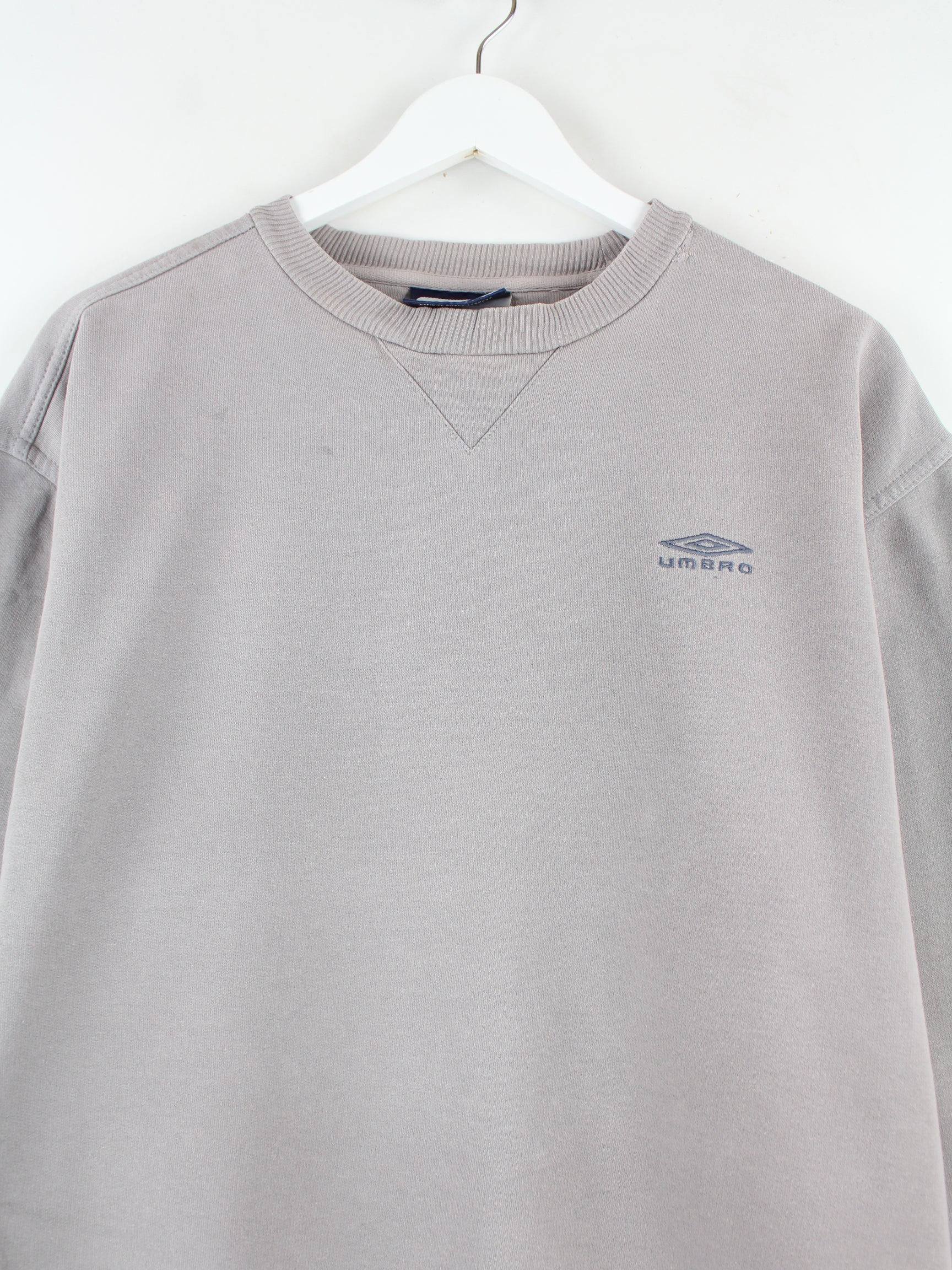 Sweater der Brand Umbro in Größe L aus den 90'ern. Er ist aus einer Baumwollmischung gefertigt und in Grau bei uns zu bekommen.