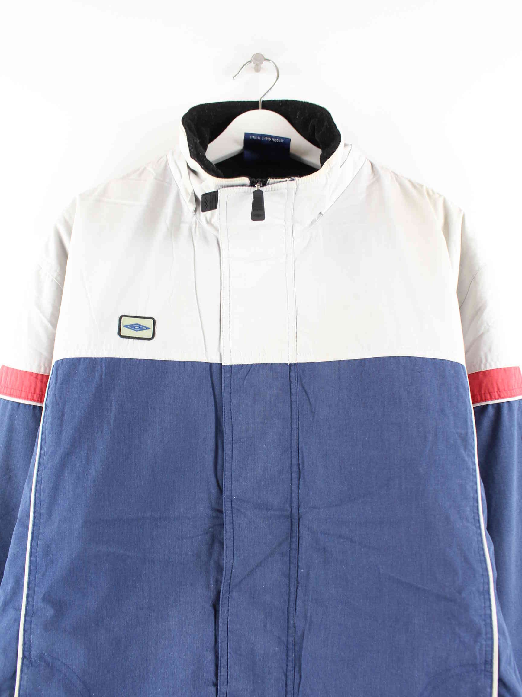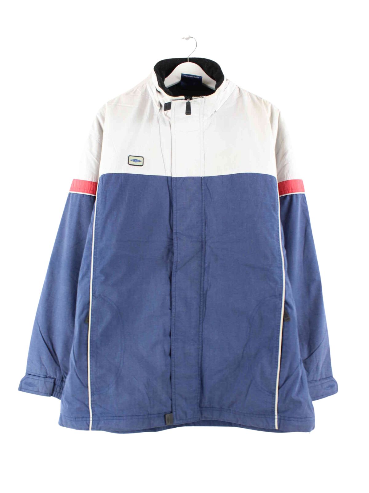 Blaue Jacke der Marke Umbro aus den 90'ern in Größe XL. Sie ist aus Synthetik und in gutem Zustand bei uns zu bekommen.