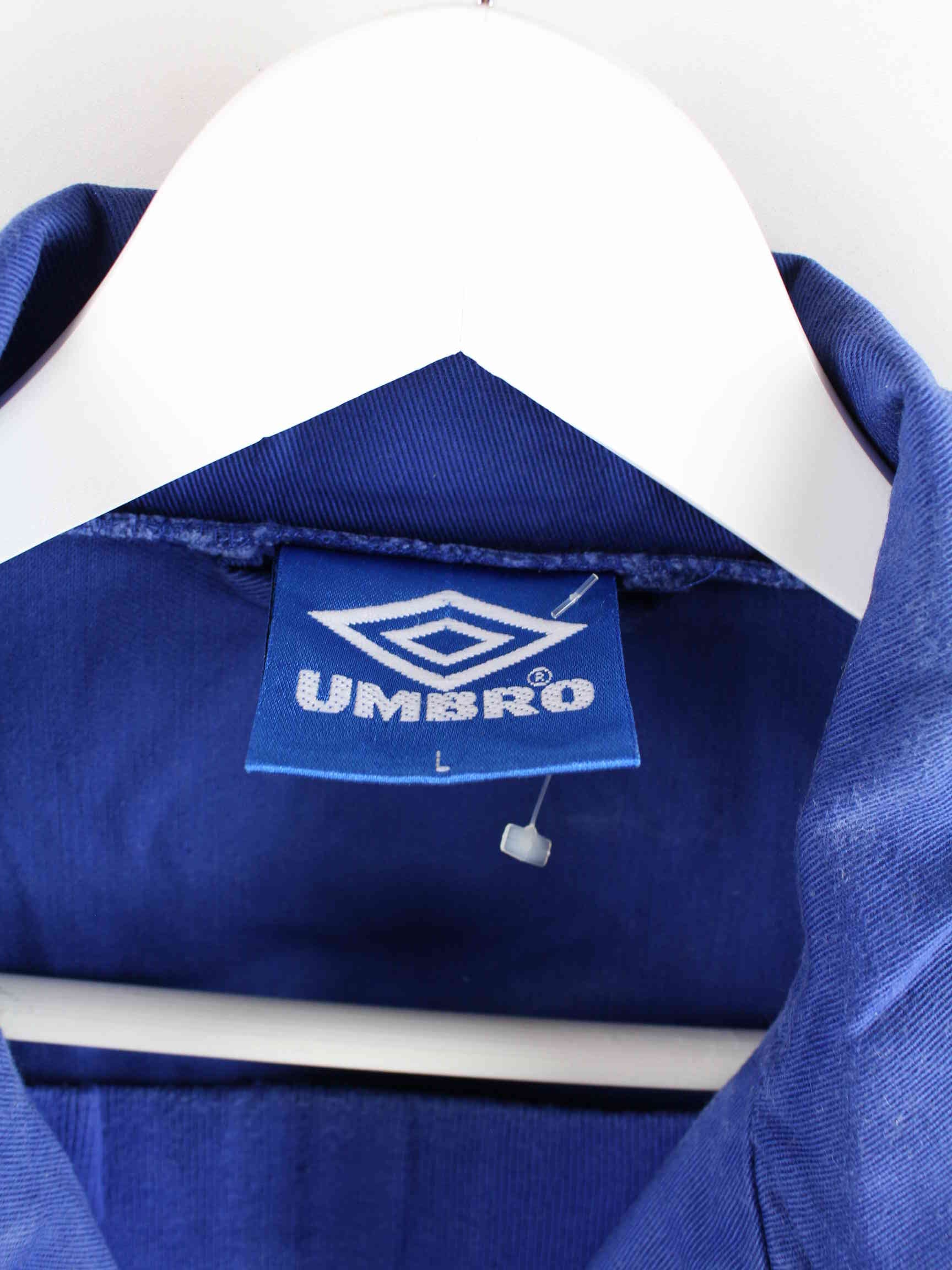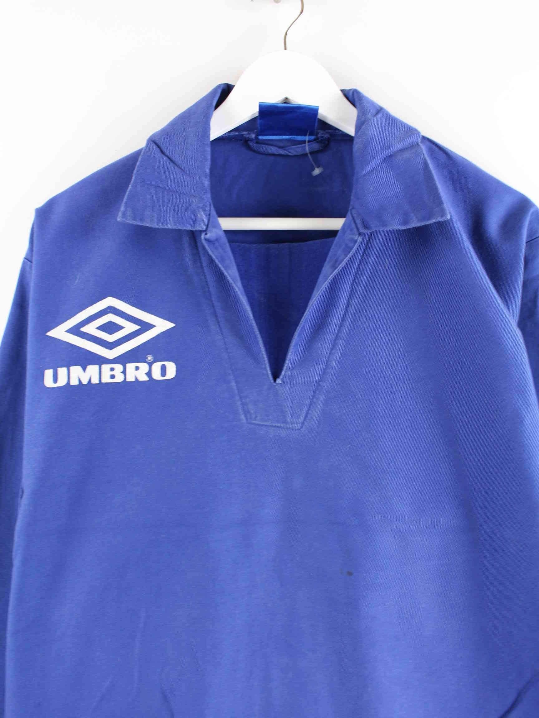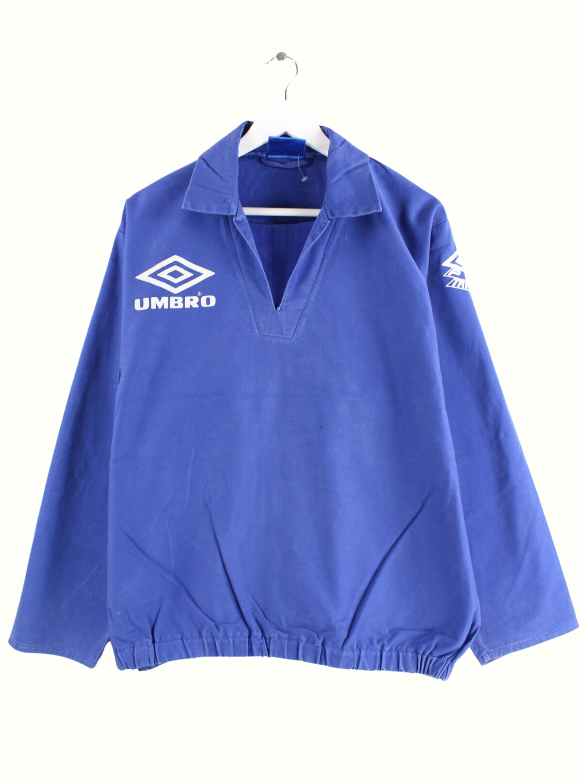Sweater der Brand Umbro in Größe L aus den 90'ern. Er ist aus einer Baumwollmischung und in Blau im Angebot. Mit tollem Vintage Print.