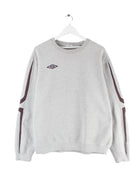 Grauer Sweater aus dem Hause Umbro in Größe L. Er ist aus einer Baumwollmischung gemacht und in sehr gutem Zustand bei uns vorrätig.