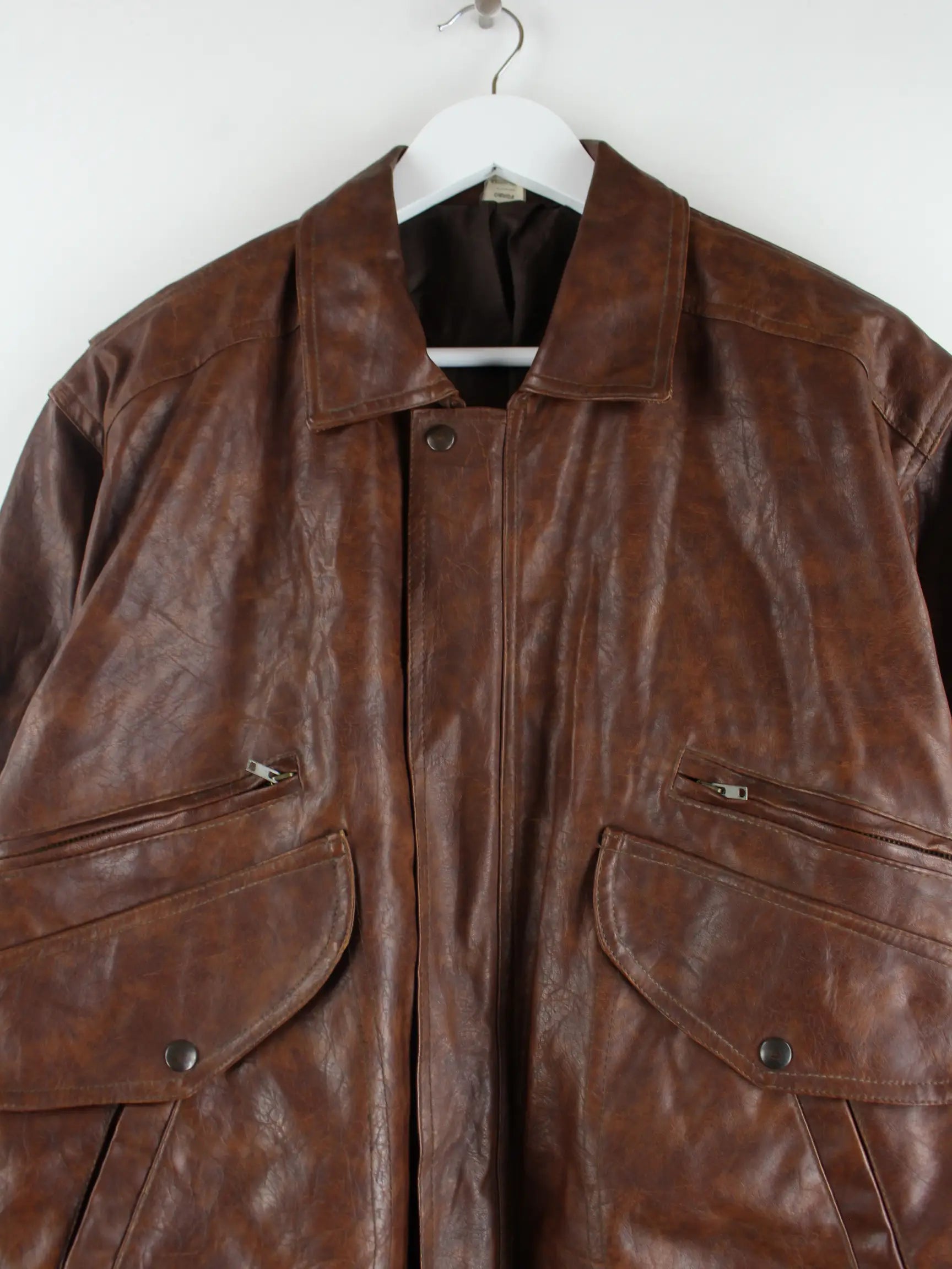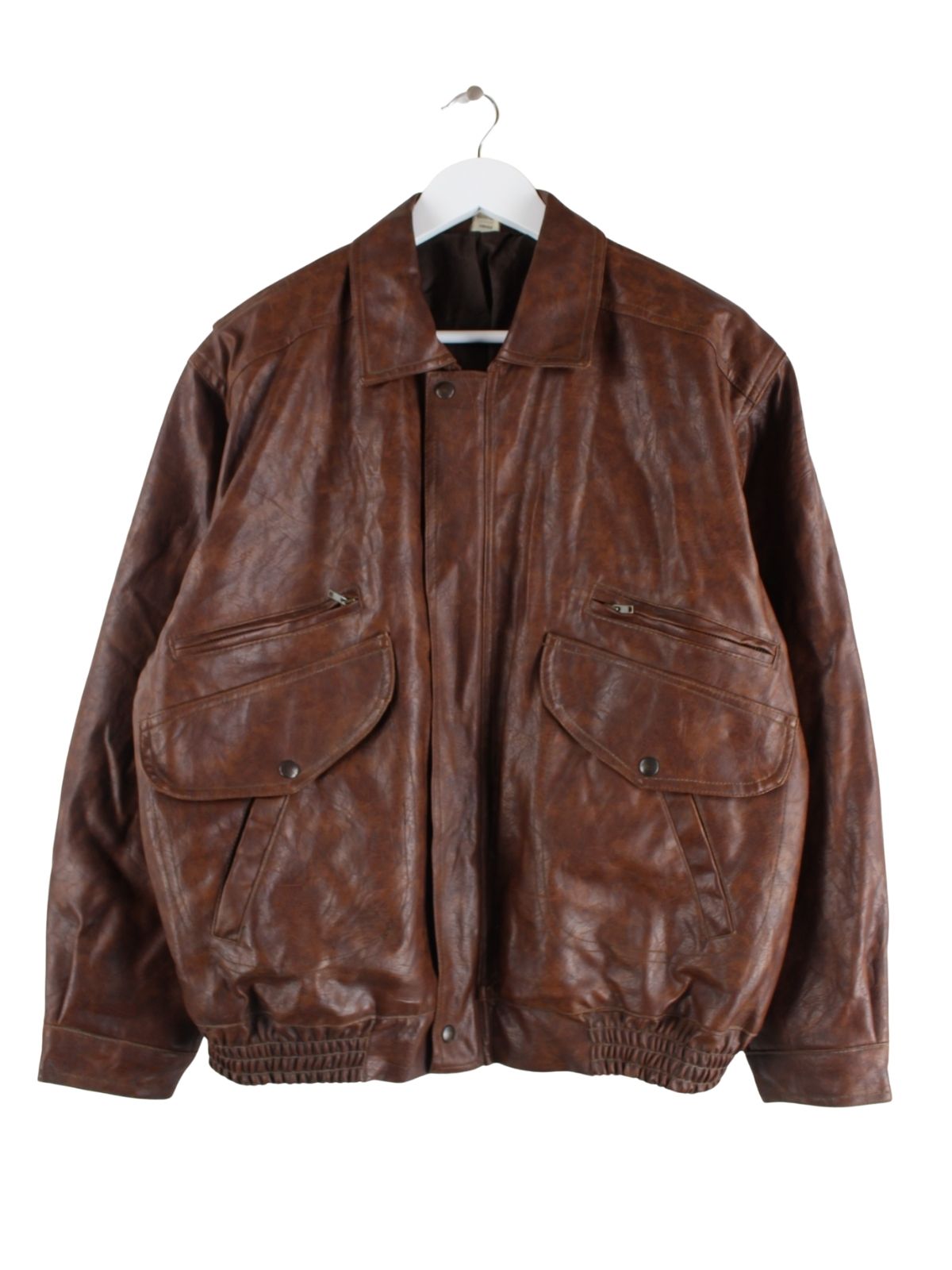 Vintage Jacke in Größe M. Sie ist aus Leder und in Braun zu bekommen.