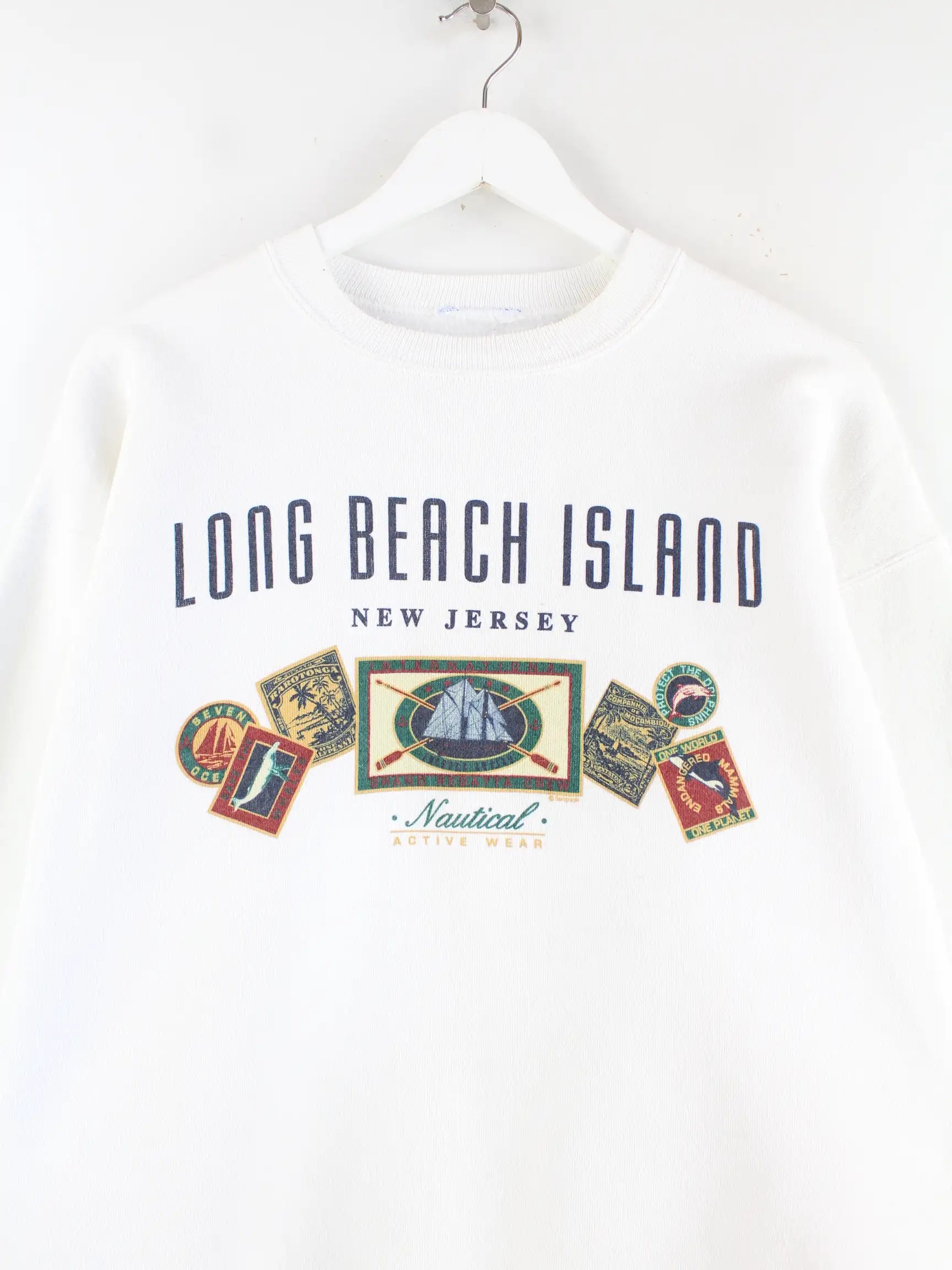 Vintage 00s Long Beach Island Print Sweater Weiß M