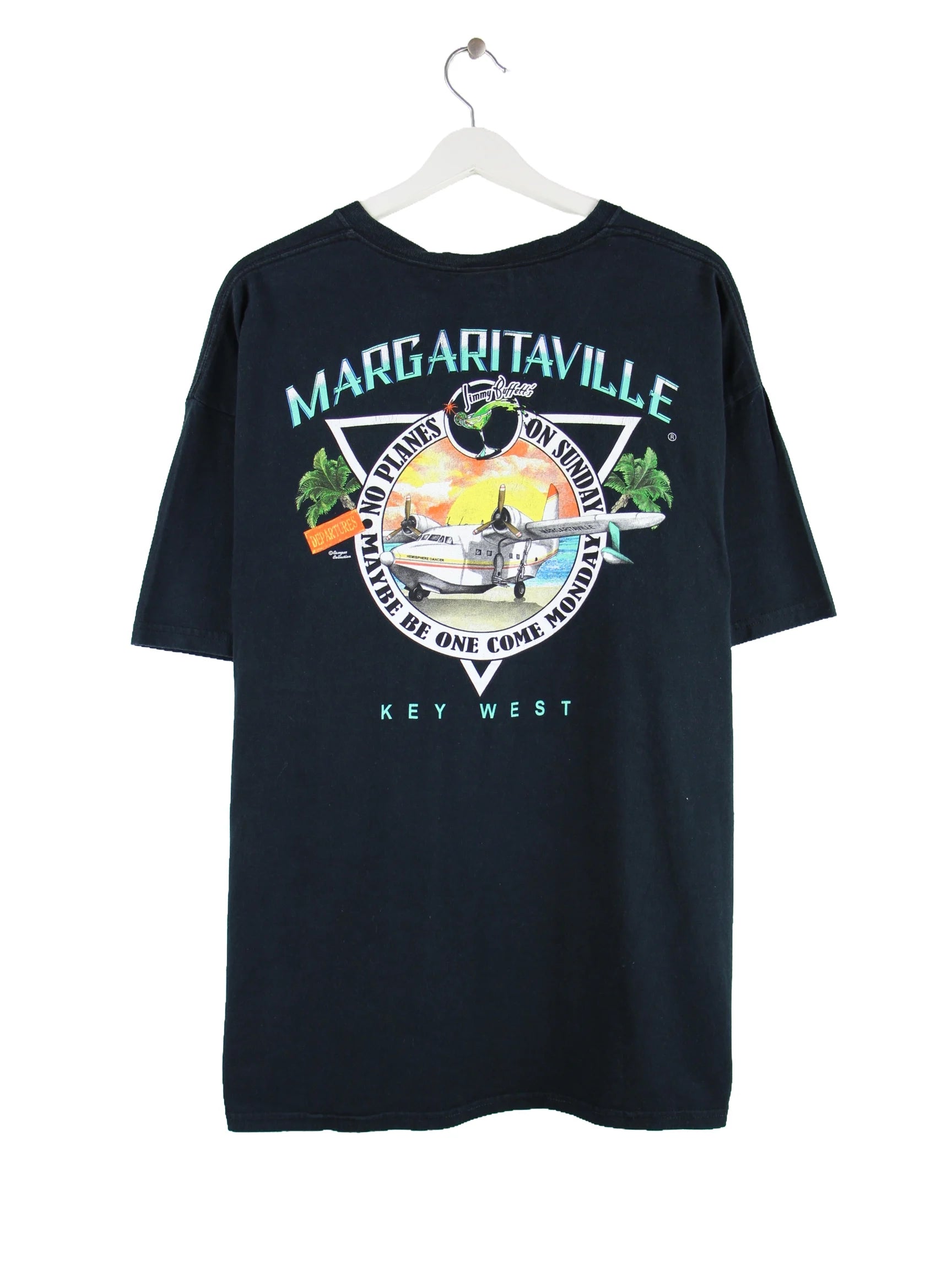 Vintage 00s Margaritaville Print T-Shirt Schwarz XL