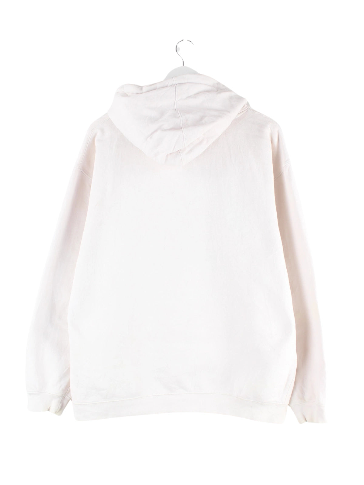 Vintage Hoodie mit Stickereien in Größe L. Er ist aus einer Baumwollmischung produziert und in Weiß bei uns zu bekommen.