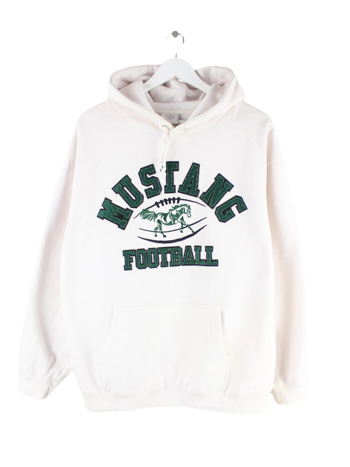 Vintage 00s Mustang Football Embroidered Hoodie Weiß L