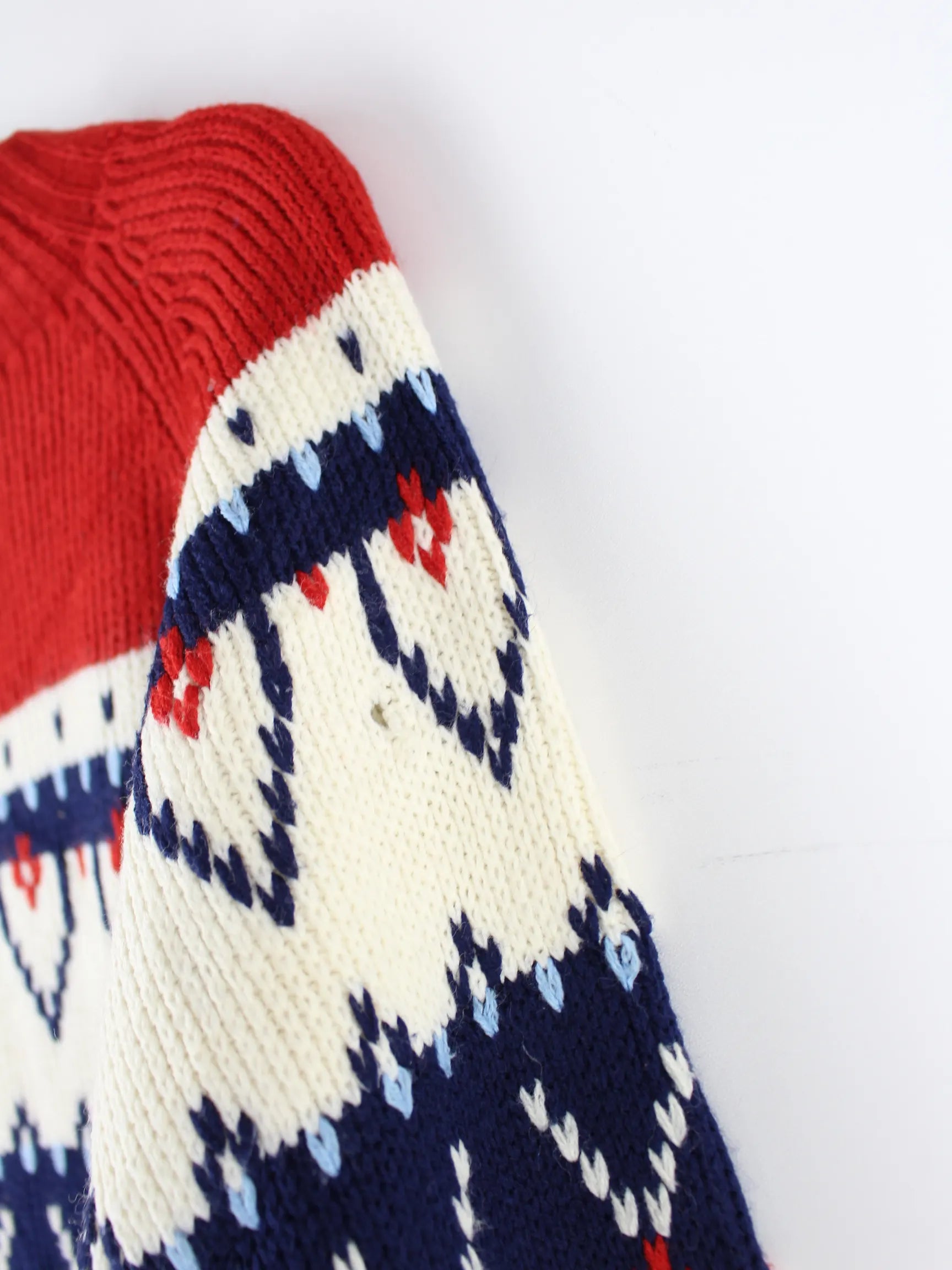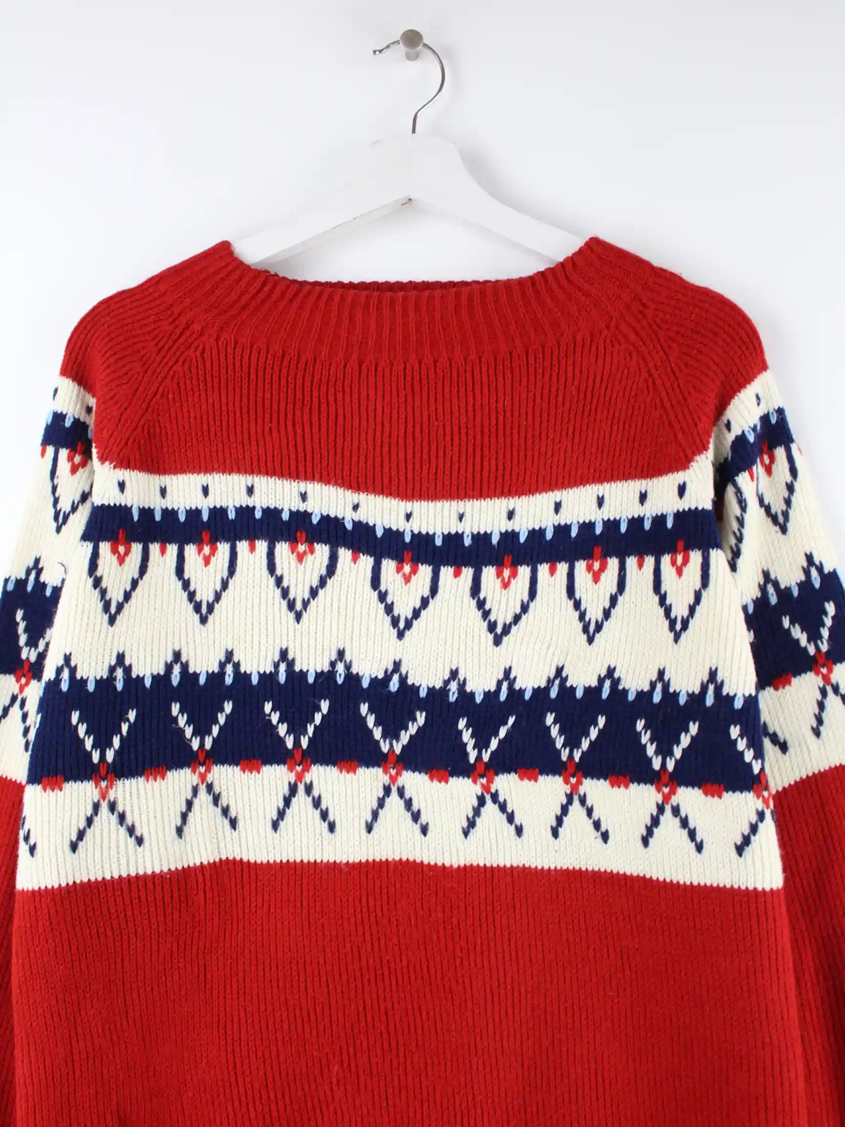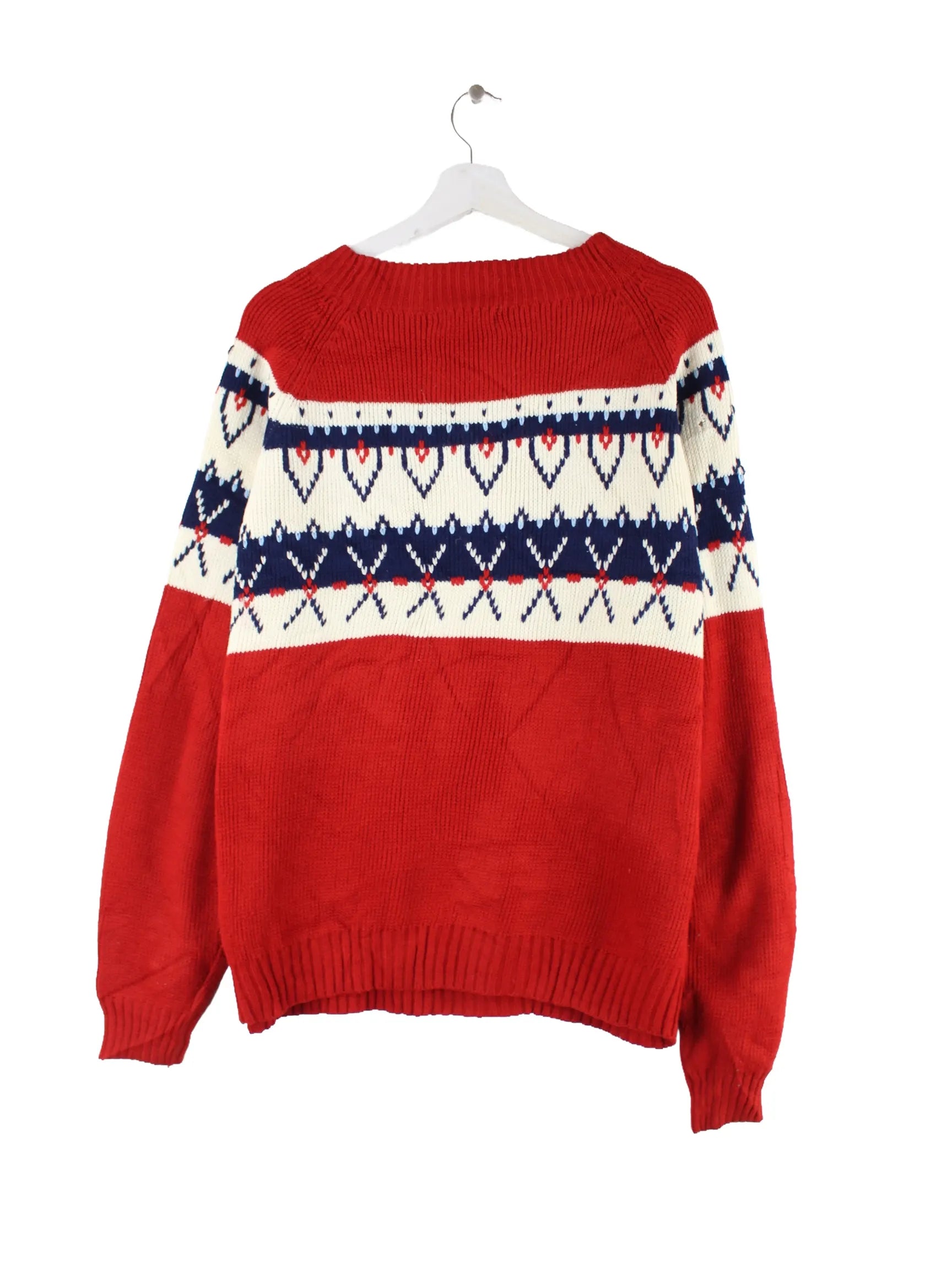 Vintage Pullover in Größe L. Er ist aus Acryl gefertigt und in Rot zu haben.