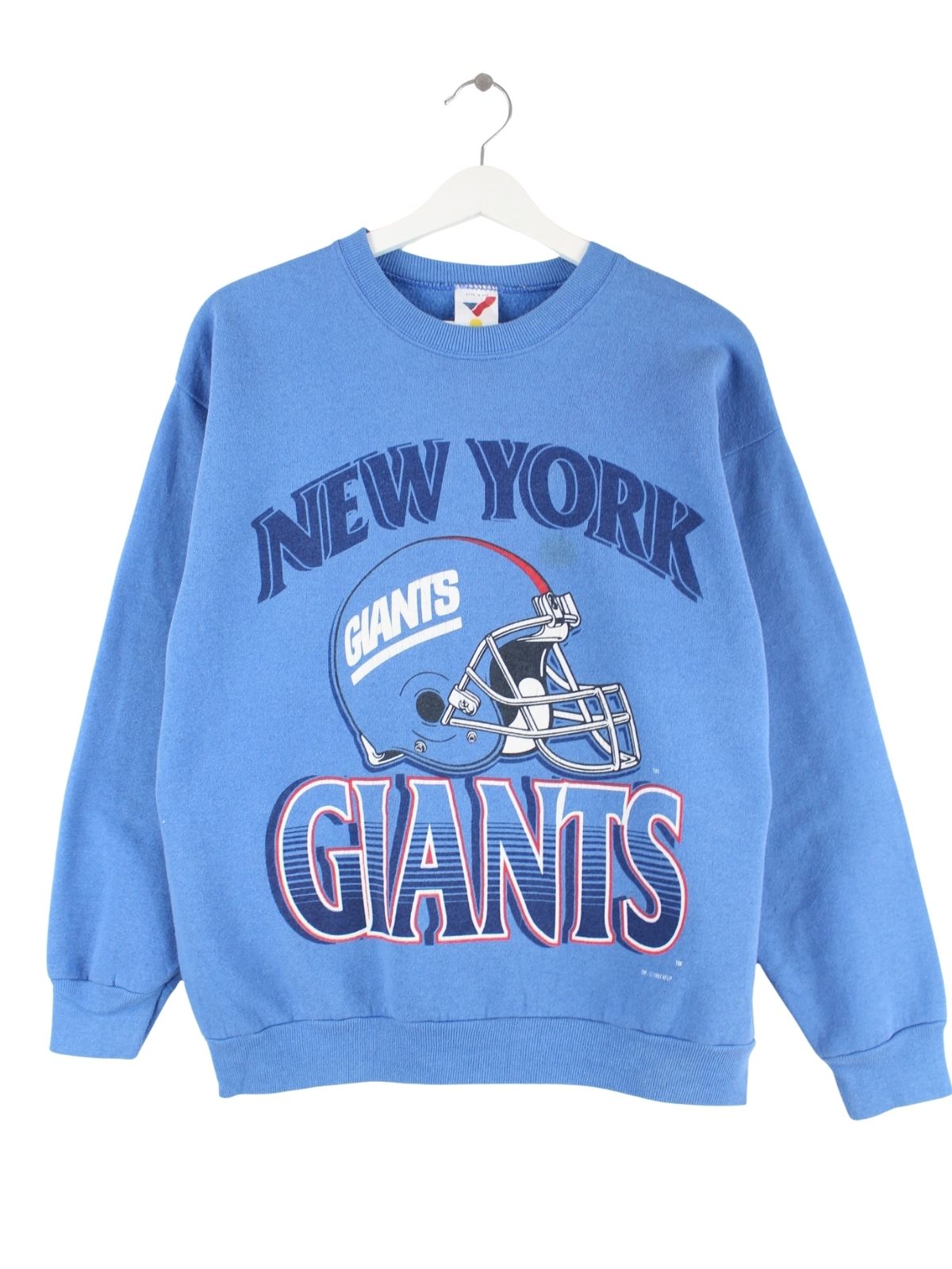 Blauer Vintage Sweater in Größe M. Er ist aus einer Baumwollmischung angefertigt. Den Zustand würden wir als 'In Ordnung' bezeichnen (vergl. Bilder).Mit chiquem Giants Print.