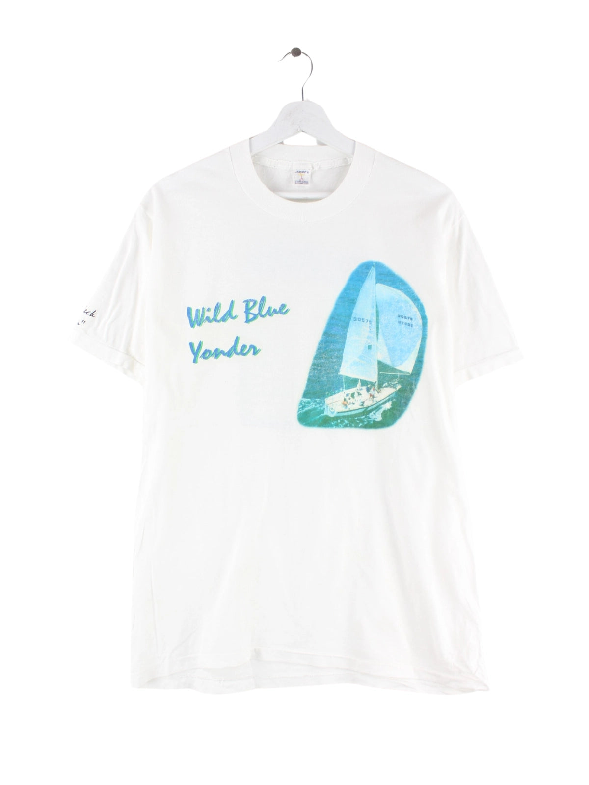 Vintage 1997 Sailing Print Single Stitch T-Shirt Weiß L
