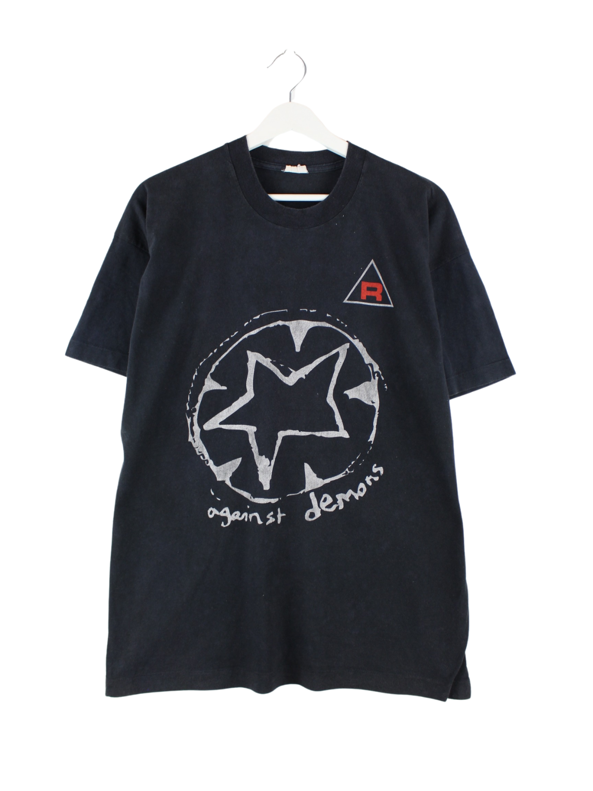Schwarzes Vintage T-Shirt in Größe L. Es ist aus Baumwolle und in gutem Zustand bei uns vorrätig. Mit schickem Radioheads Print.