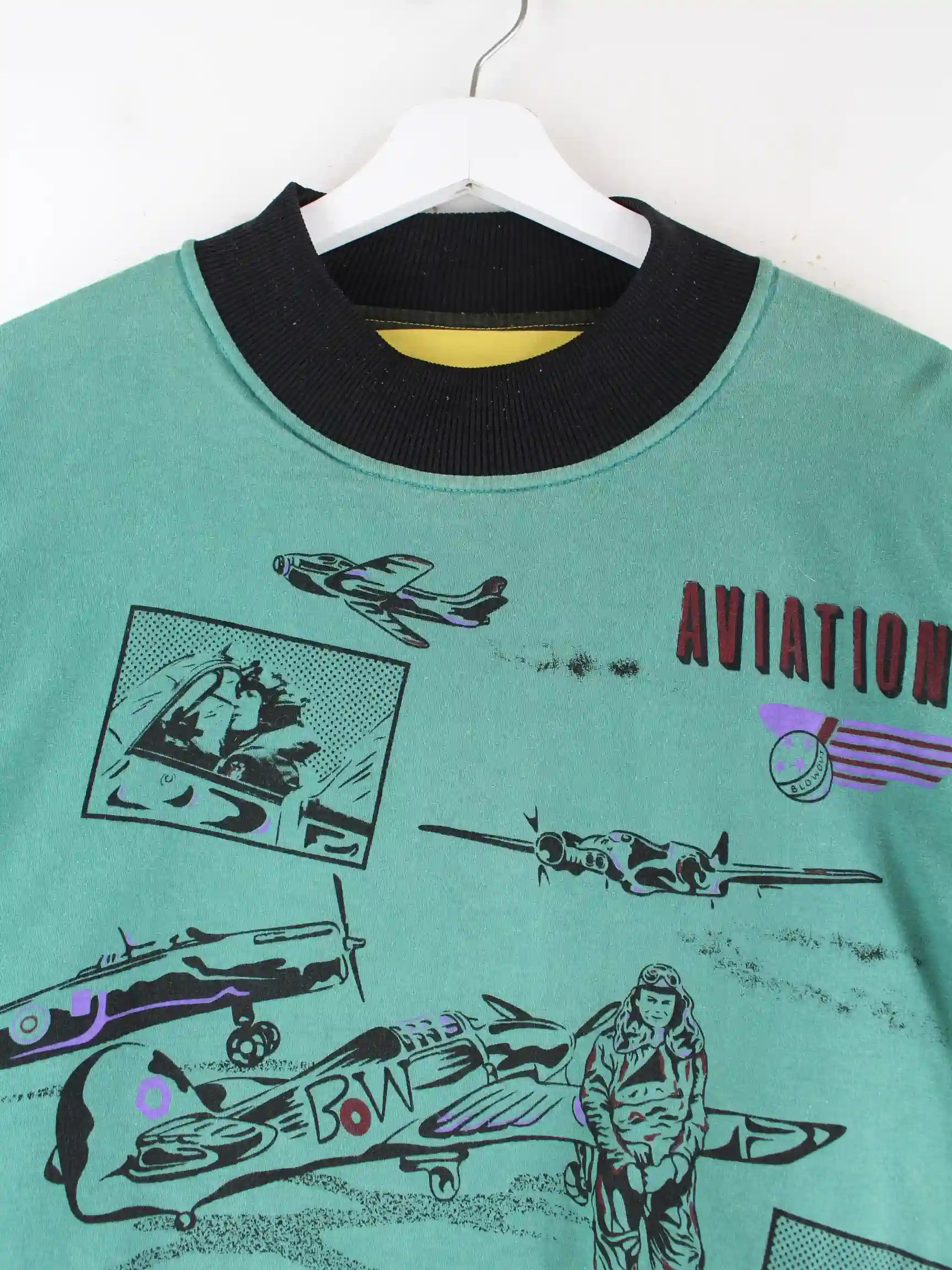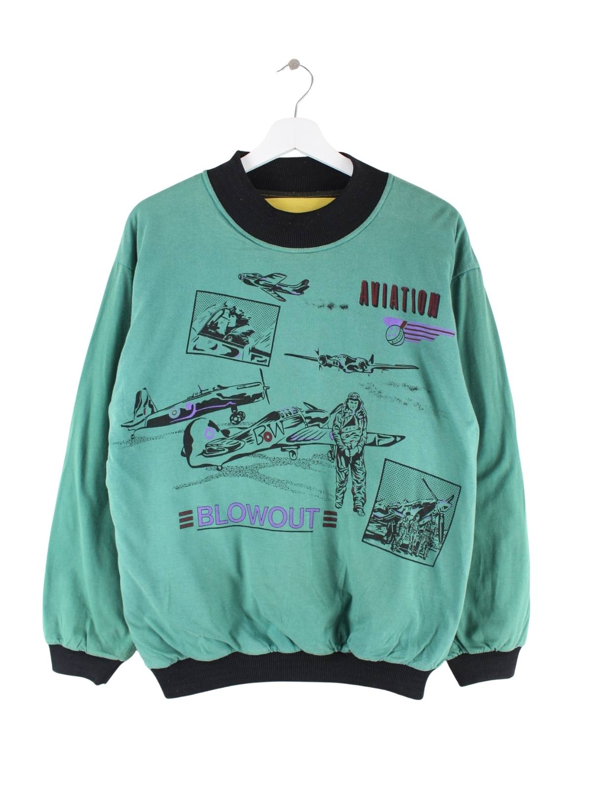 Vintage 80s Blowout Aviation Reversible Military Sweater Grün S