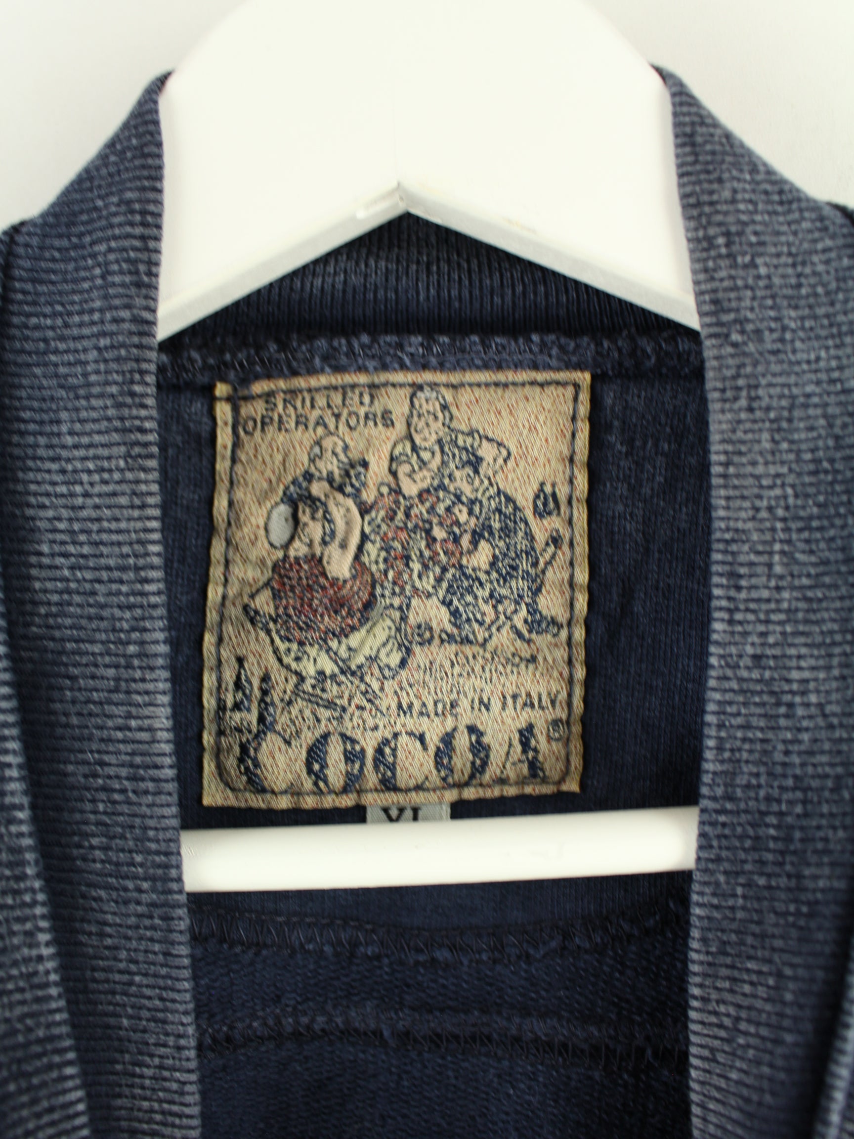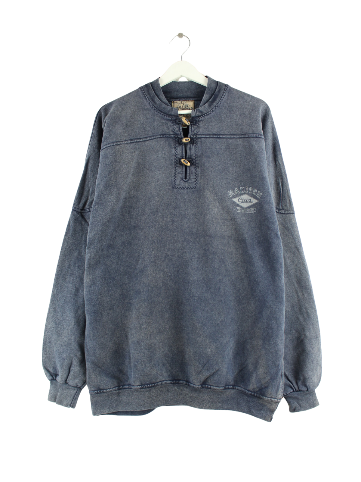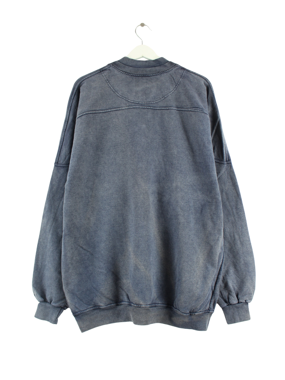 Vintage 80s Cocoa Print Used Look Sweater Blau XXL