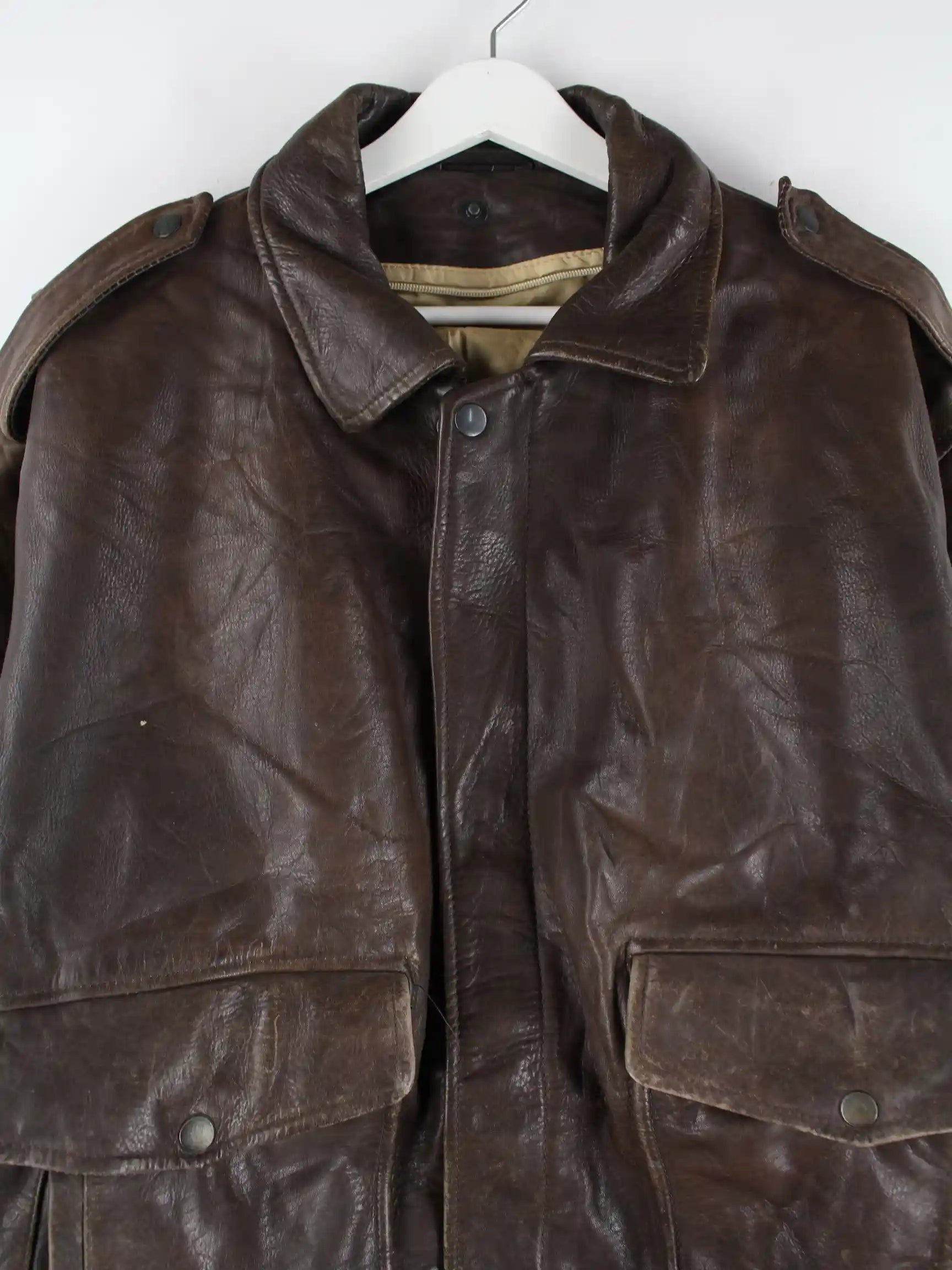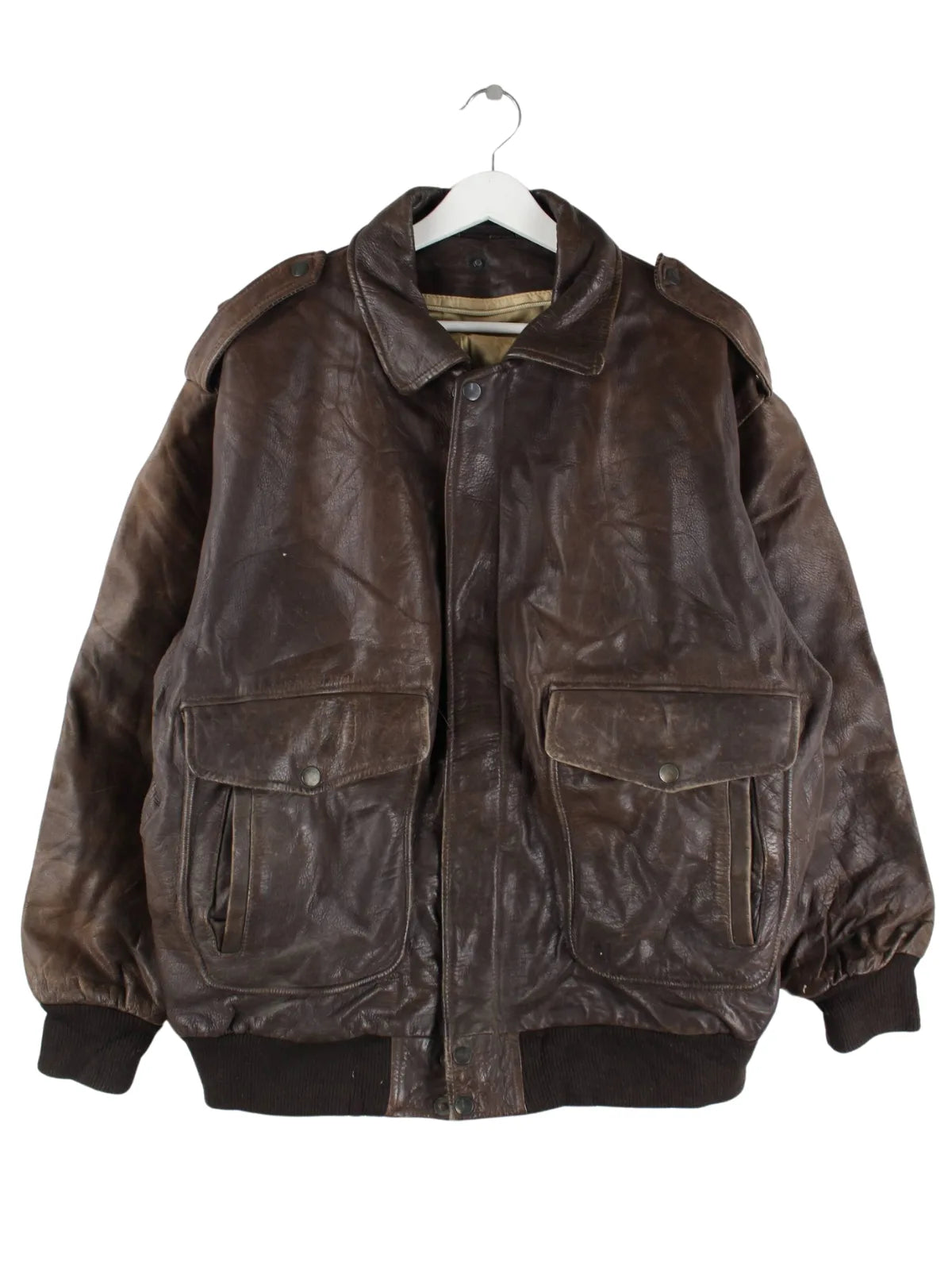 Vintage Jacke in Größe XL aus den 80'ern. Sie ist aus Leder produziert und in Braun zu bekommen.