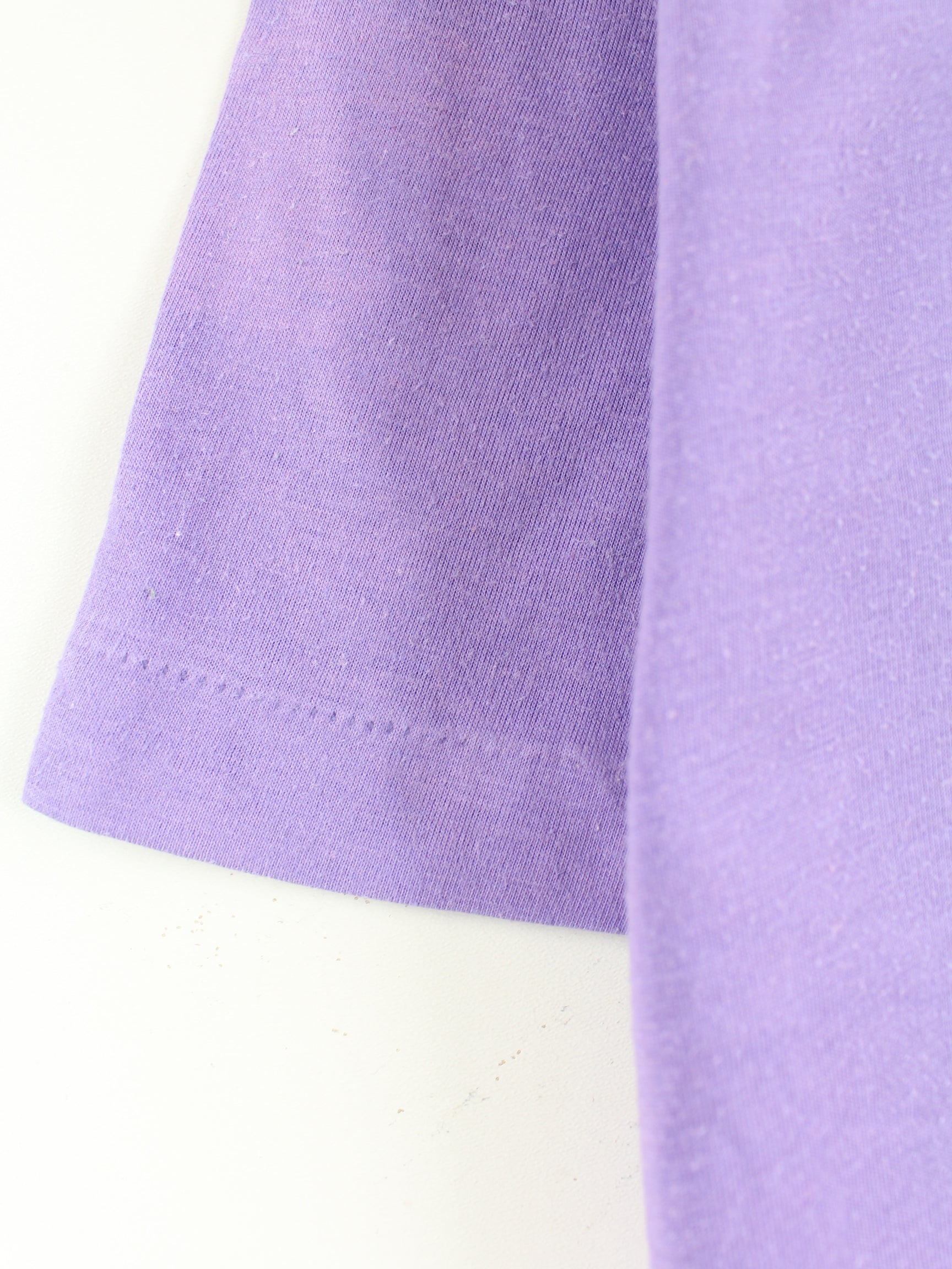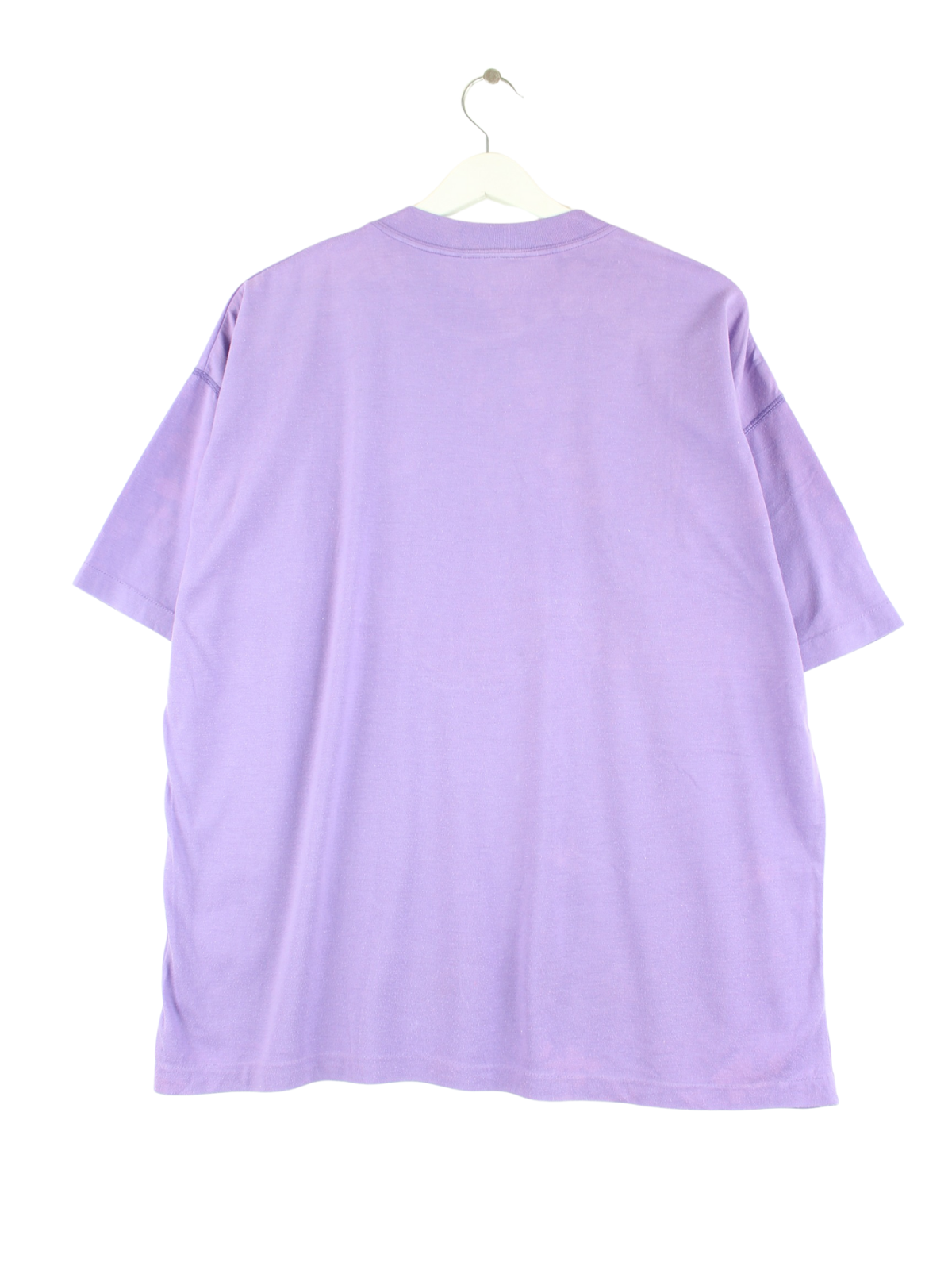 Lilafarbenes Vintage T-Shirt mit Stickereien aus den 80'ern in Größe L. Es ist aus Baumwolle hergestellt und in gutem Zustand bei uns zu bekommen.