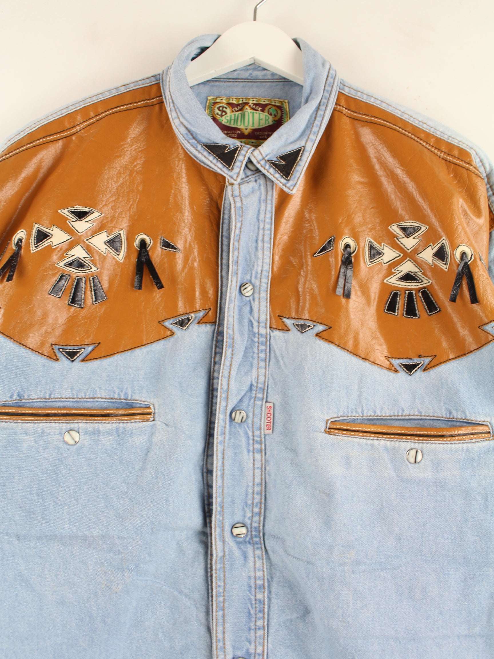 Blaues Vintage Freizeit Hemd aus den 80'ern in Größe L. Es ist aus Baumwolle hergestellt und in gutem Zustand zu bekommen.